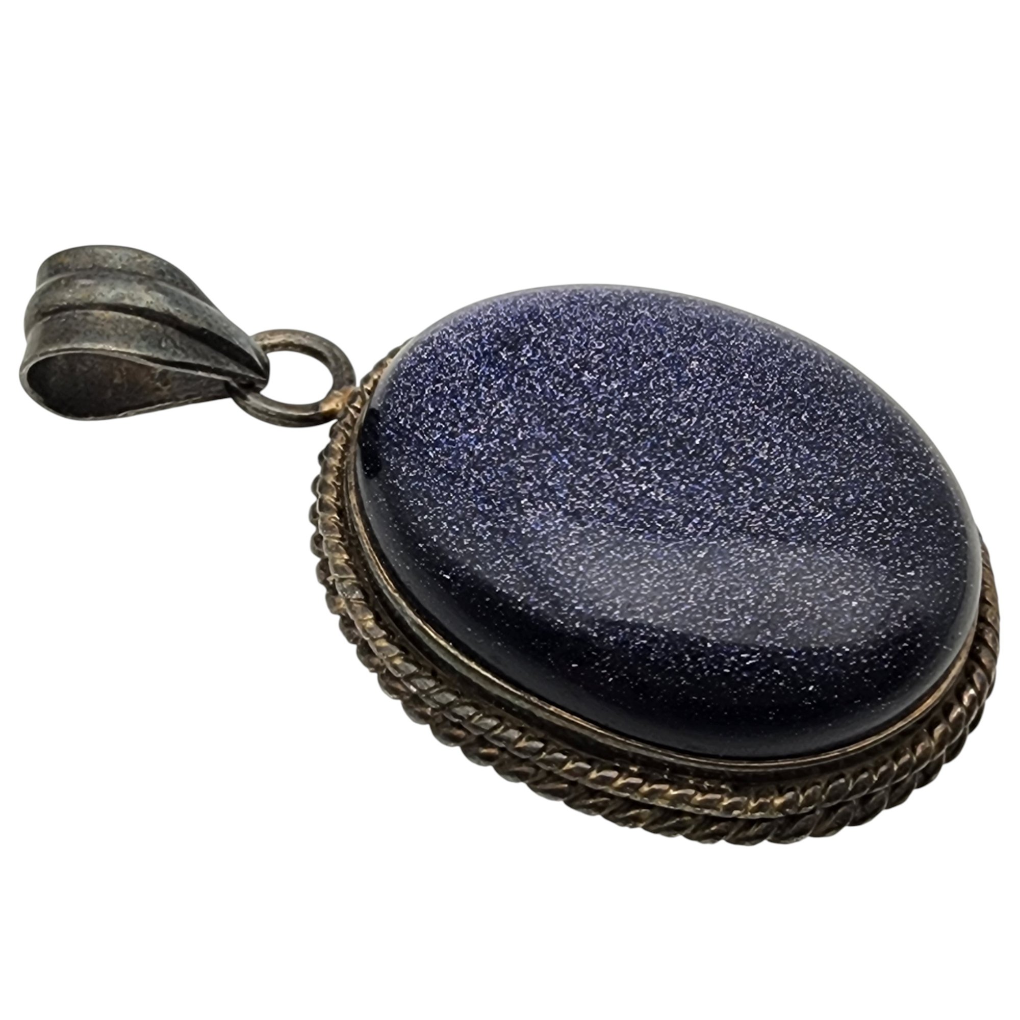 Sterling Large Blue Goldstone Pendant 21.3g