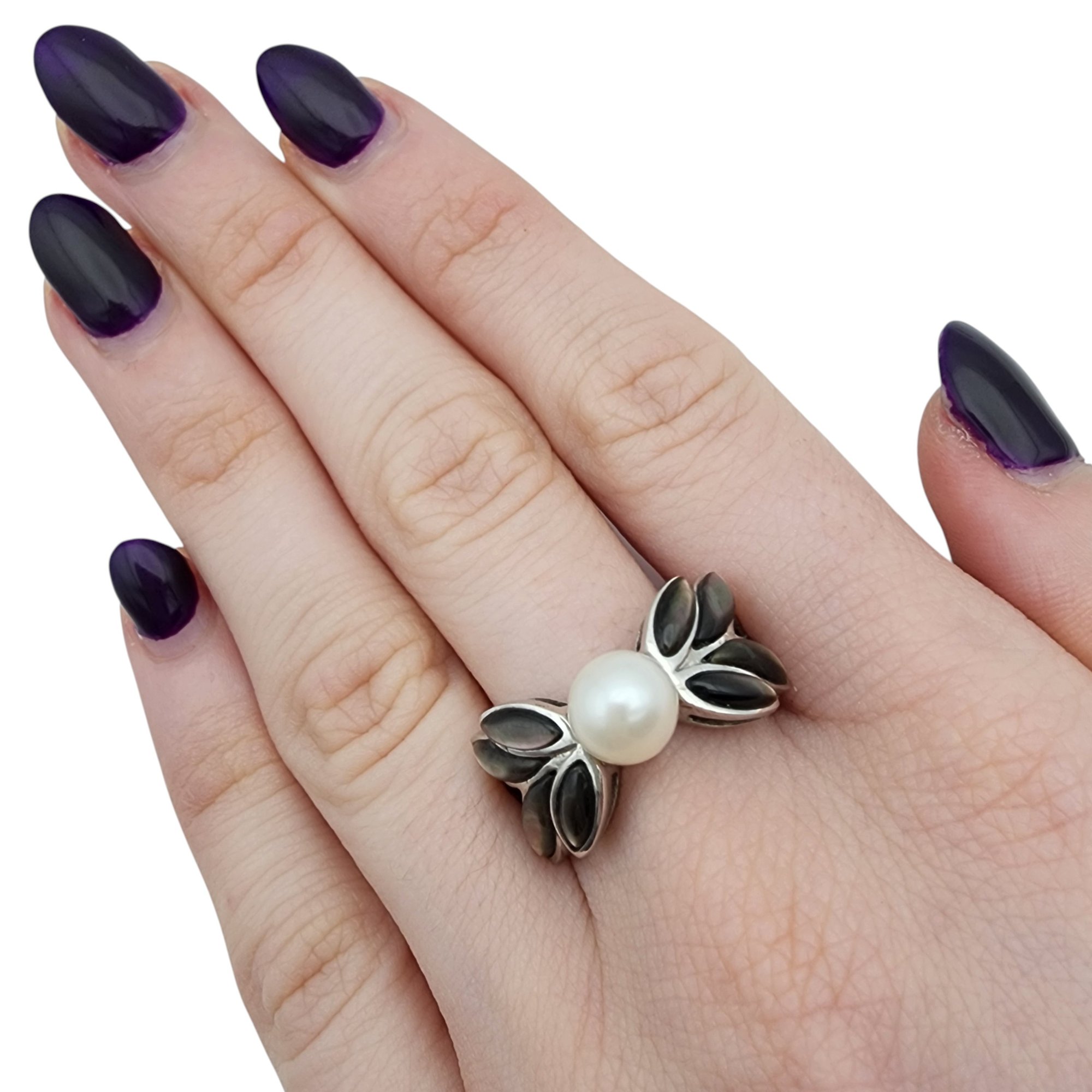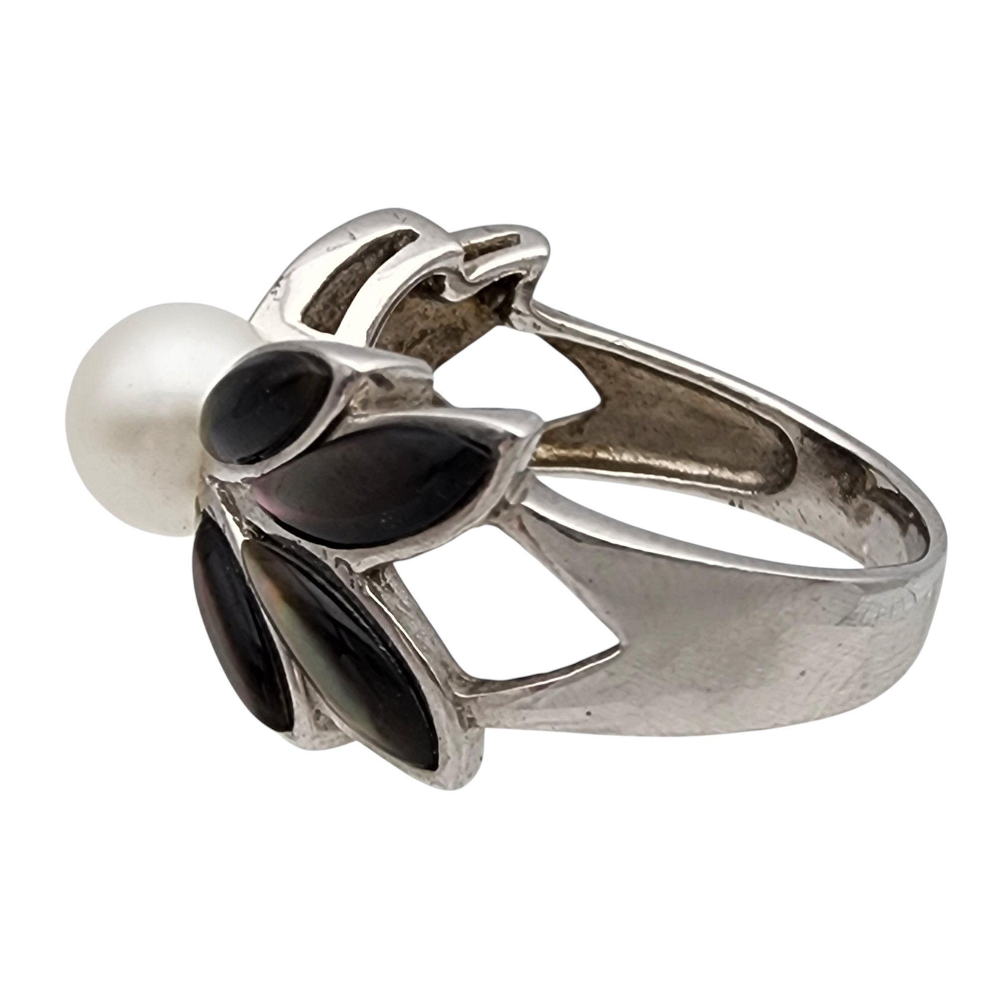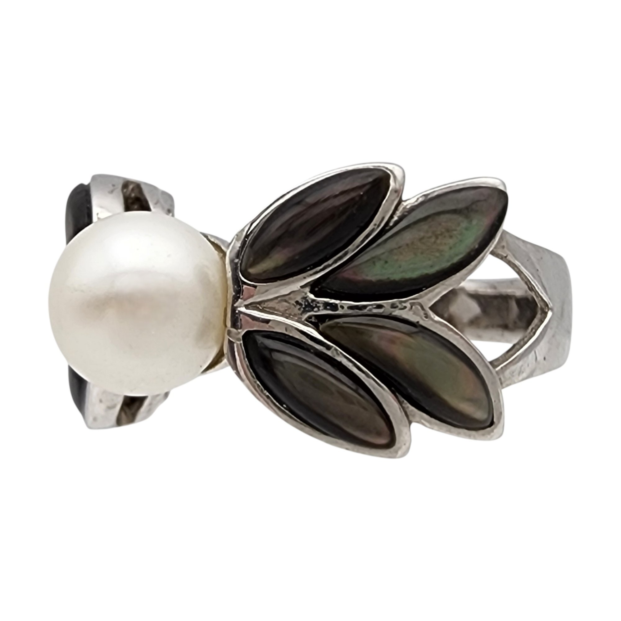 Sterling Abalone and Pearl Ring Sz 9 6.3g