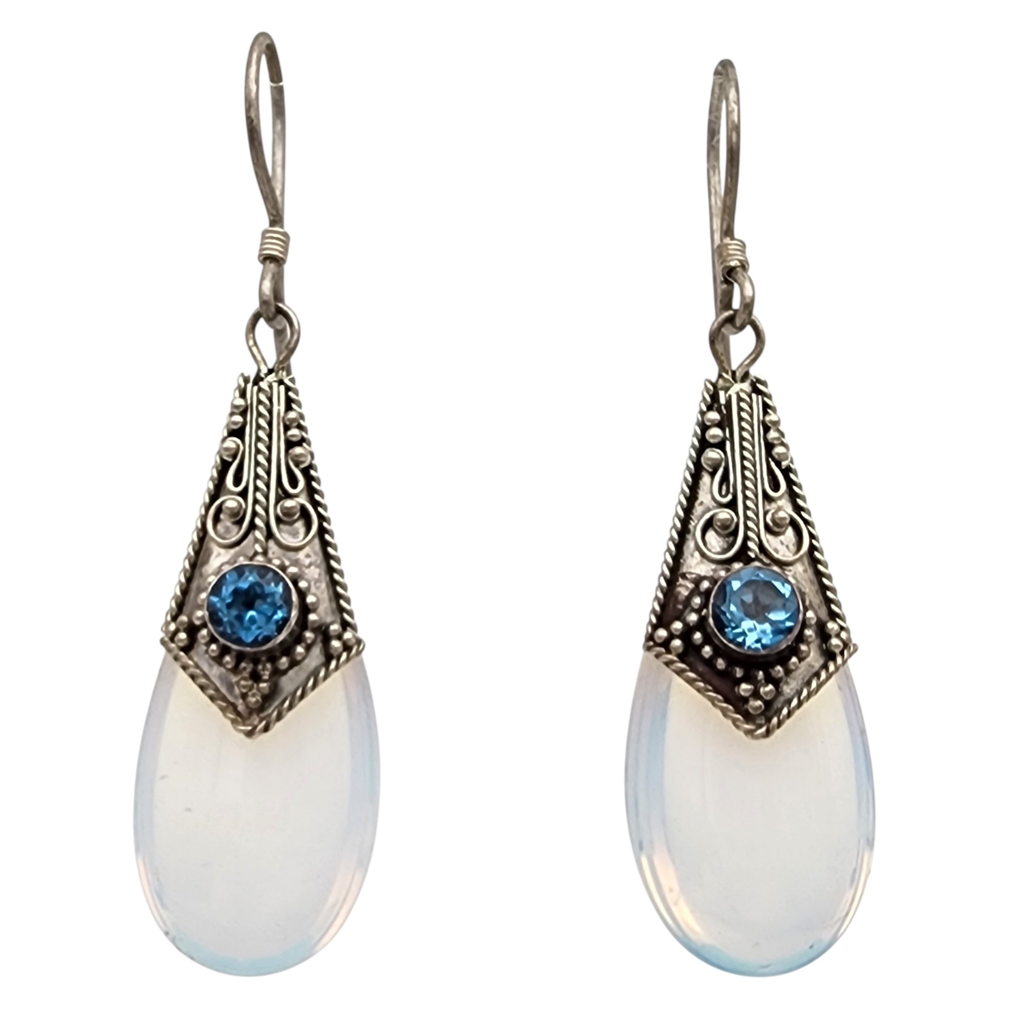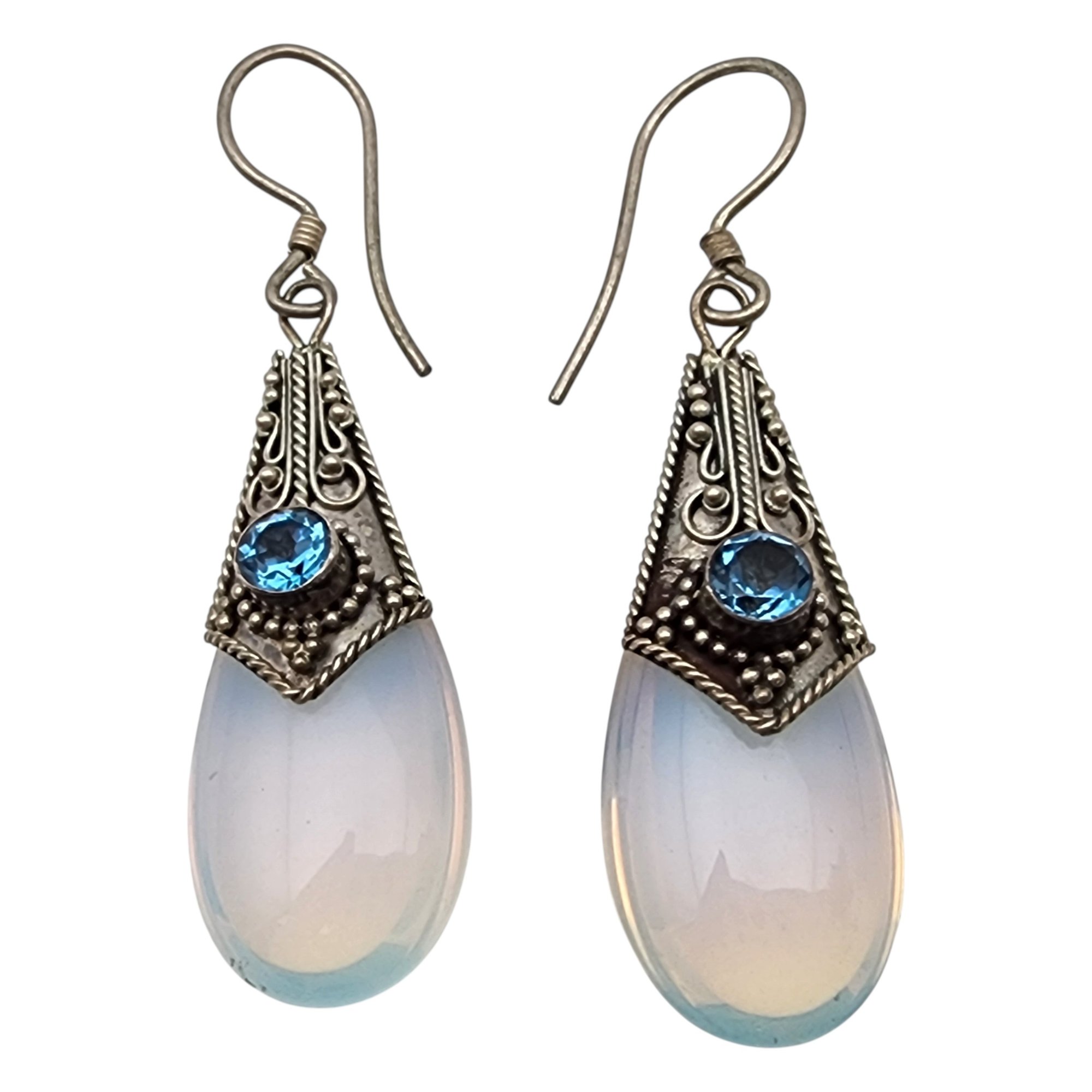 Sterling Topaz Opalite Dangle Earrings 6.8g