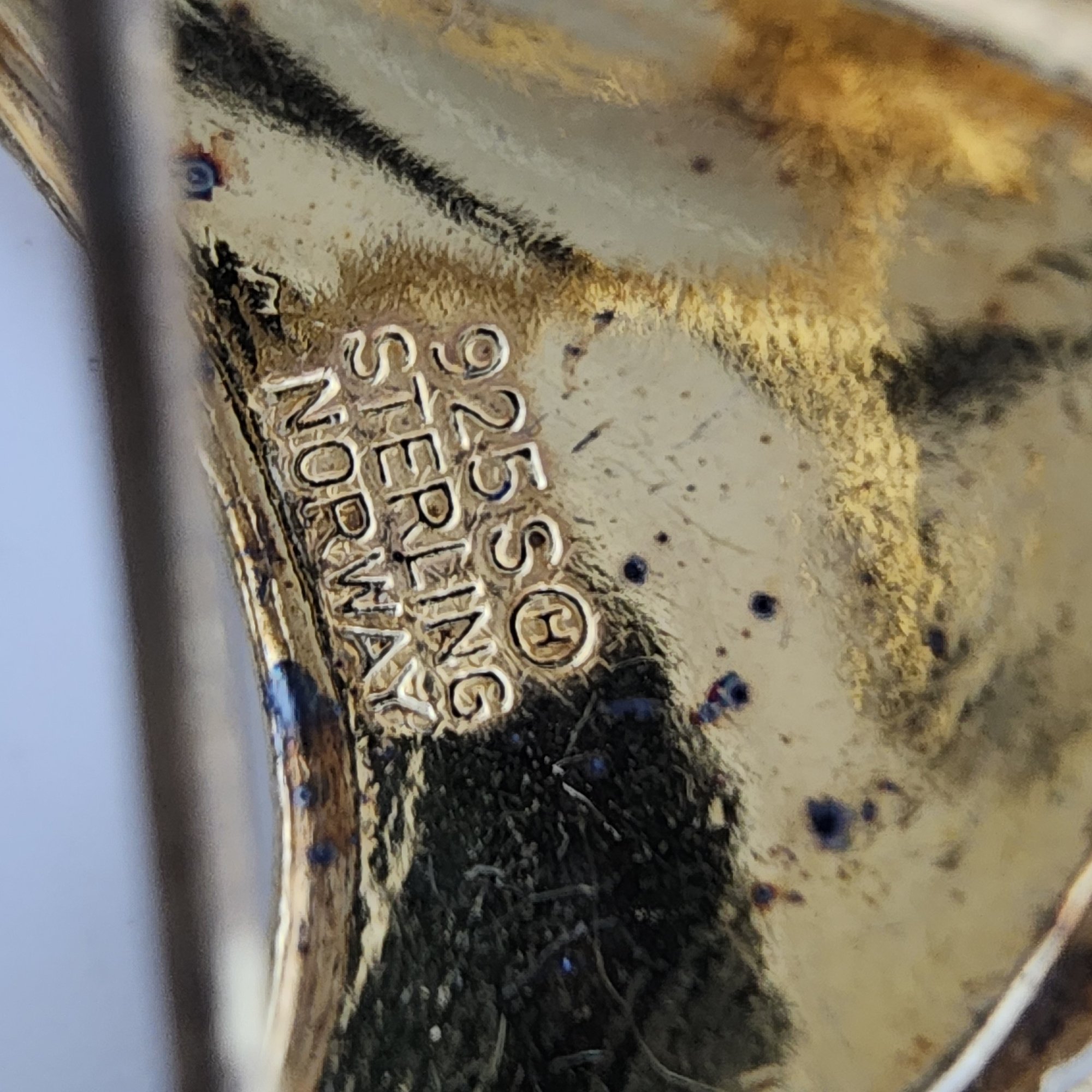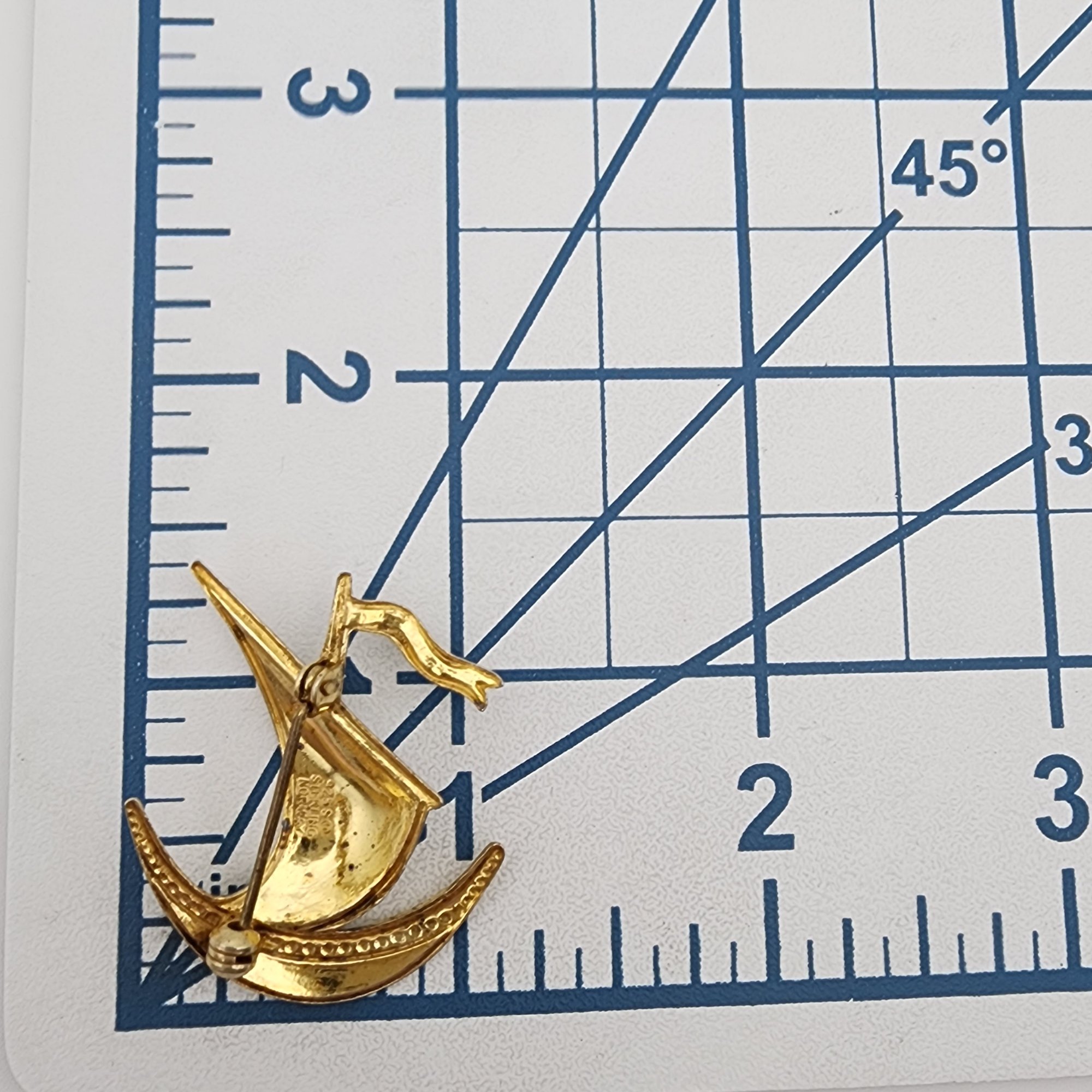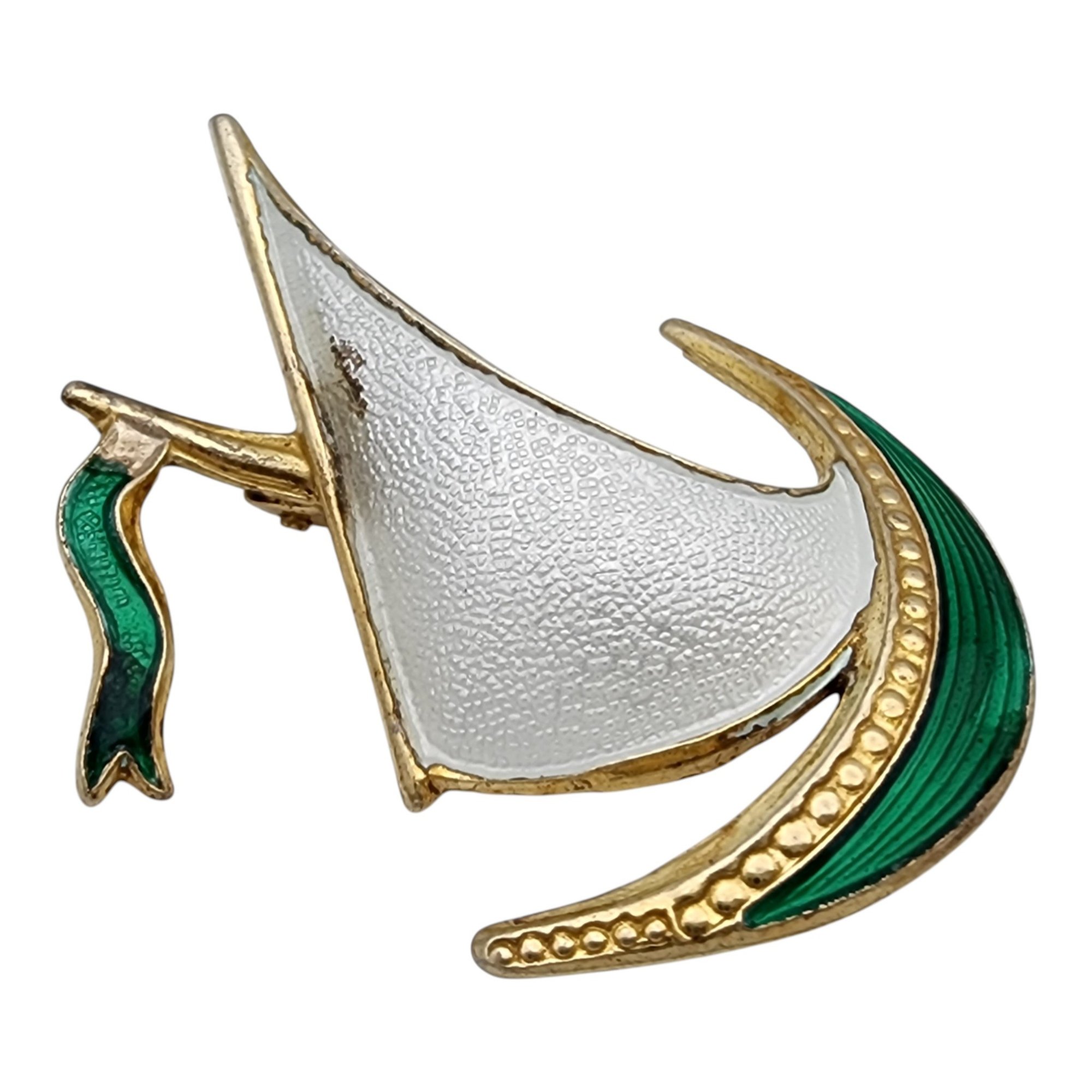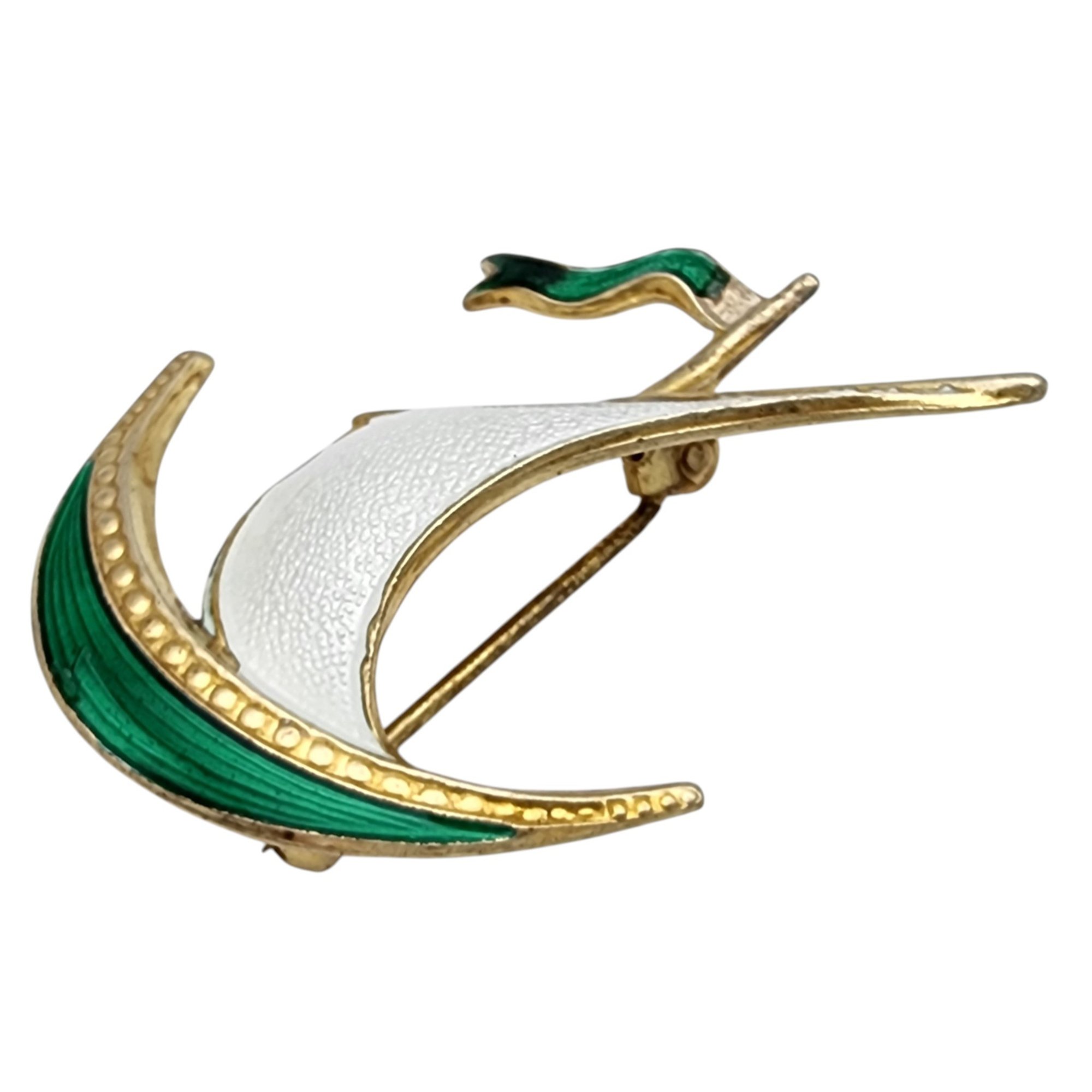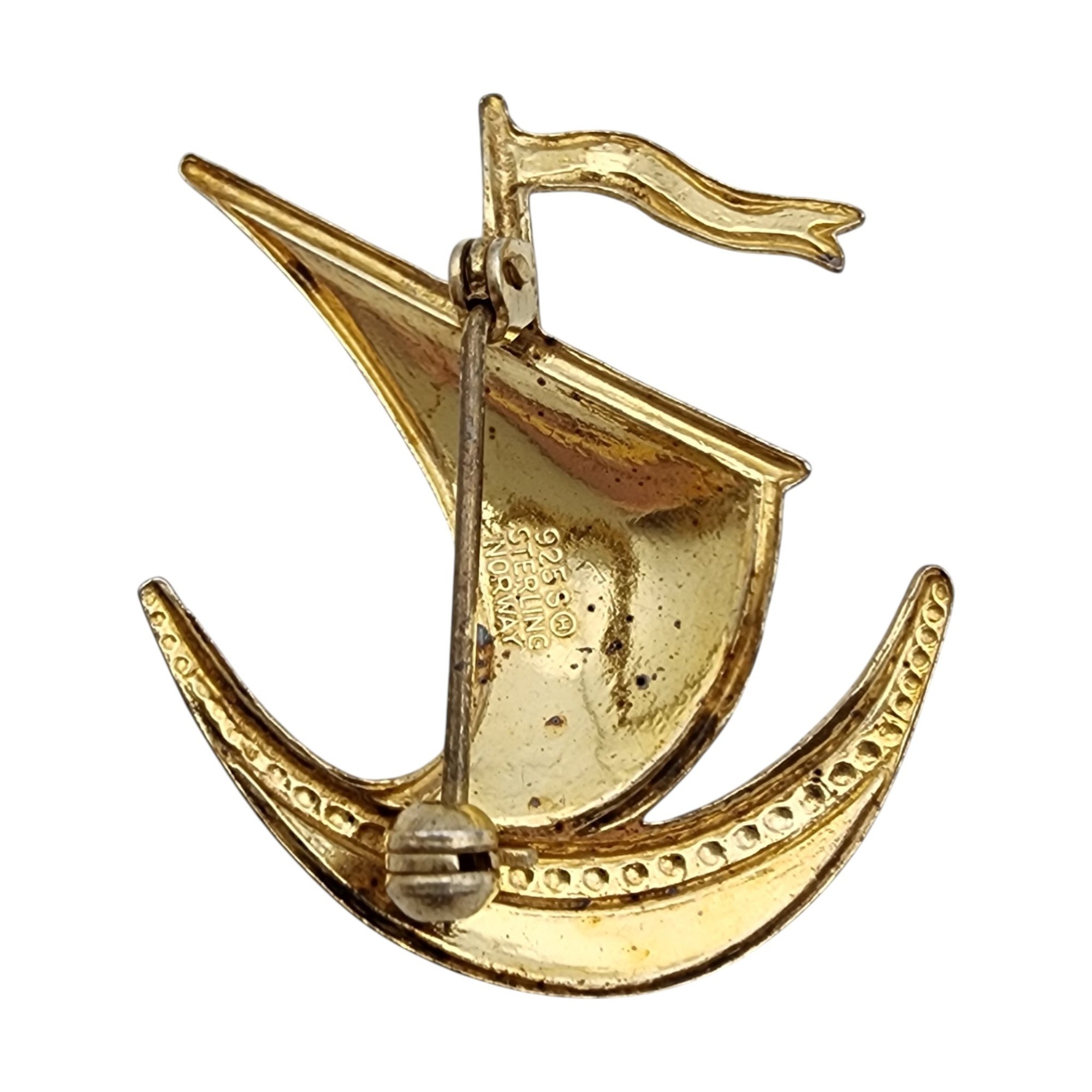 Ivar T Holth Norway Gold over Sterling Enamel Viking Ship Brooch 3.7g