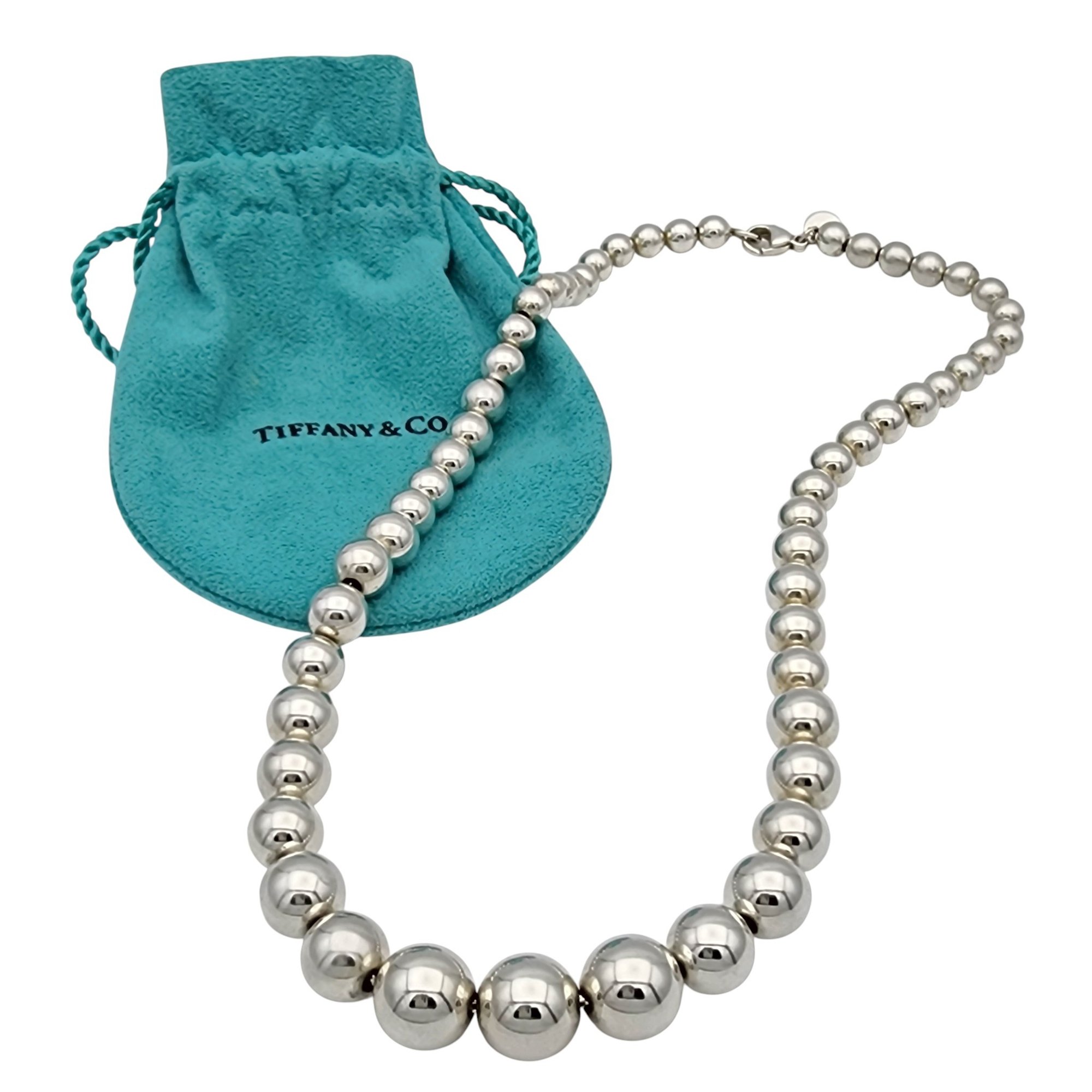 Tiffany & Co. Sterling Hardwear Graduated Bead Necklace, 16″, 6-11m beads – 29.1g, comes with Tiffany pouch as shown