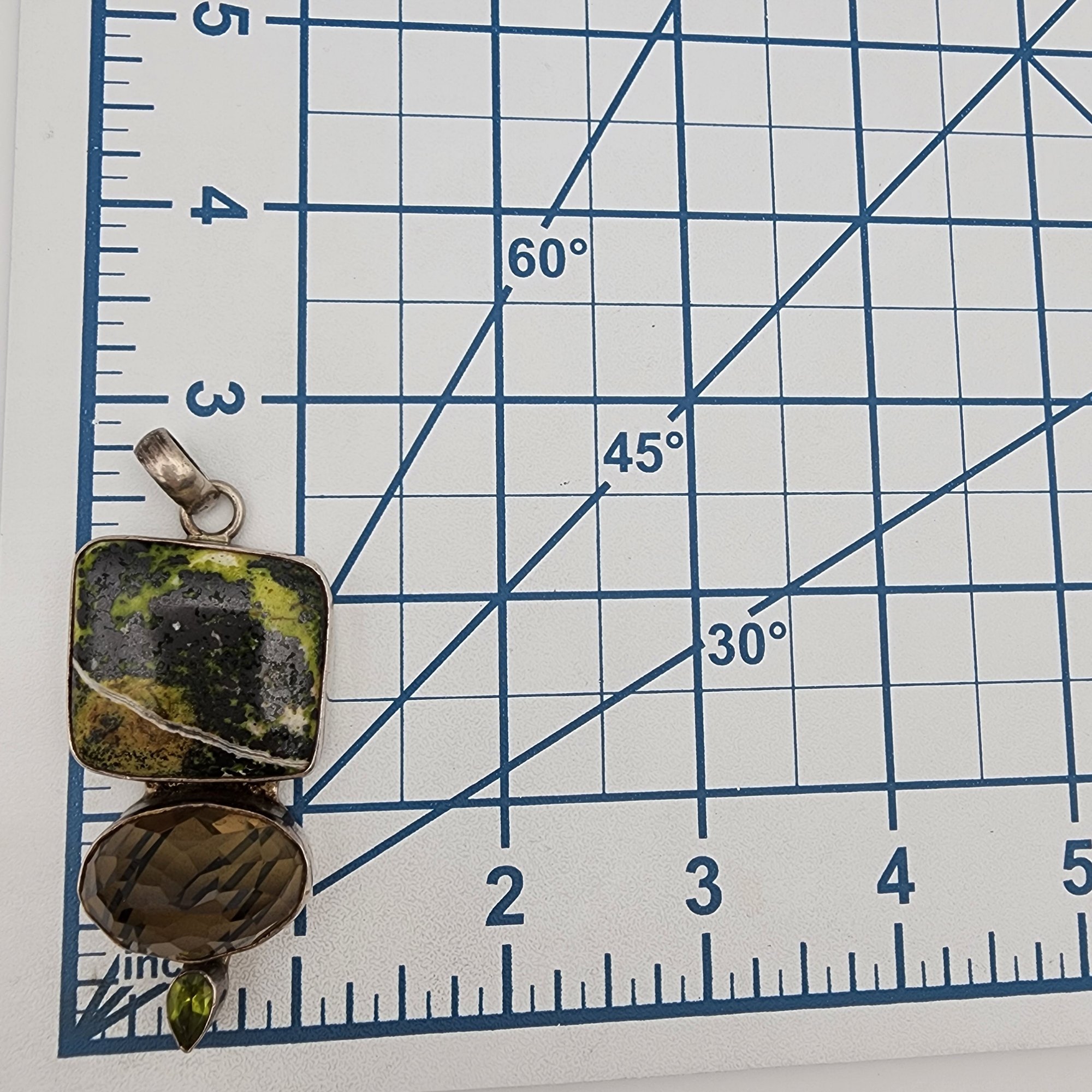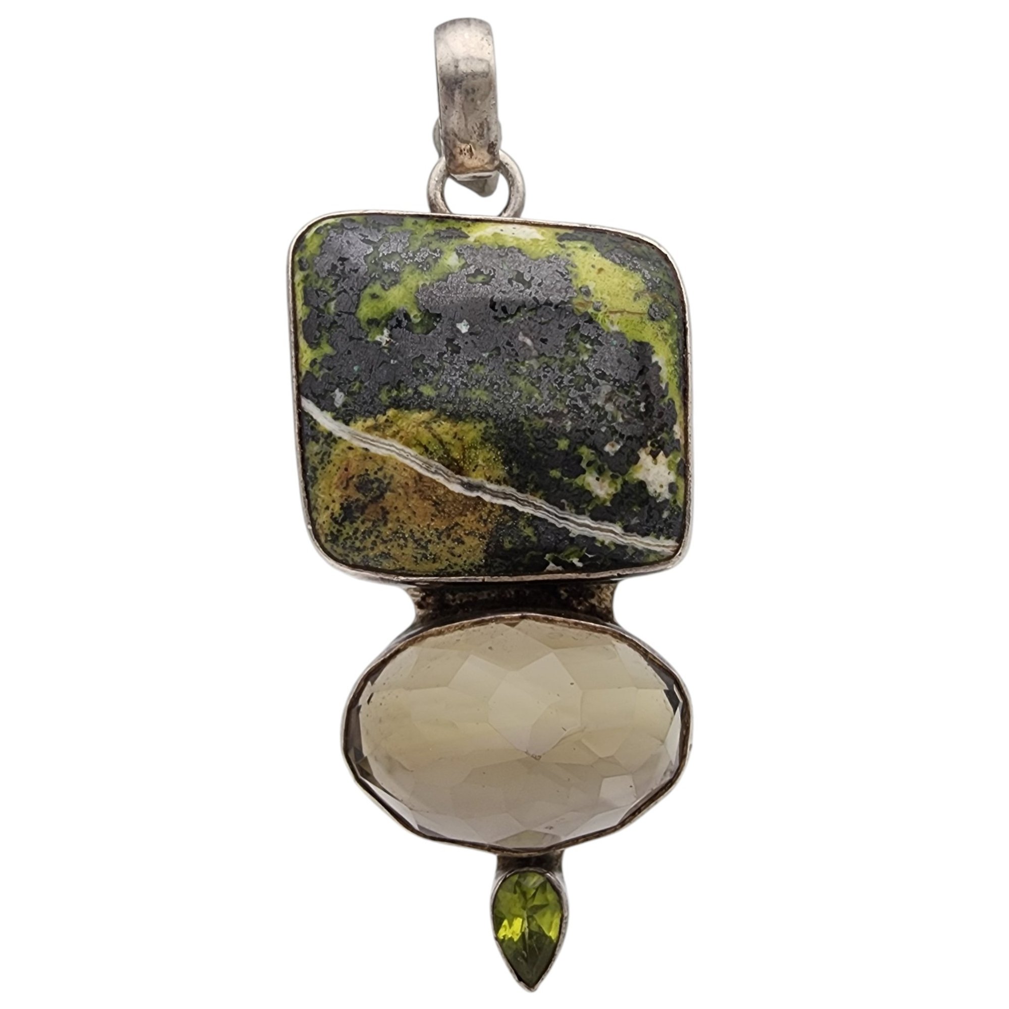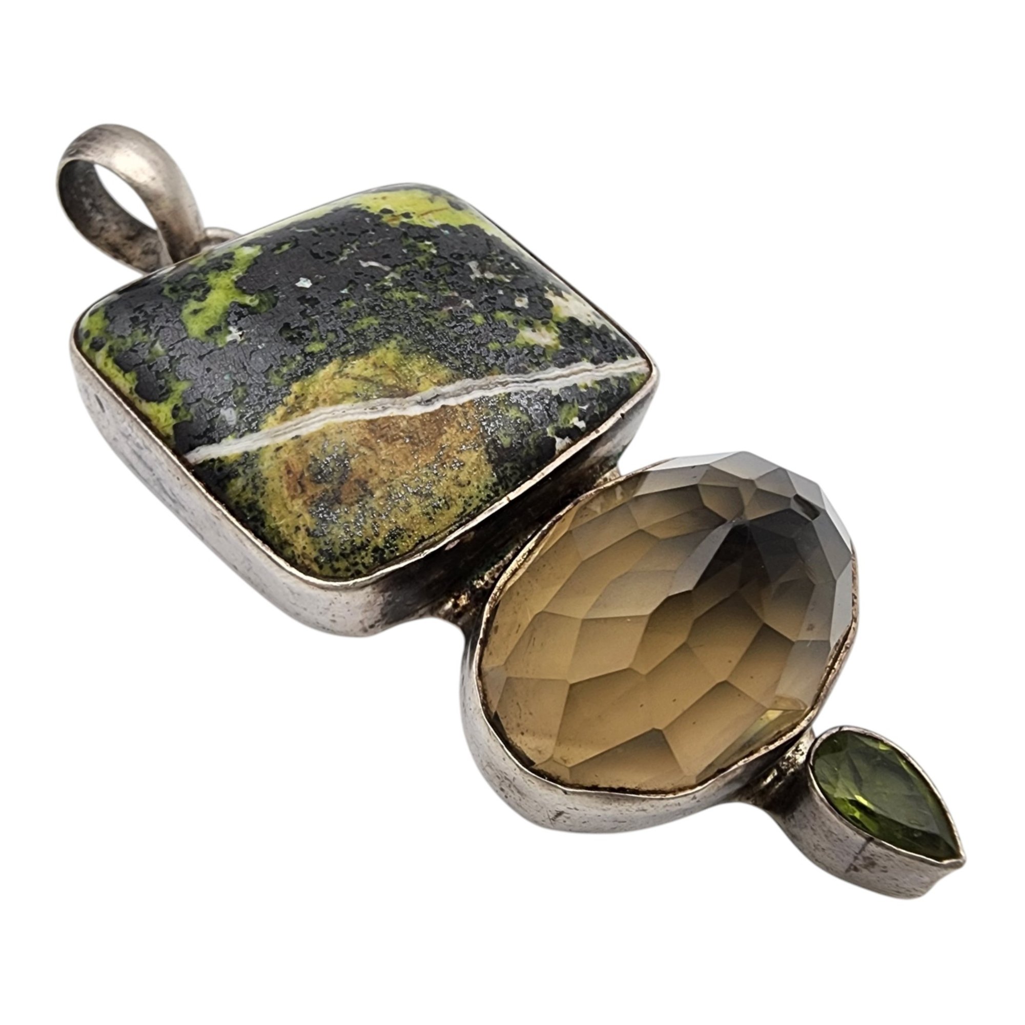Sterling Jasper Peridot Smoky Quartz Pendant 32.8g