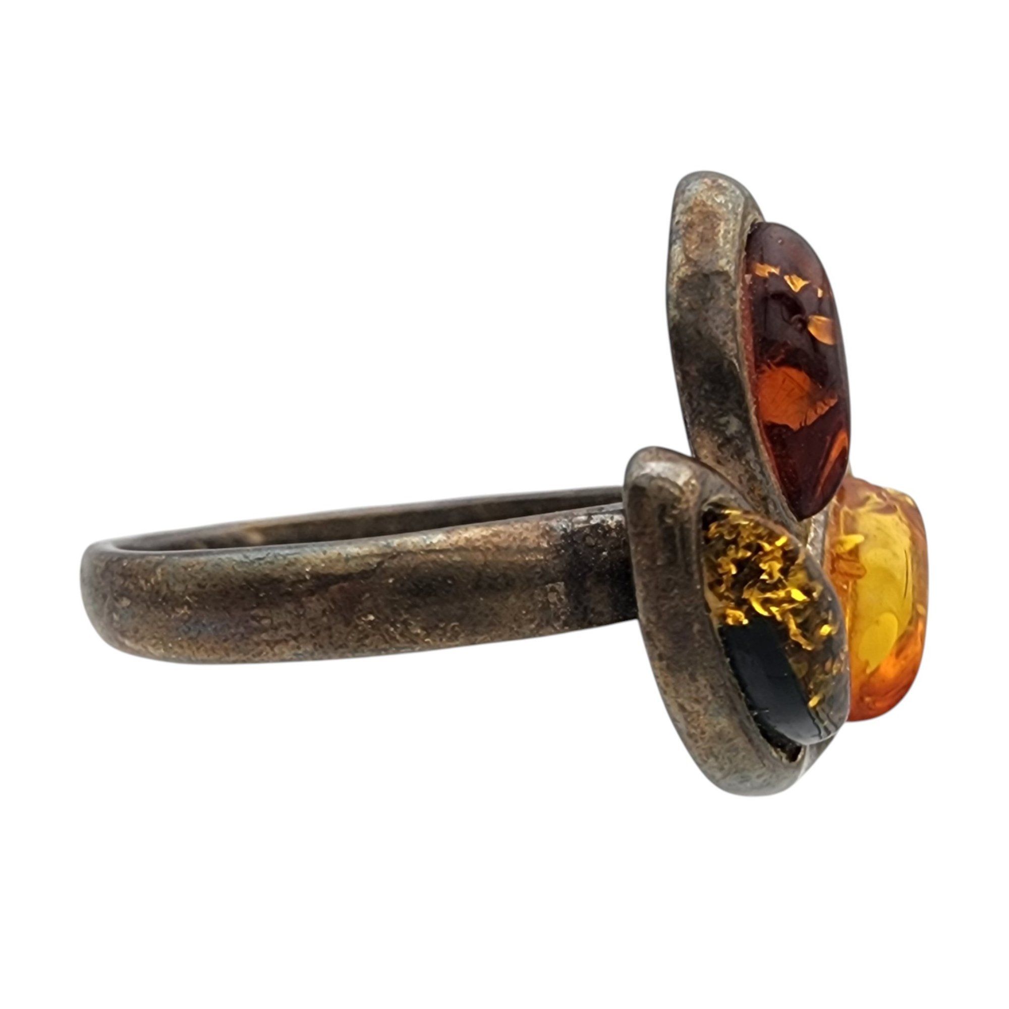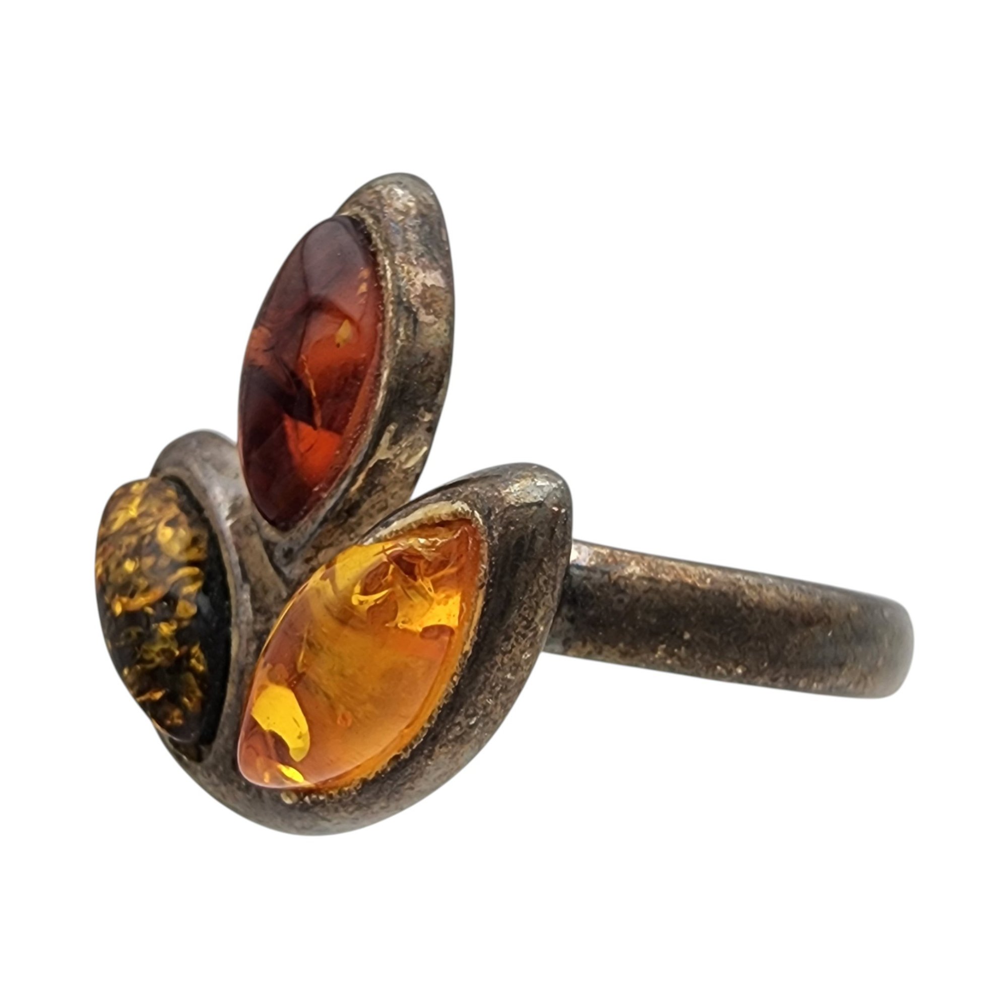 Vintage Sterling Multicolor Amber Ring Sz 7.5 – 3.2g