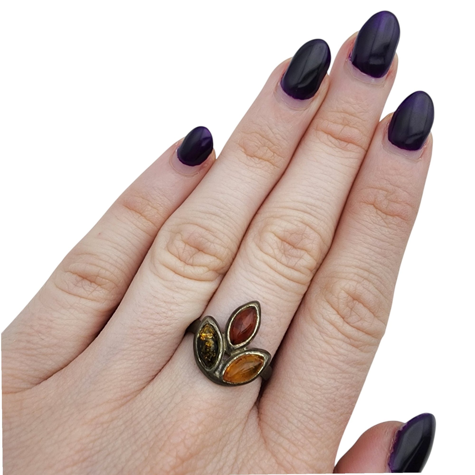 Vintage Sterling Multicolor Amber Ring Sz 7.5