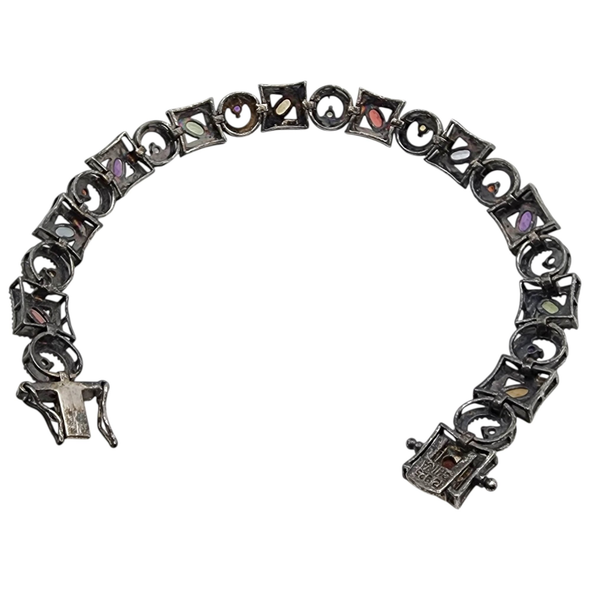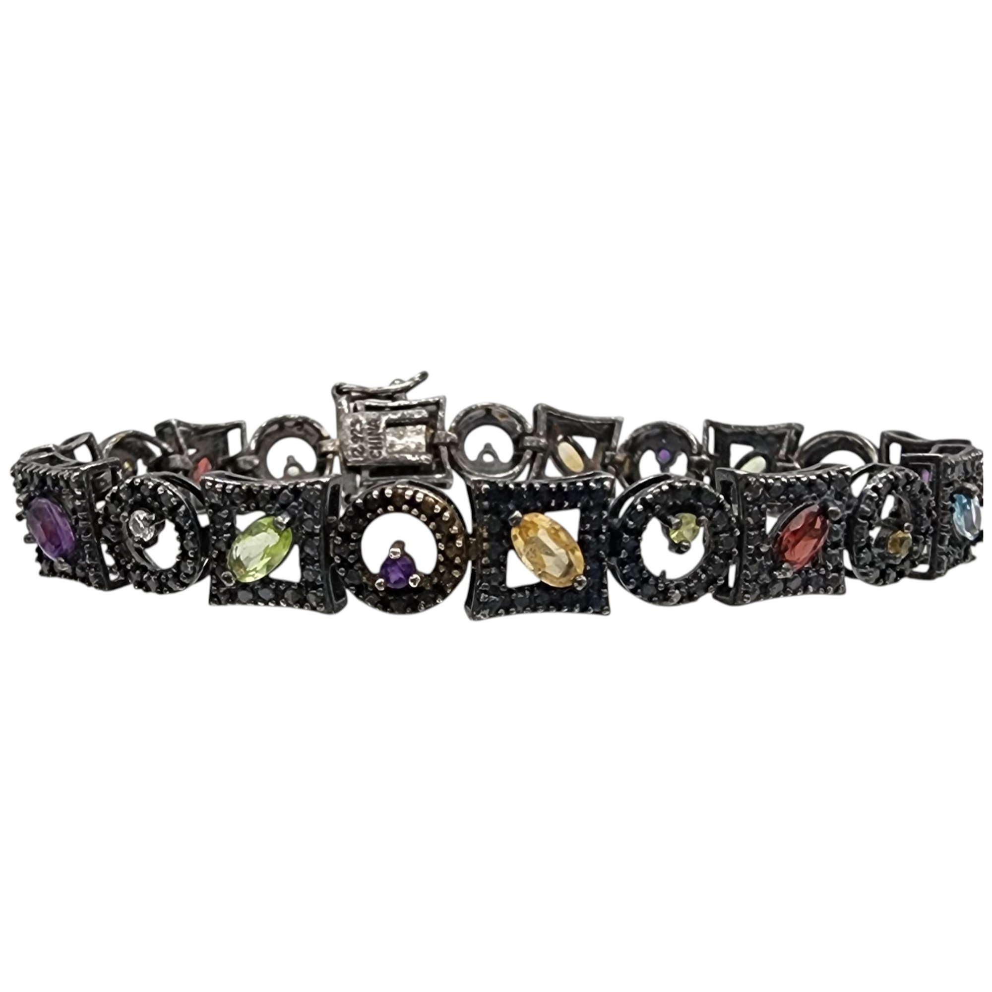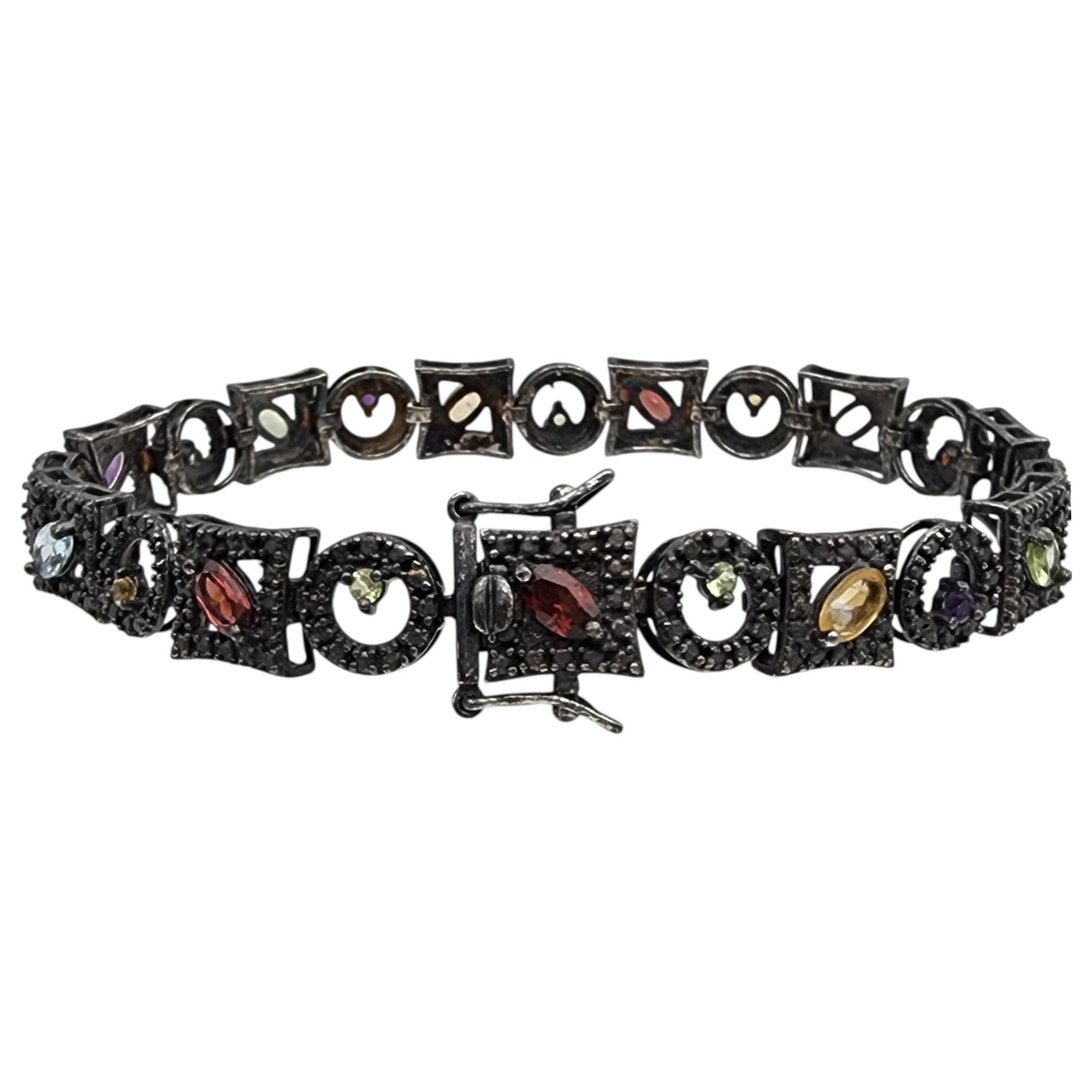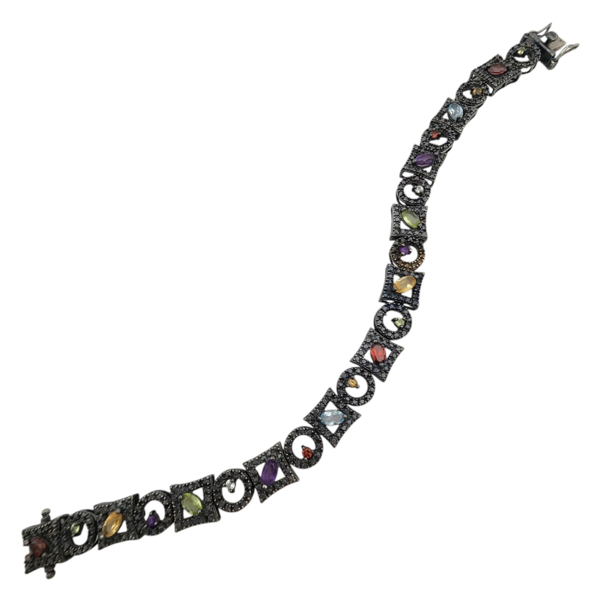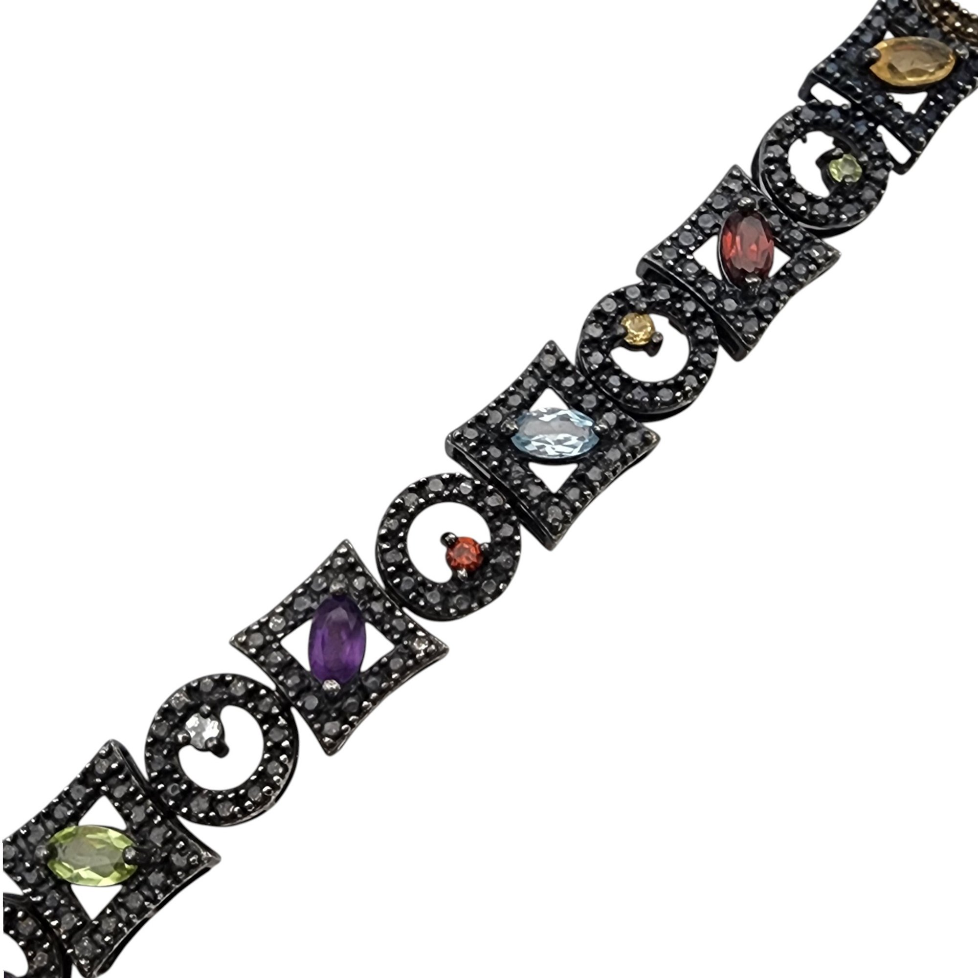 Ross Simons Sterling Oxidized Multistone (Amethyst, Citrine, Garnet, Peridot, Topaz, etc.) Tennis Bracelet 16.5g