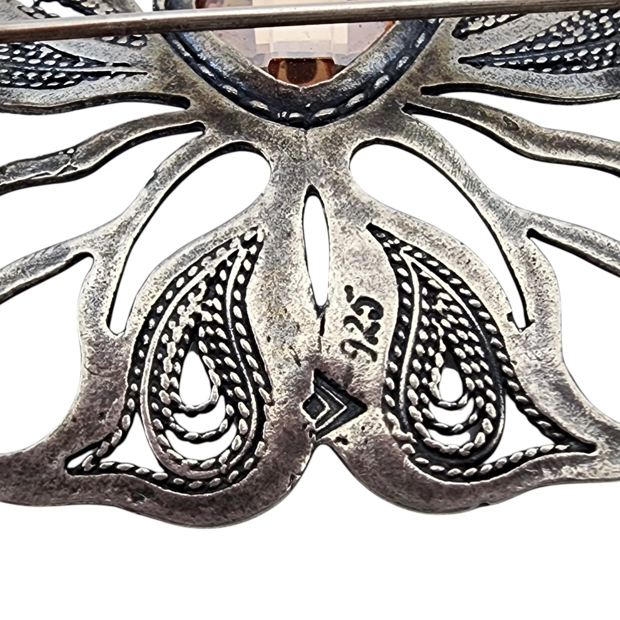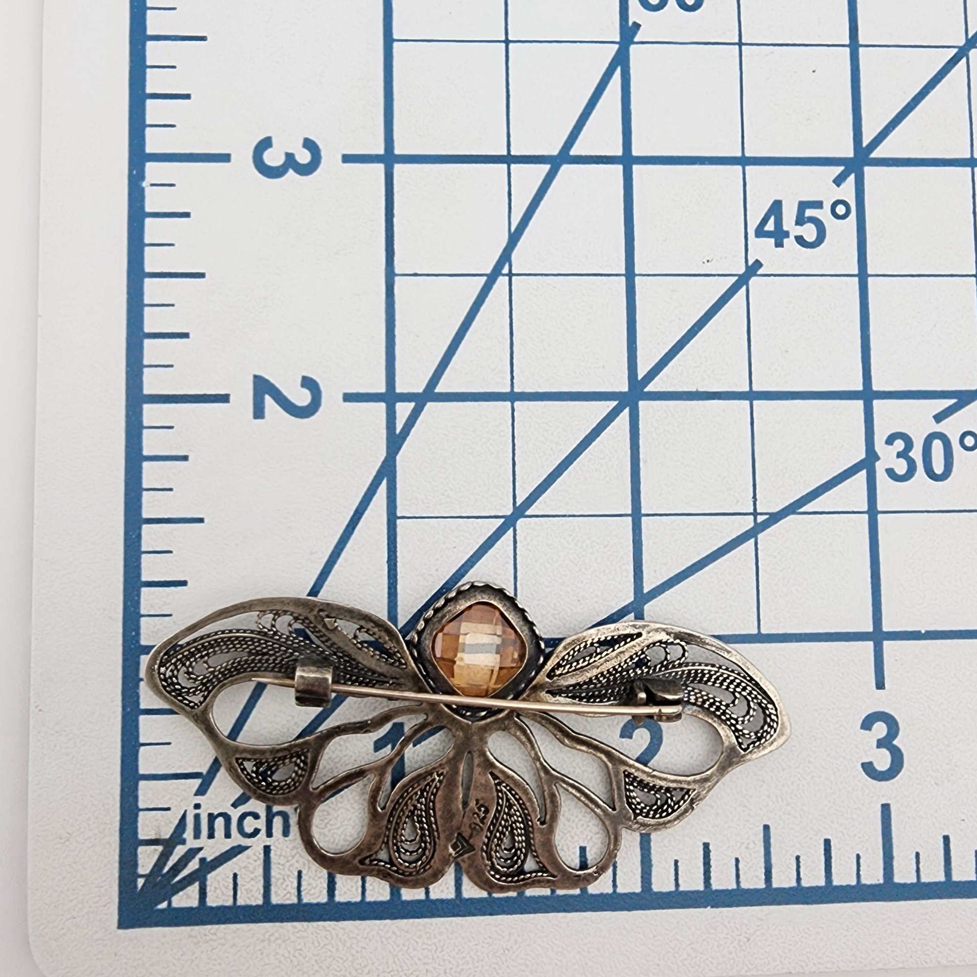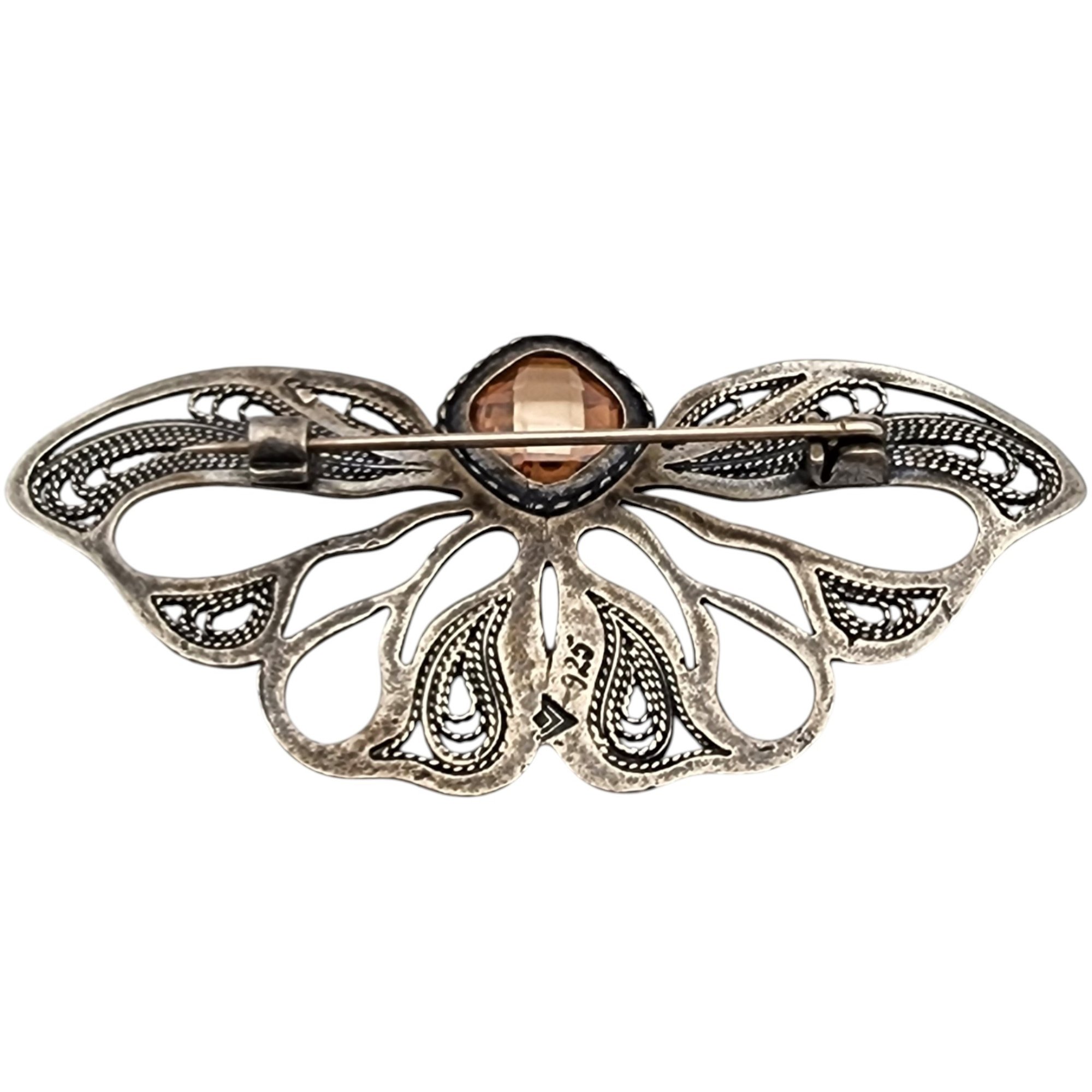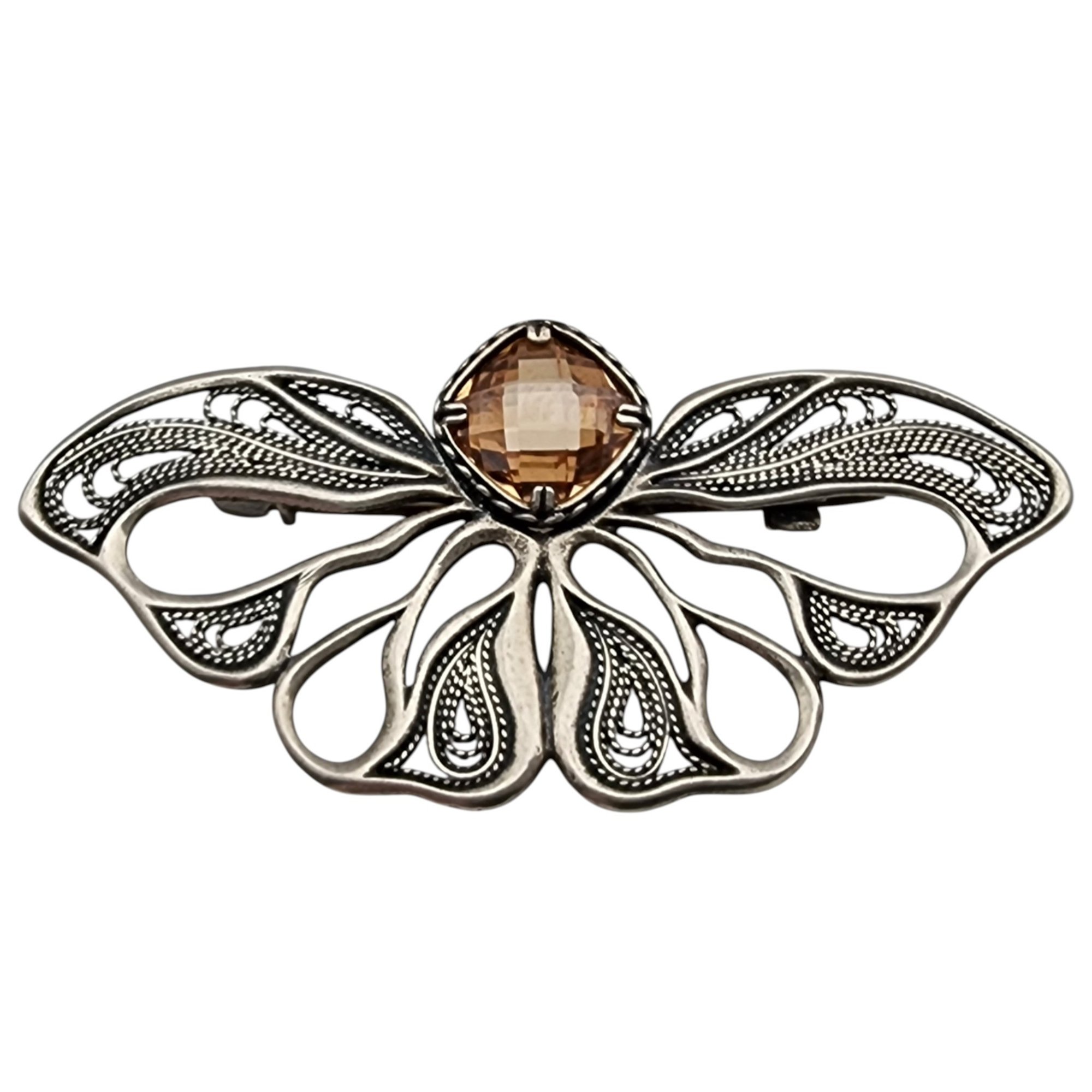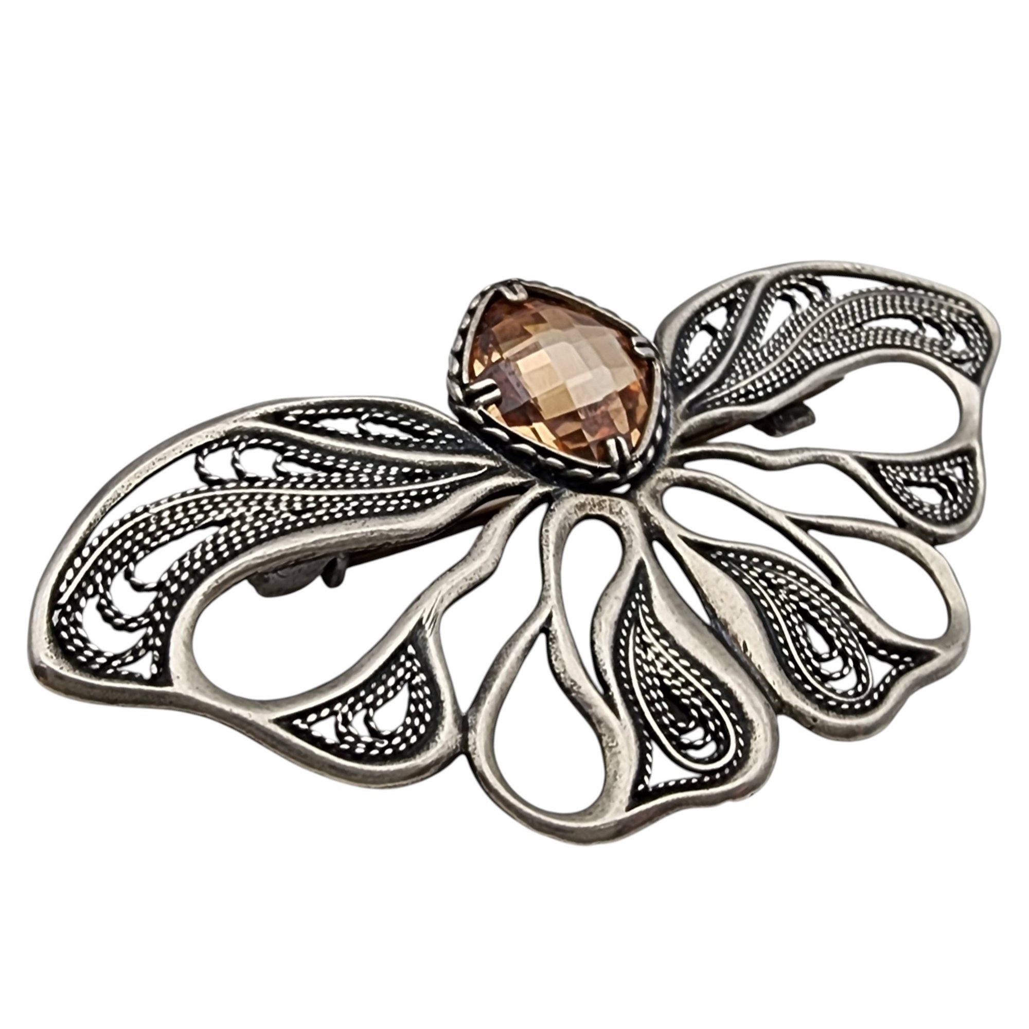 Silpada Sterling Champagne CZ Lacy Butterfly Brooch 8.9g