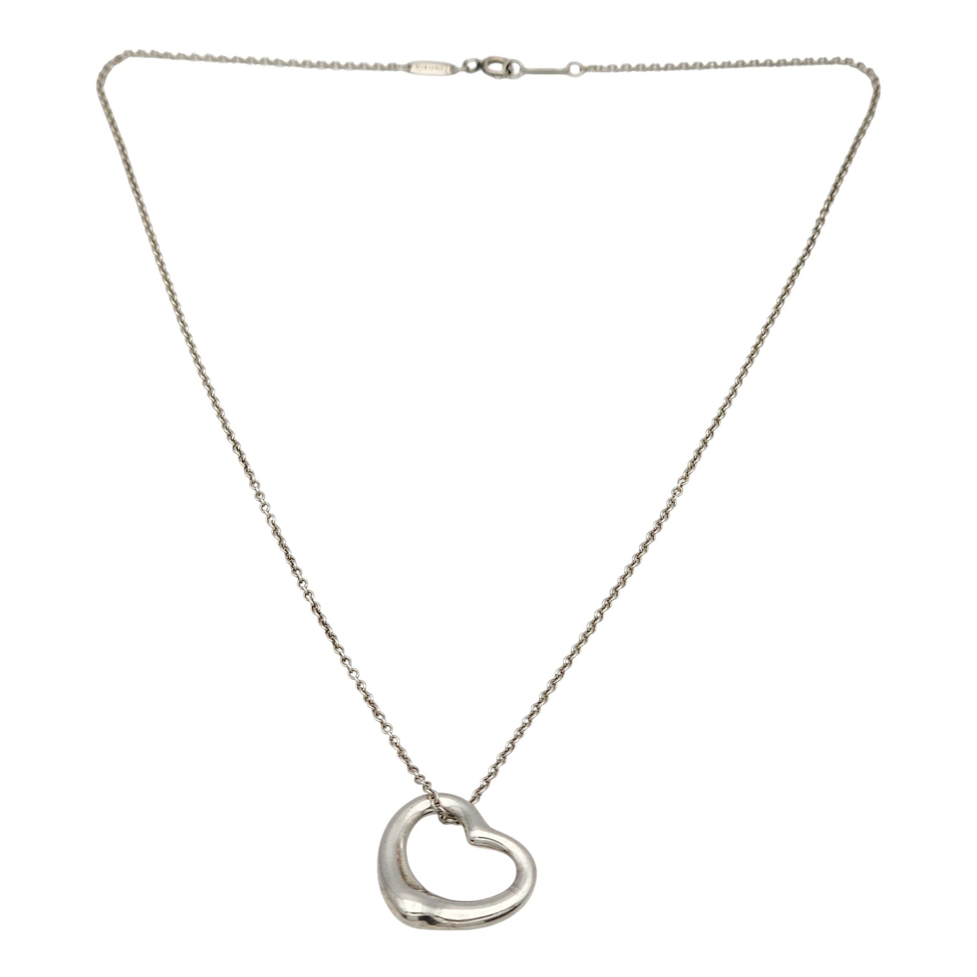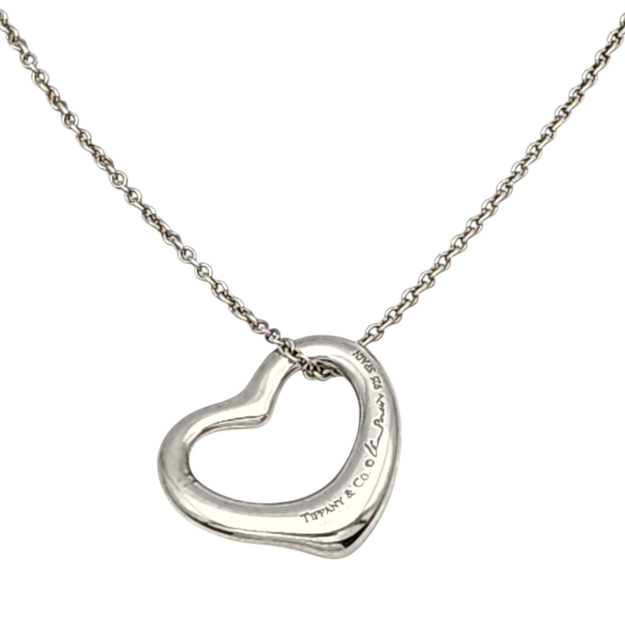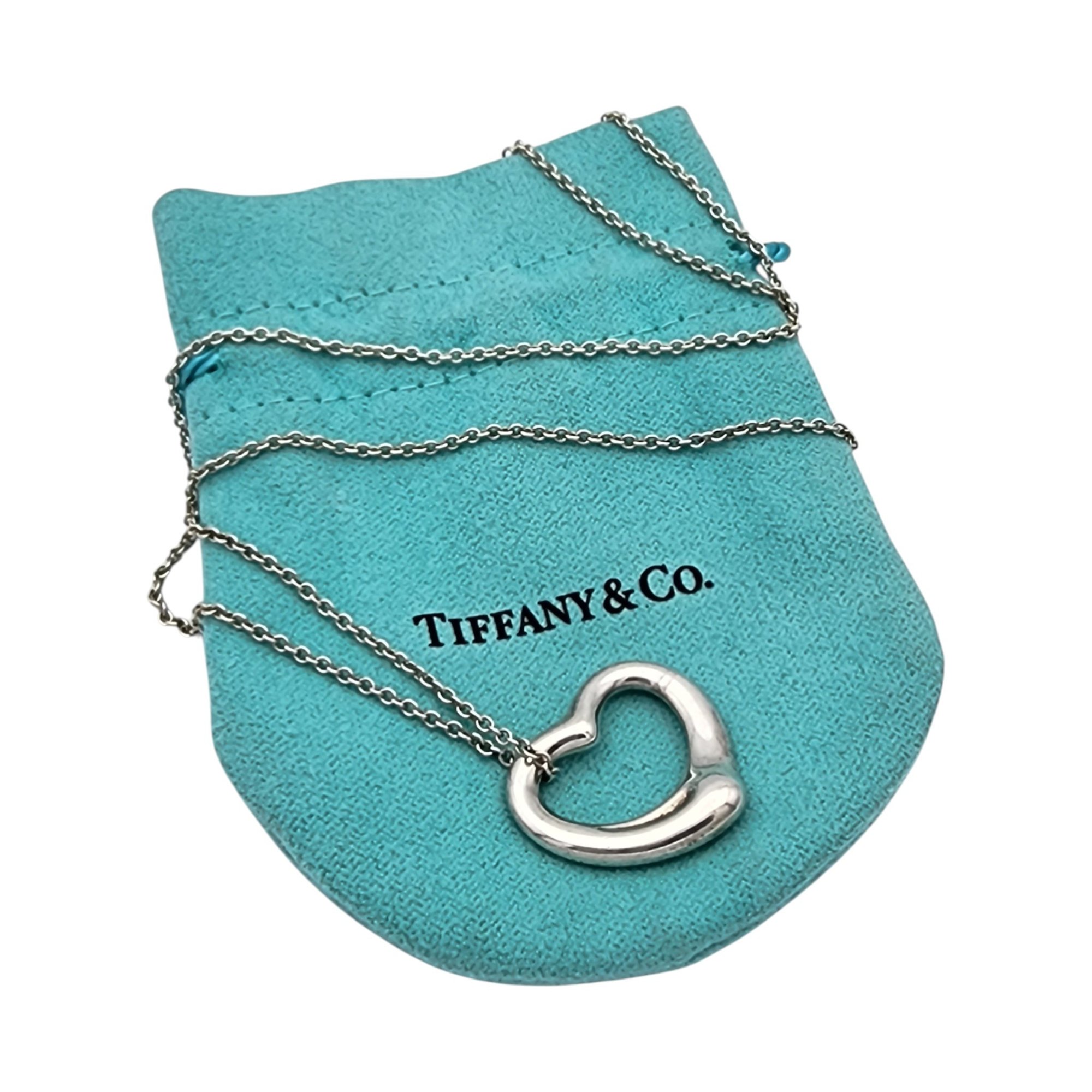 Tiffany & Co. Elsa Peretti Sterling Open Heart Chain Necklace, 18″, .the heart pendant is approximately 8″x.9″ – 7.5g, comes with Tiffany pouch as shown