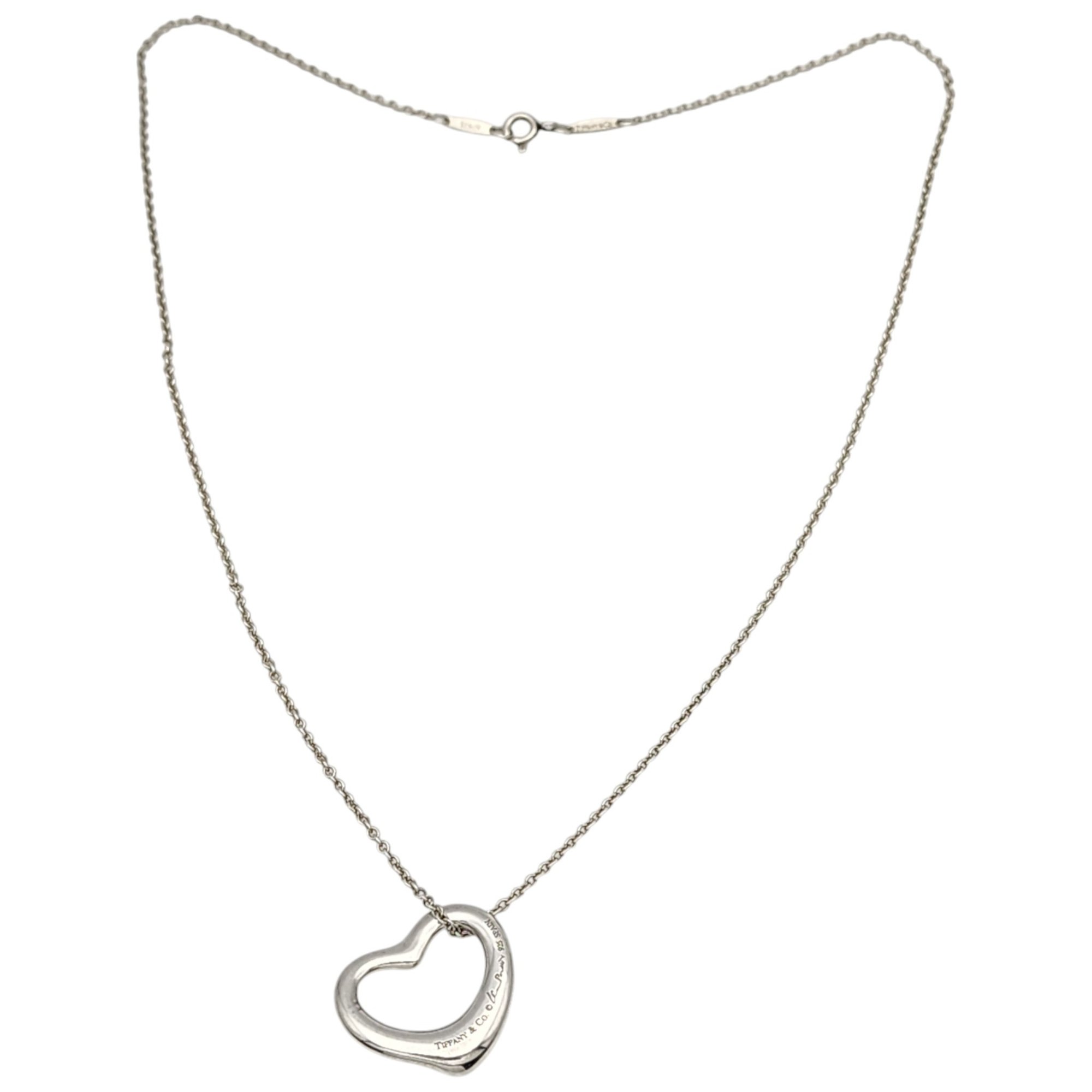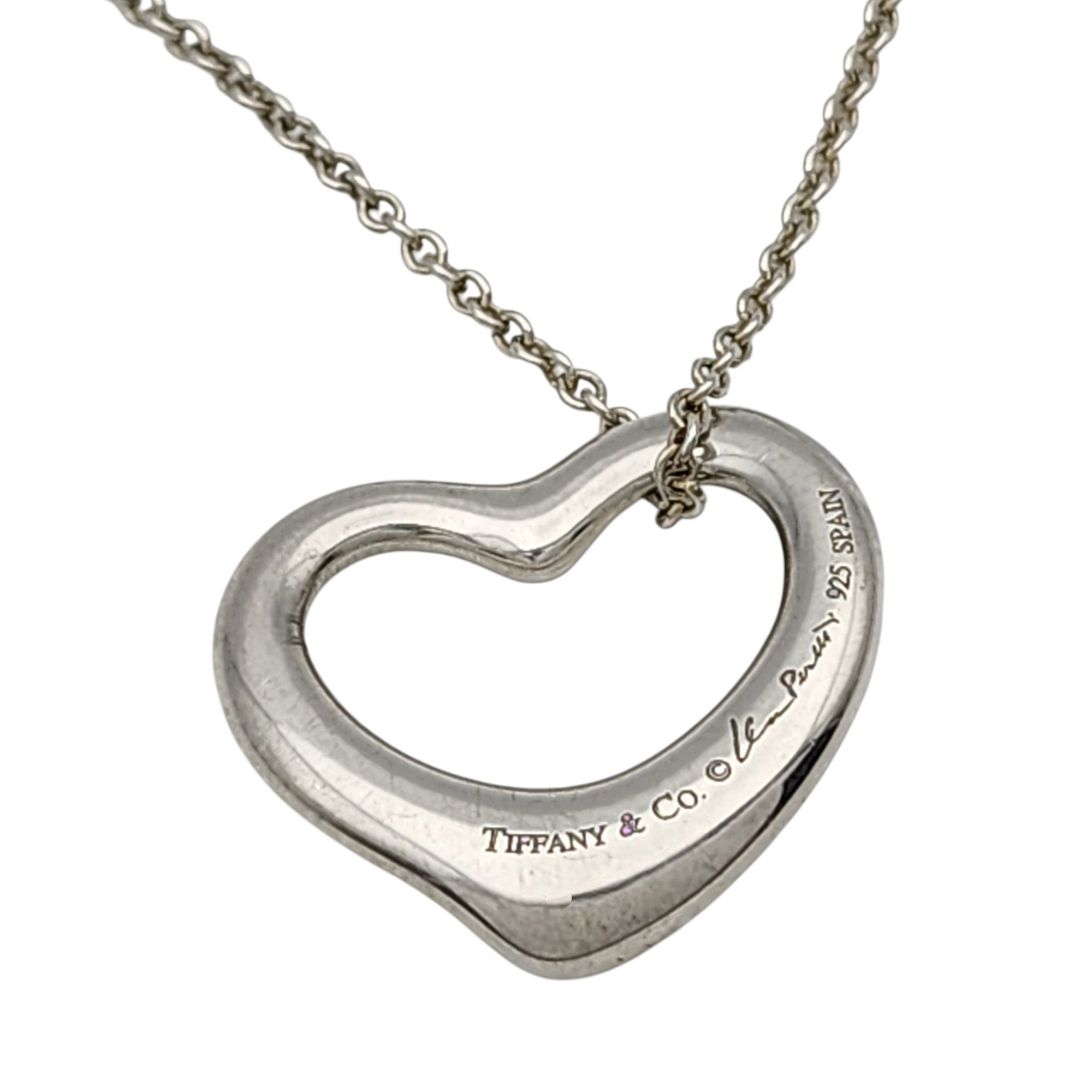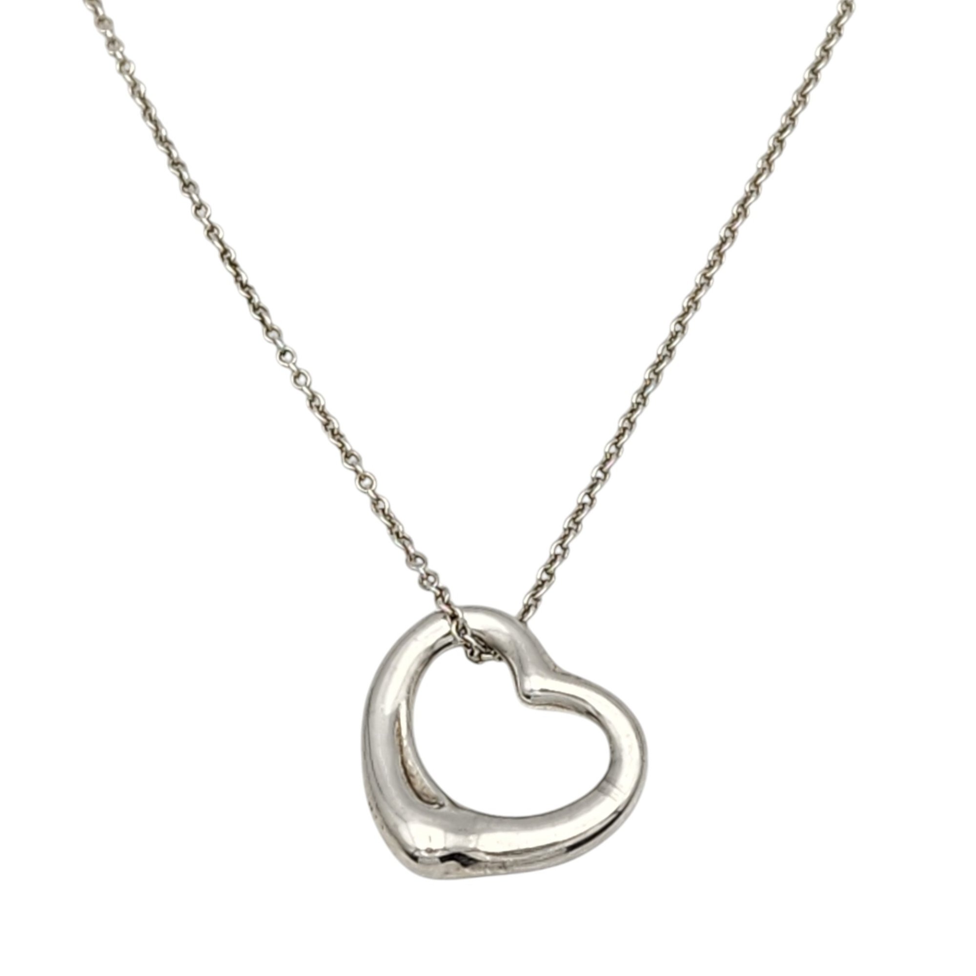 Tiffany & Co. Elsa Peretti Sterling Open Heart Chain Necklace, 18″, .the heart pendant is approximately 8″x.9″ – 7.5g, comes with Tiffany pouch as shown