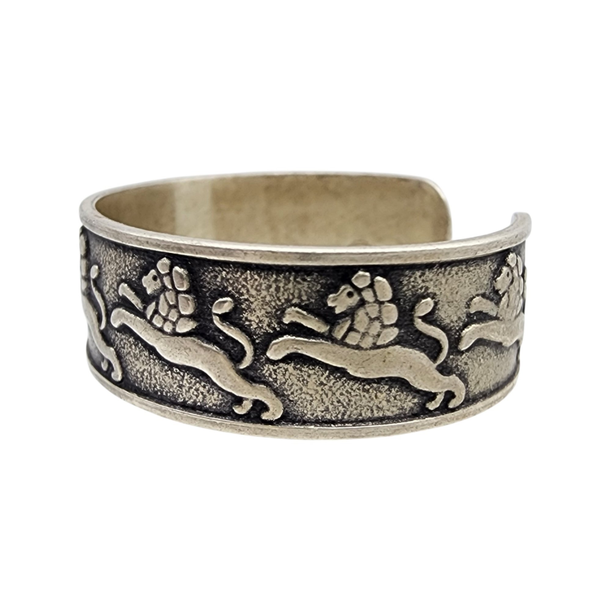 Signed (appears to be STE A with possibly an assay mark?) Sterling Lion Band Ring Sz 10.5 3.6g