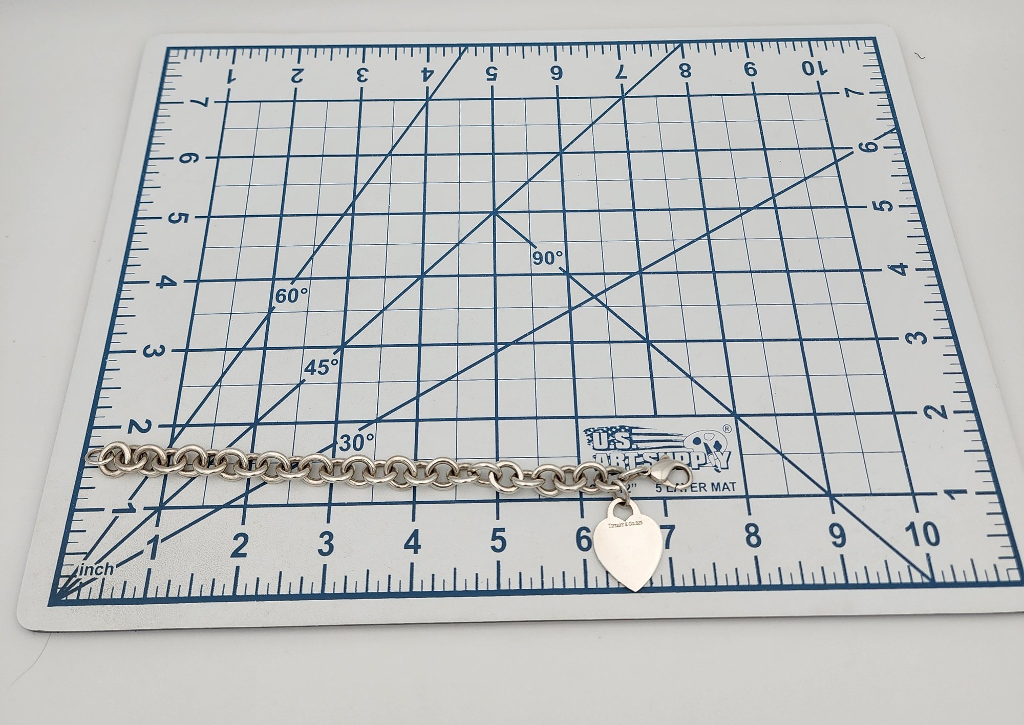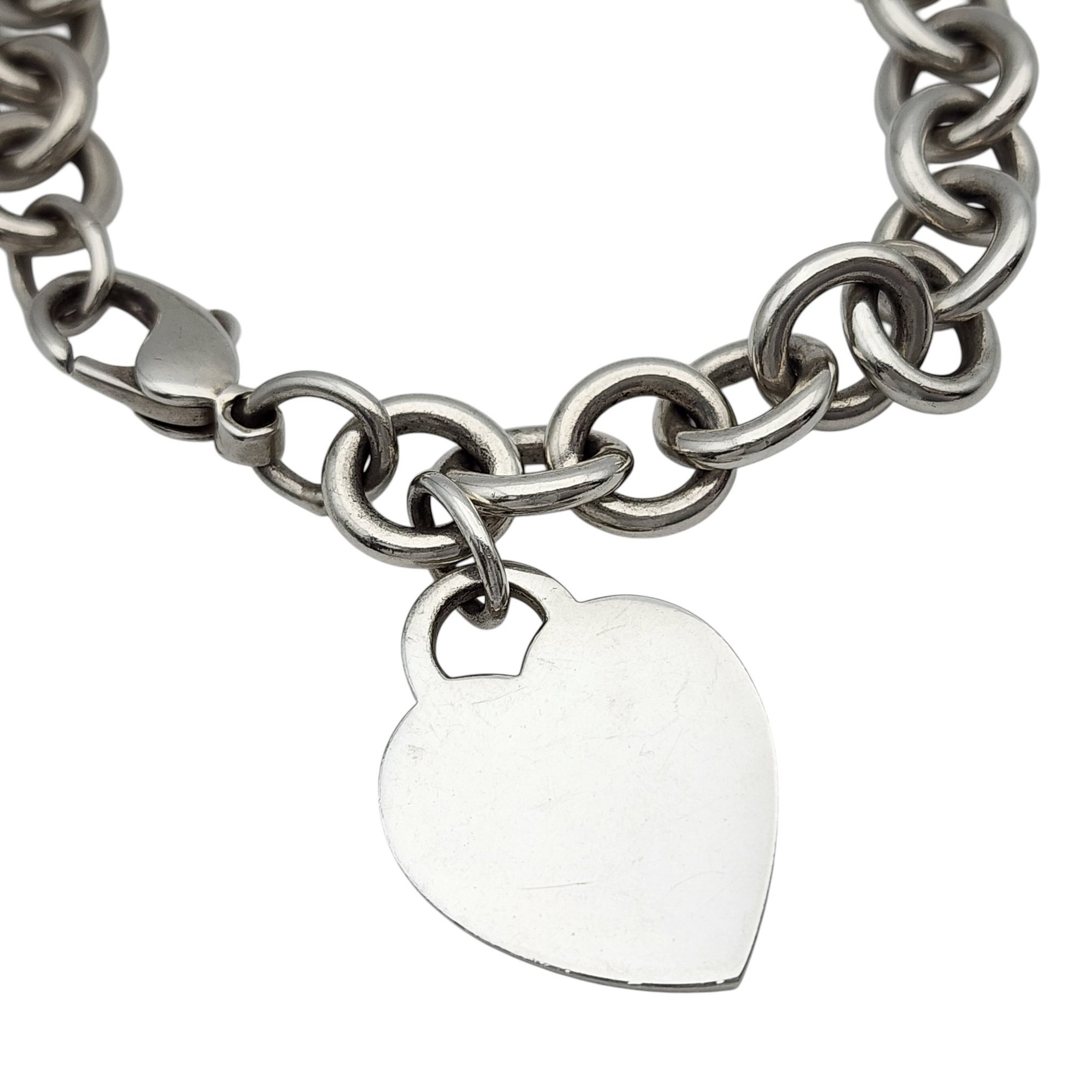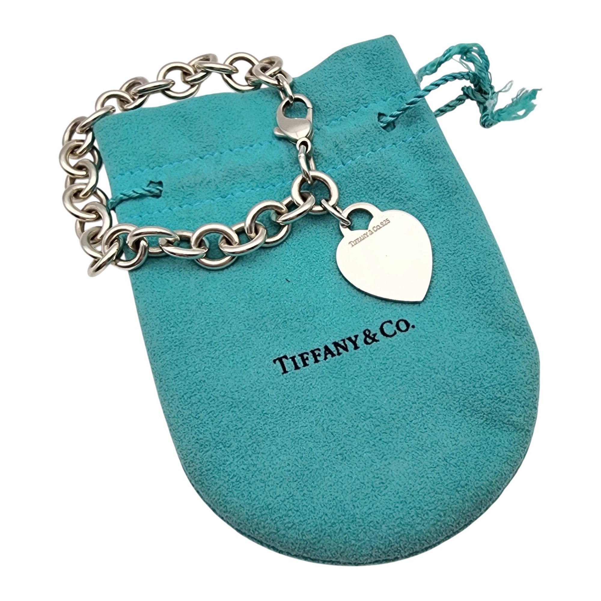 Tiffany & Co. Sterling Heart Charm Chain Link Bracelet, 7.5″ – 34.9g, comes with Tiffany pouch as shown