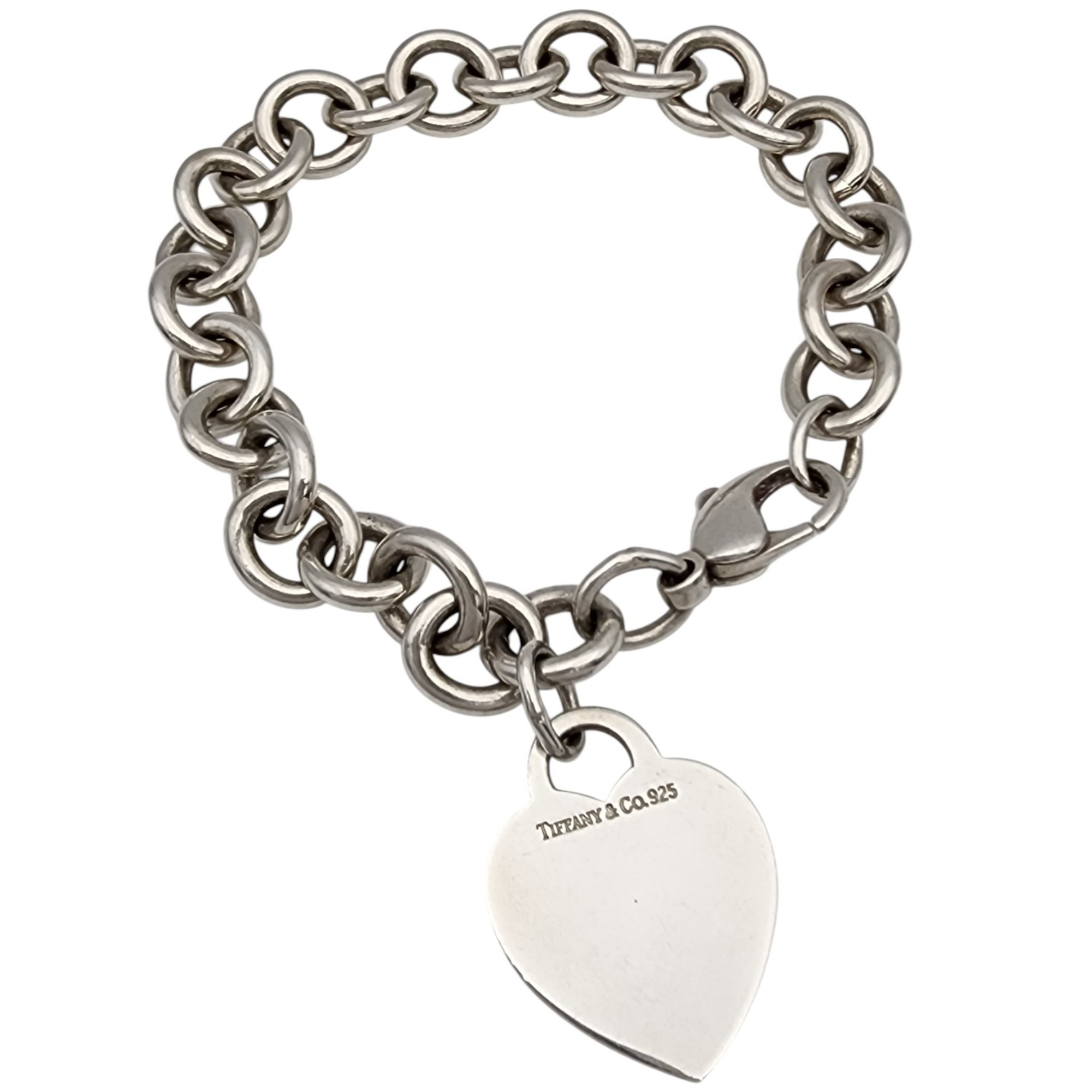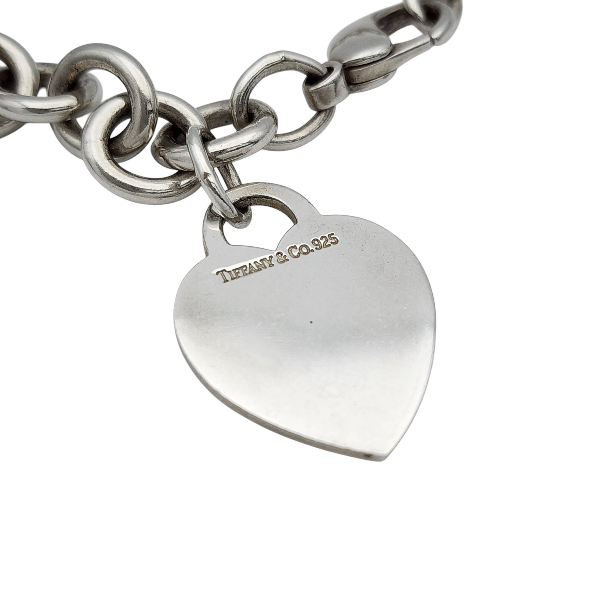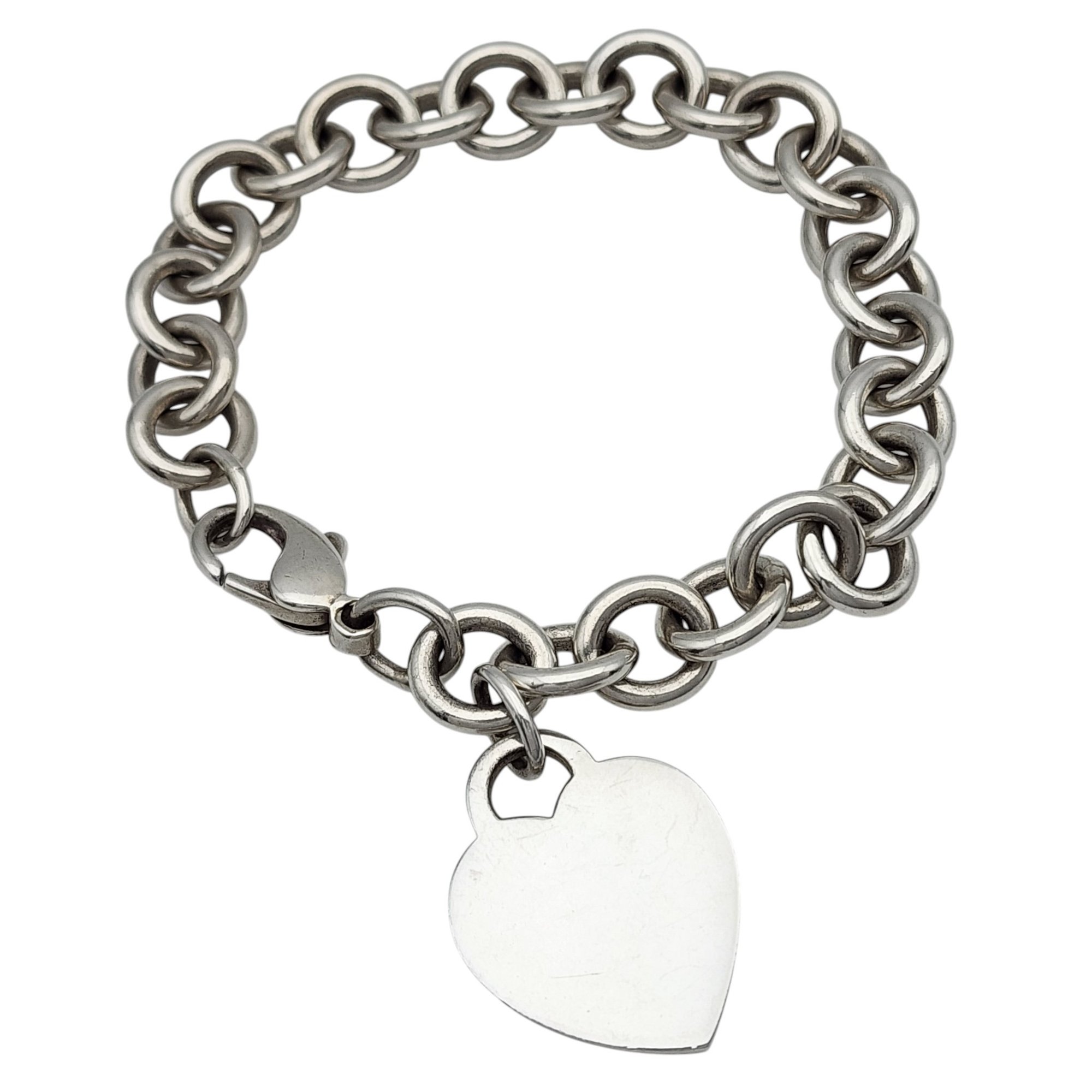 Tiffany & Co. Sterling Heart Charm Chain Link Bracelet, 7.5″ – 34.9g, comes with Tiffany pouch as shown