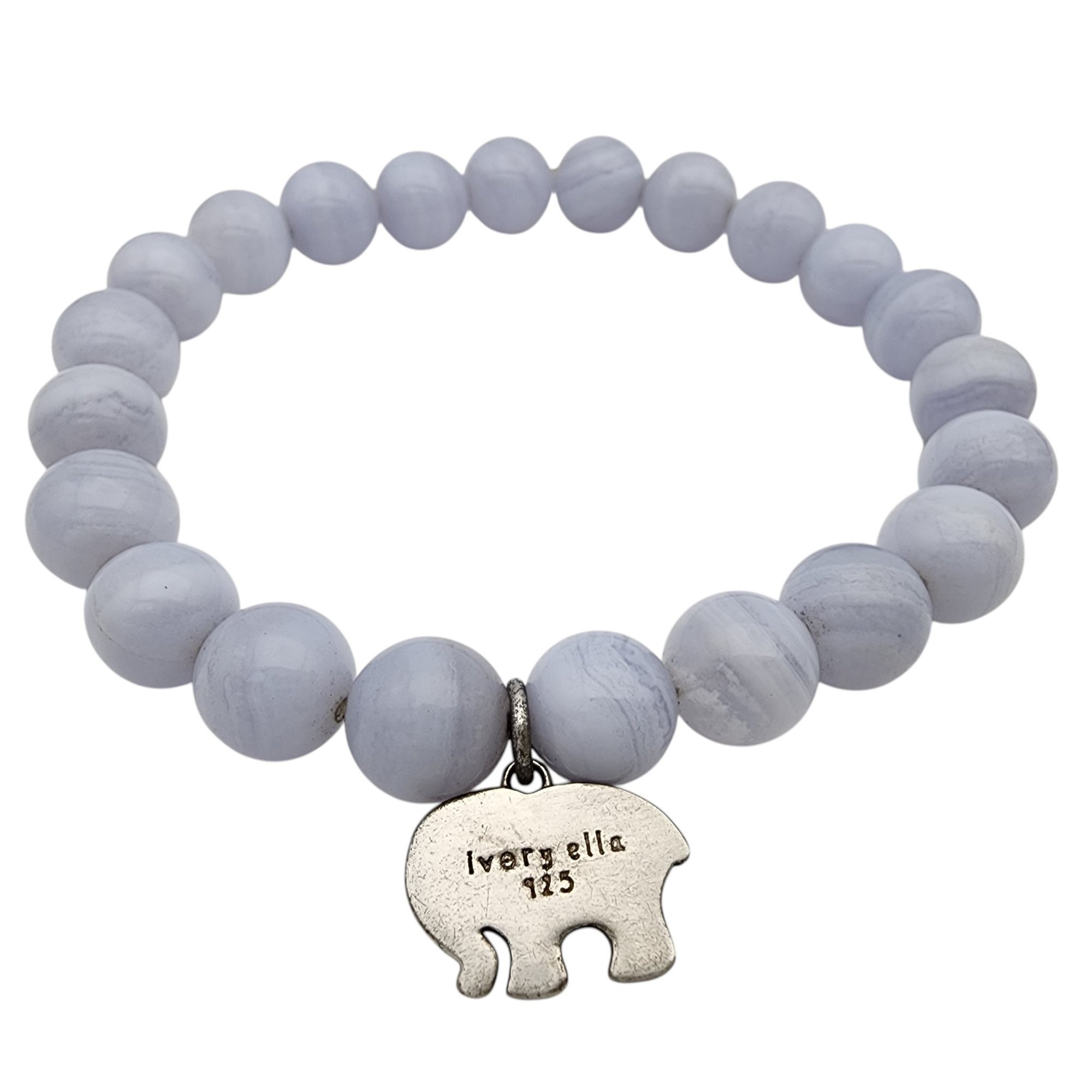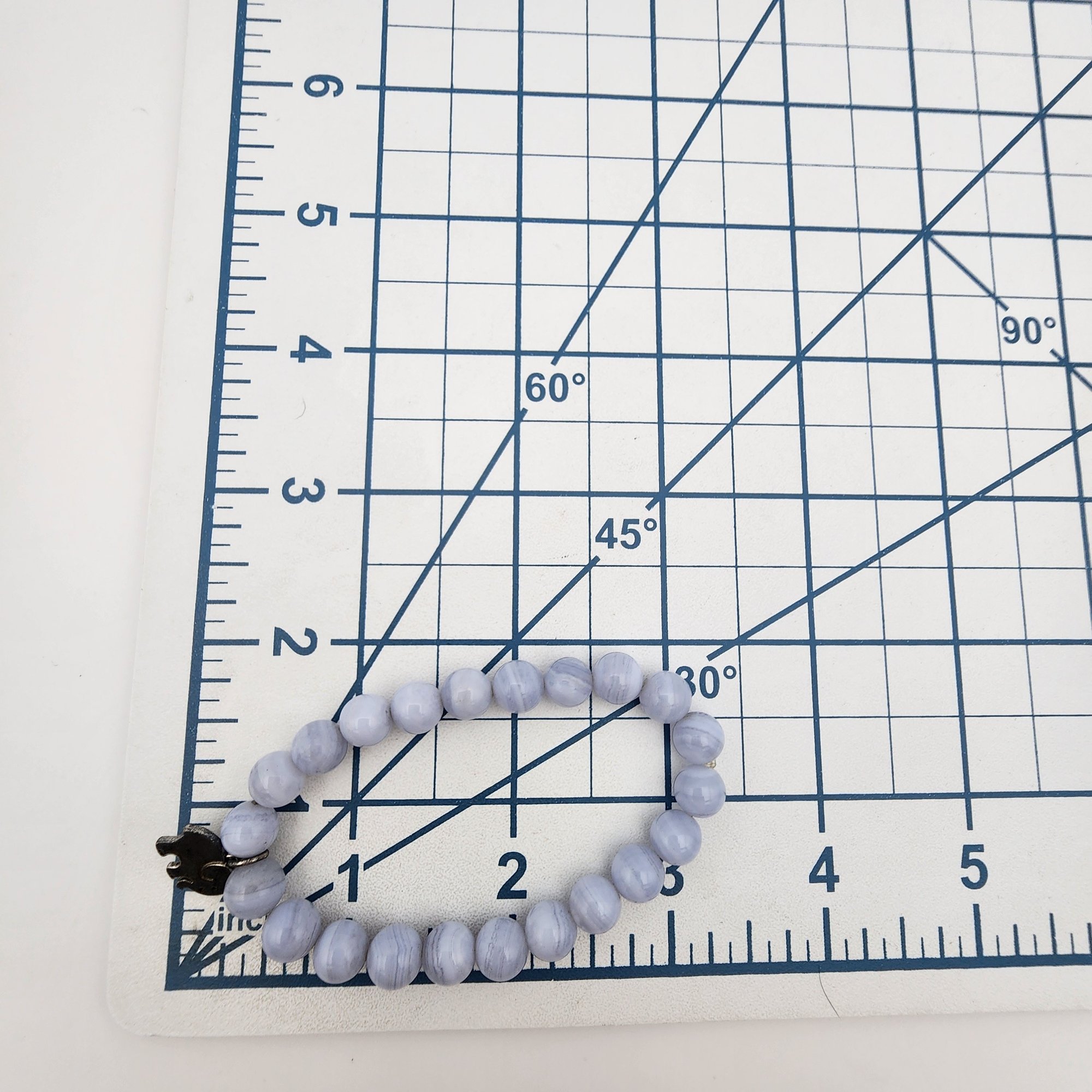 Signed Sterling Elephant Charm Blue Lace Agate Bracelet 17.4g