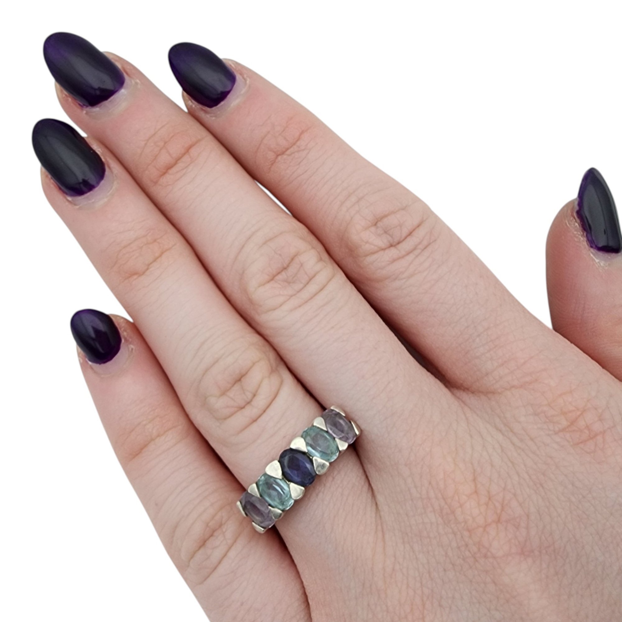 Sterling Amethyst Topaz Iolite/Tanzanite Ring Sz 6 4.9g