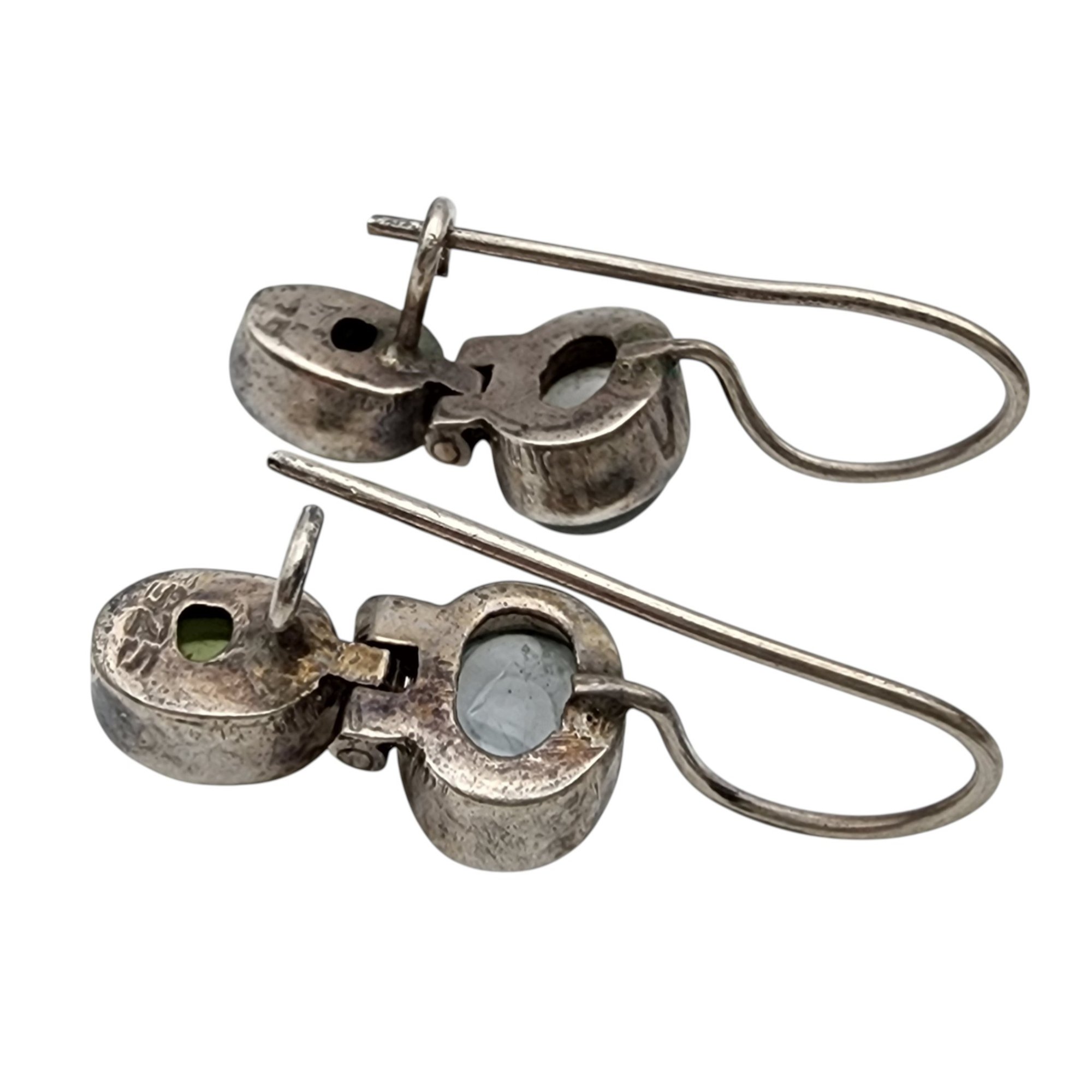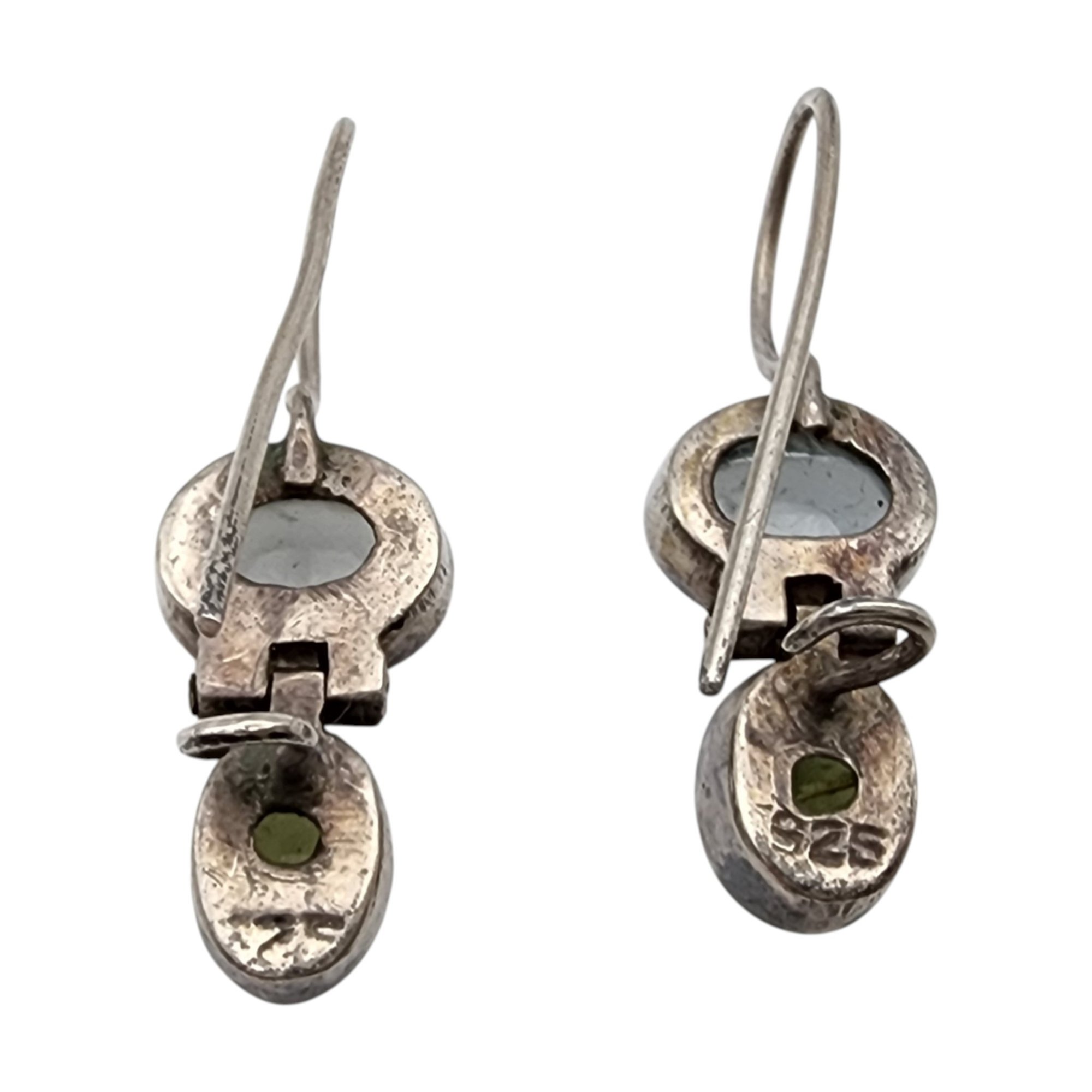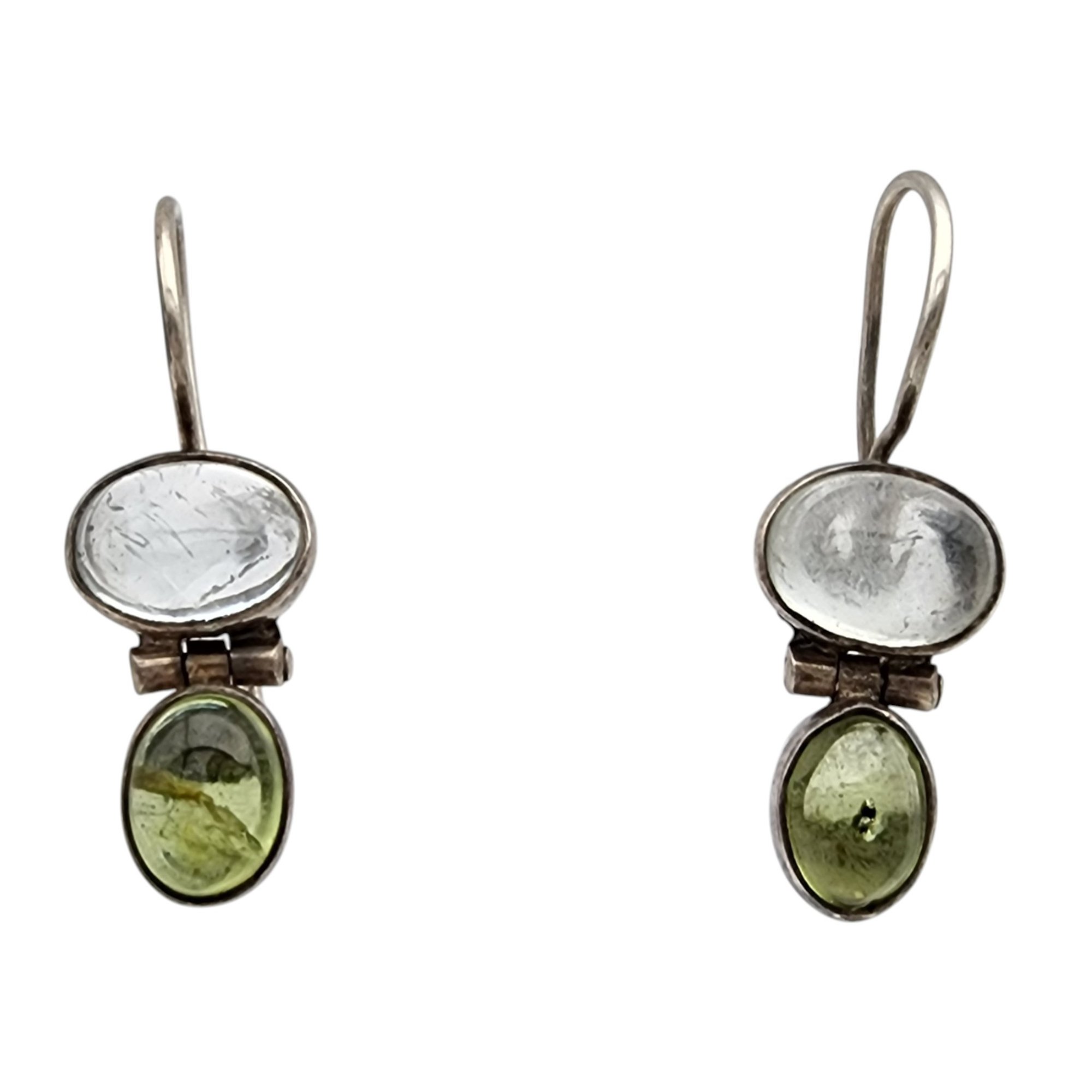 Sterling Peridot and Moonstone/Quartz? Hinge Earrings 3g