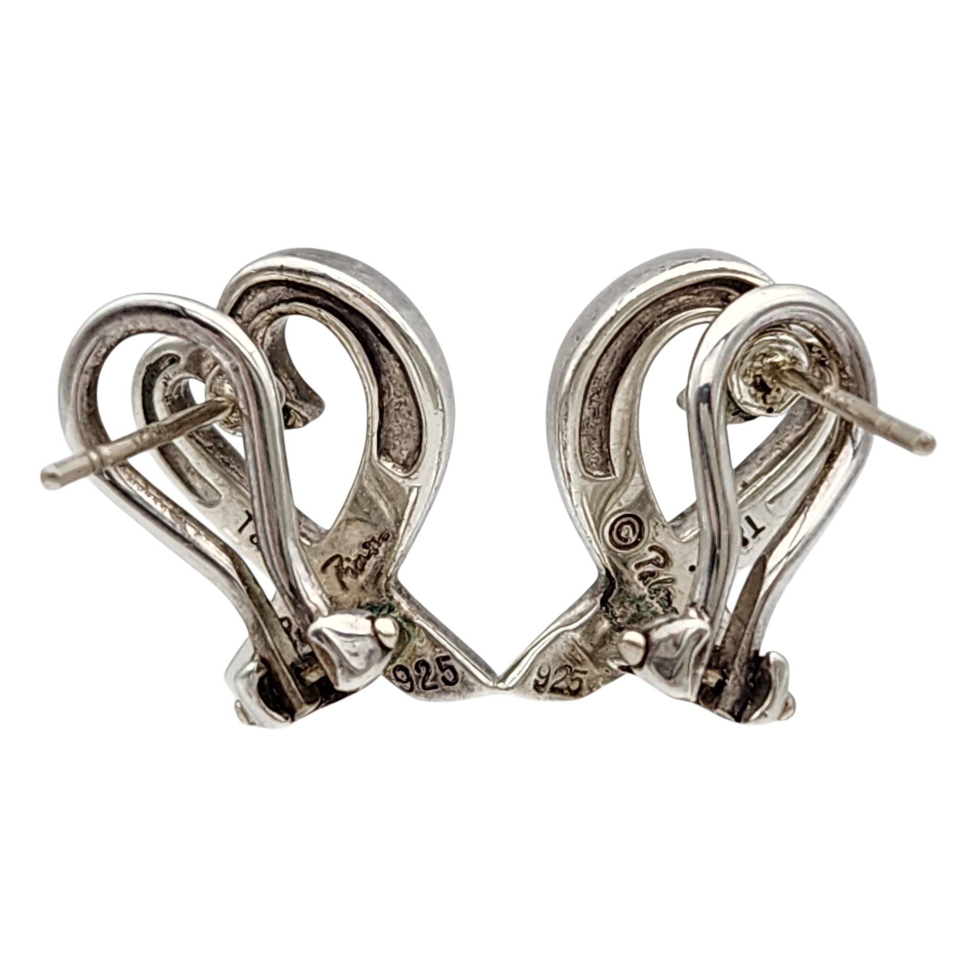 Tiffany & Co. Paloma Picasso Sterling Loving Heart Earrings w/ Omega Clip Backs, .6″l x .4″w – 4.1g, comes with Tiffany pouch as shown