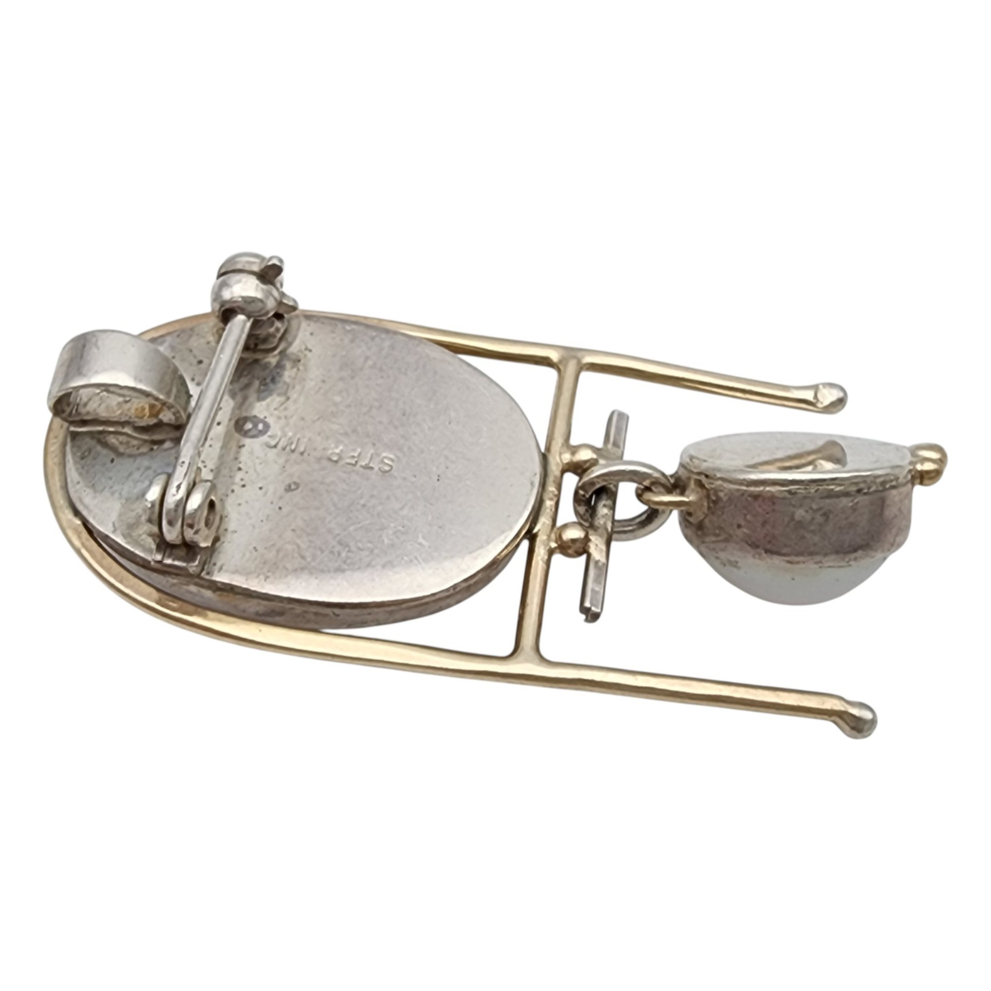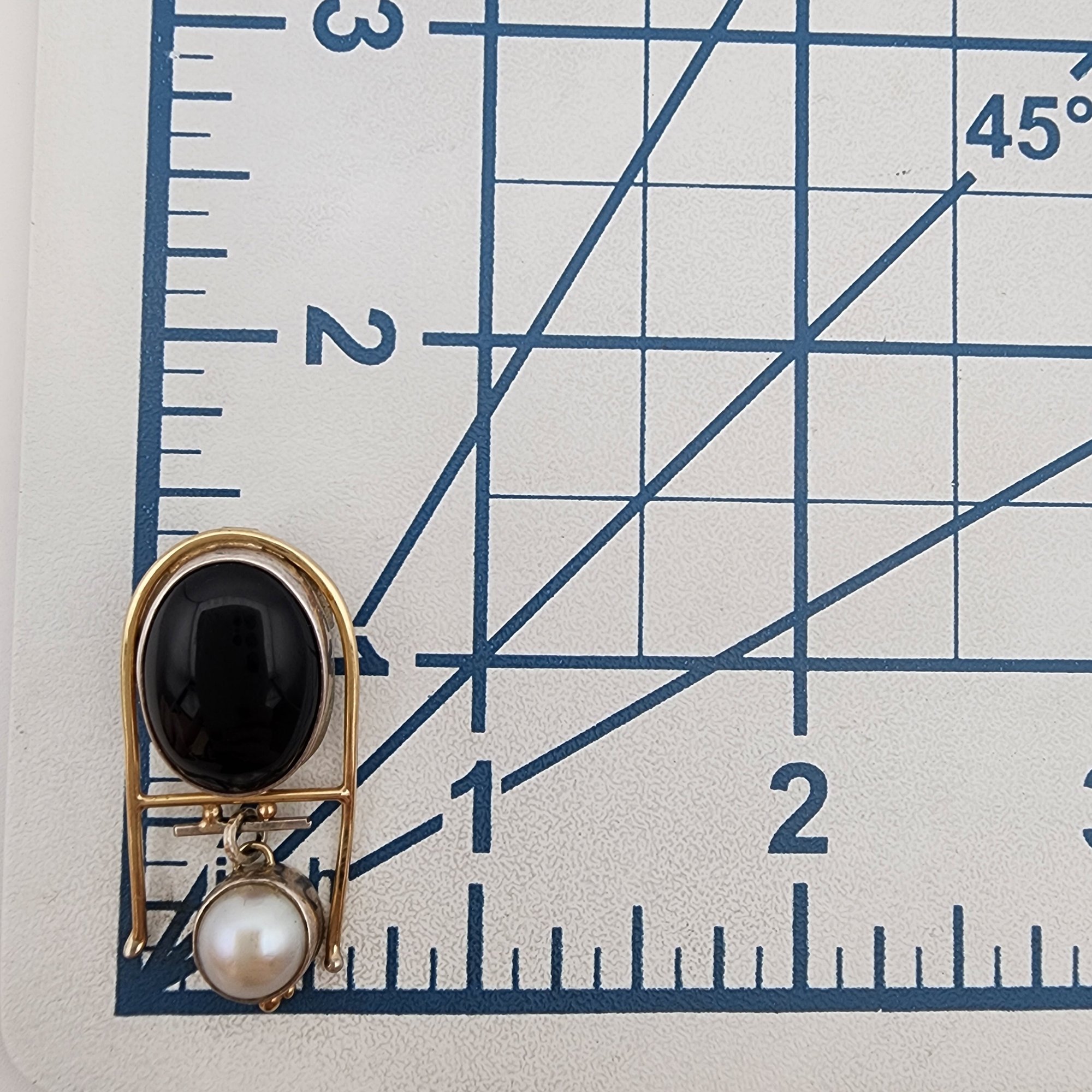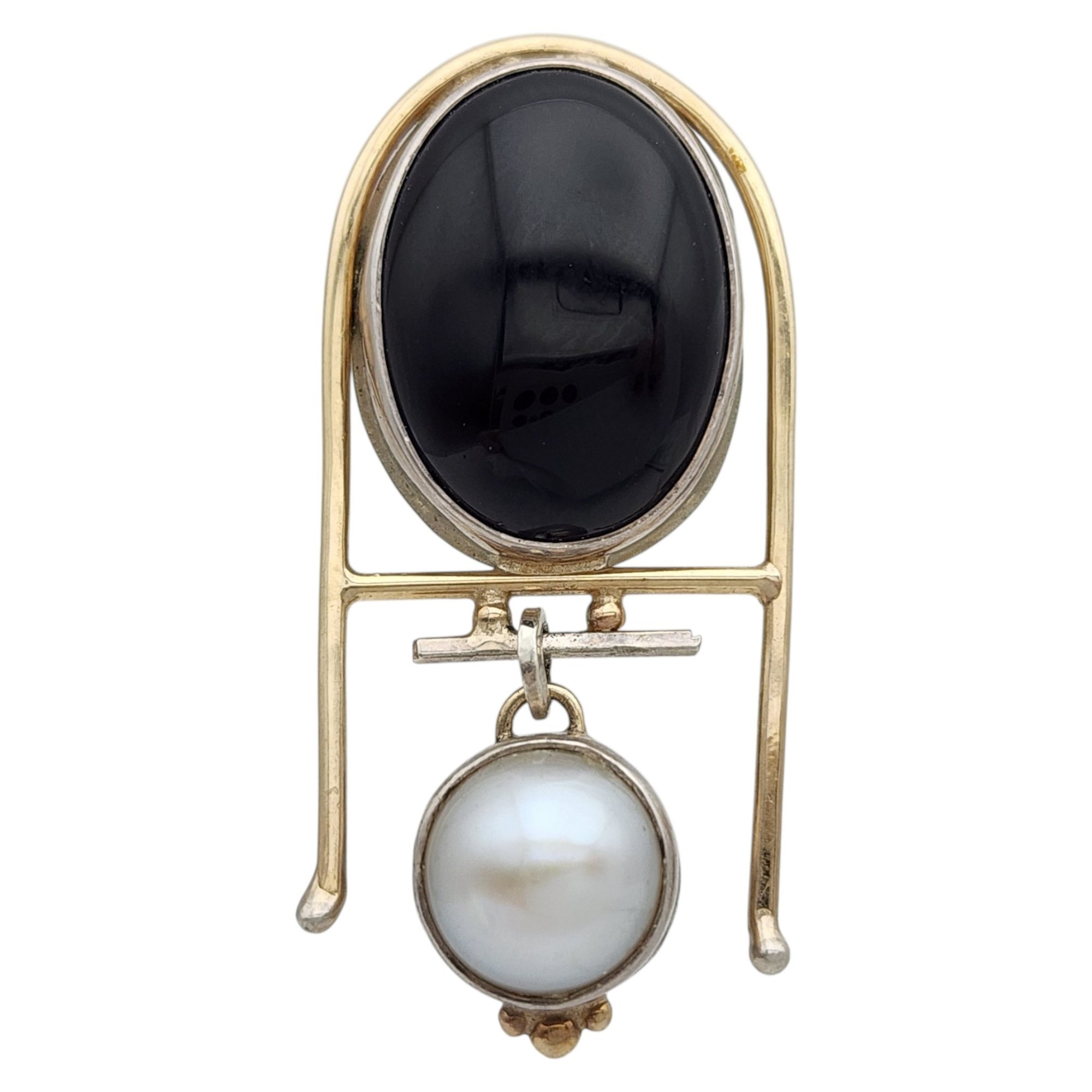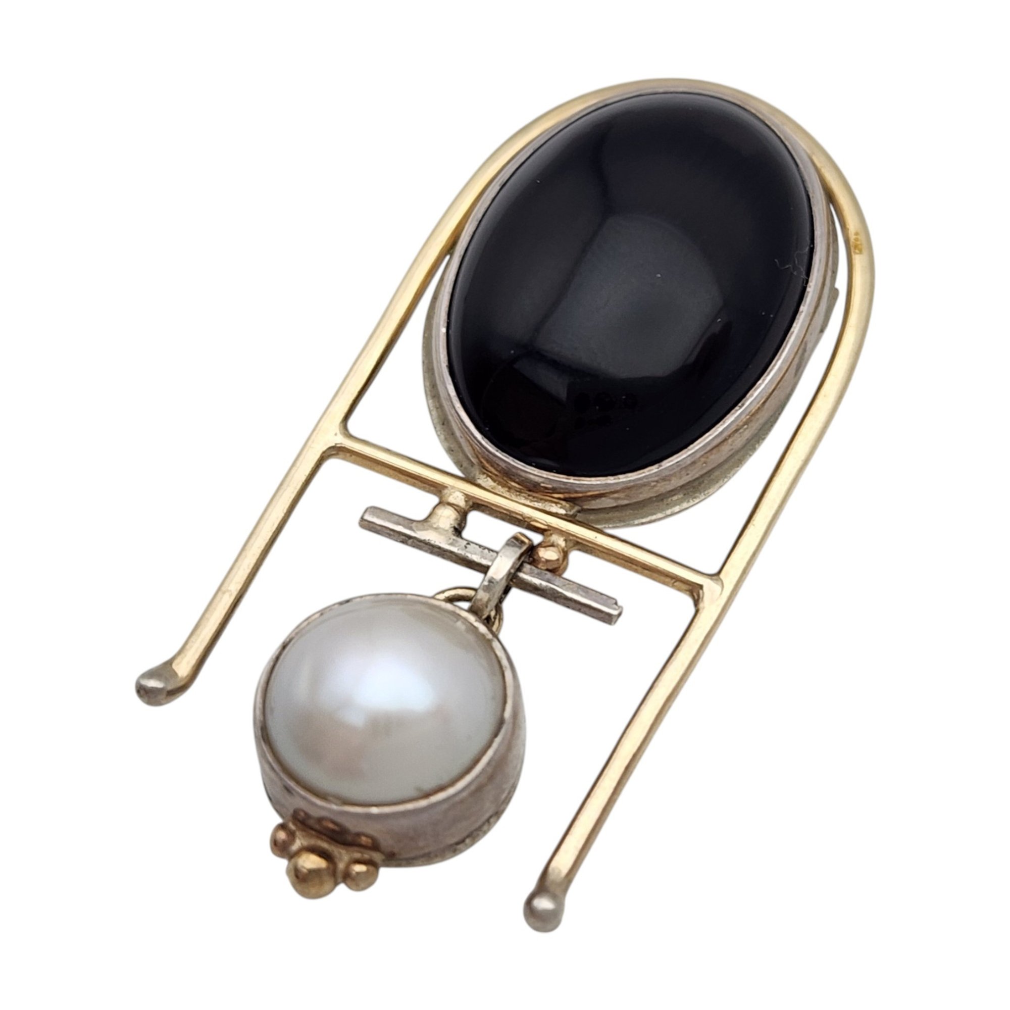 Sterling Abstract Onyx Pearl Pendant Brooch – 6.5g