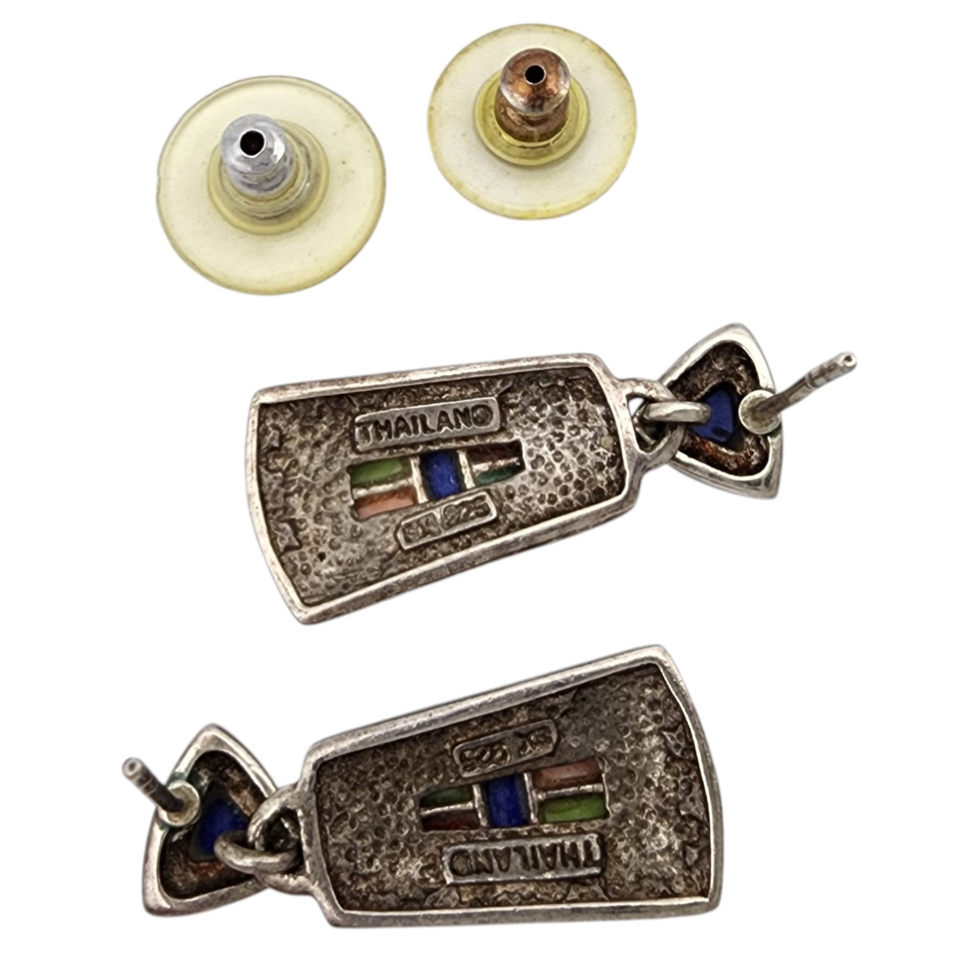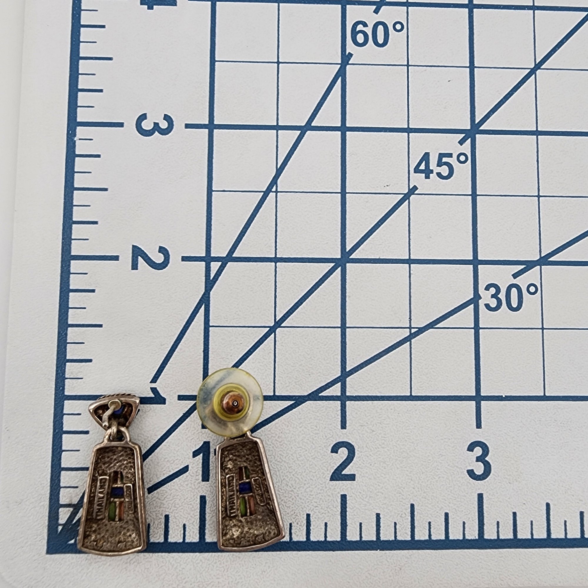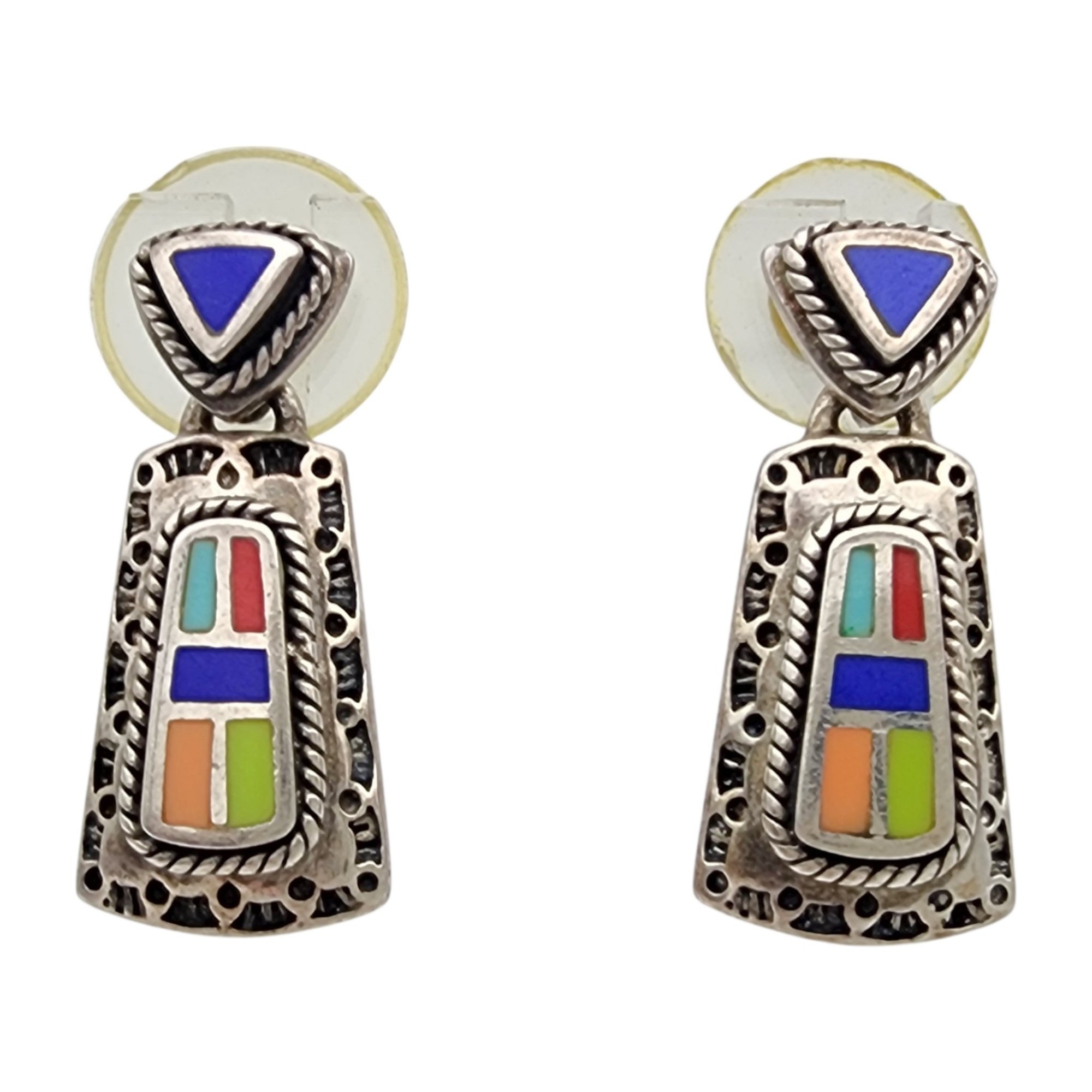 Sterling Multi Stone Inlay Dangle Earrings 7.9g