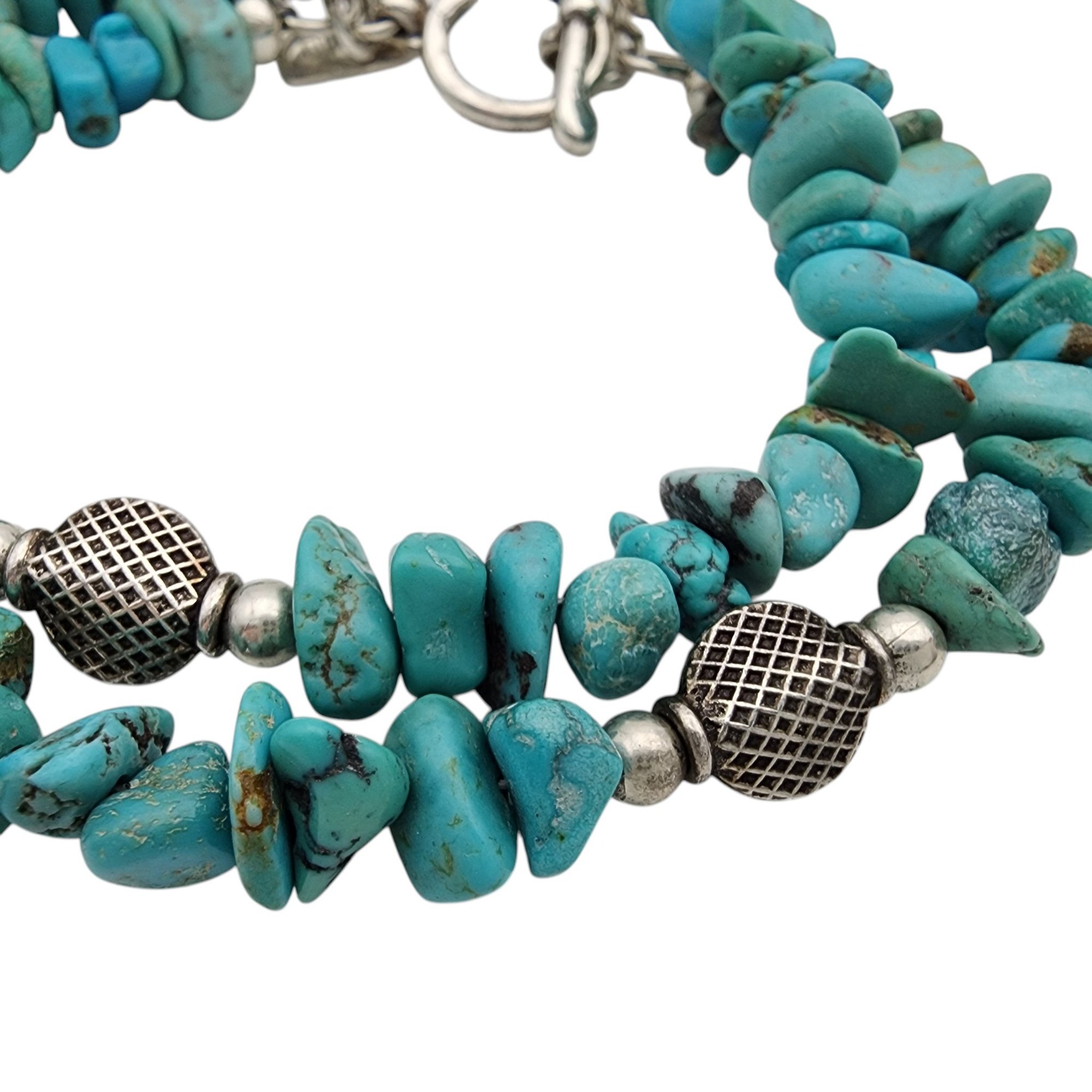Sterling Turquoise Chip Bead Bracelet – 23.7g