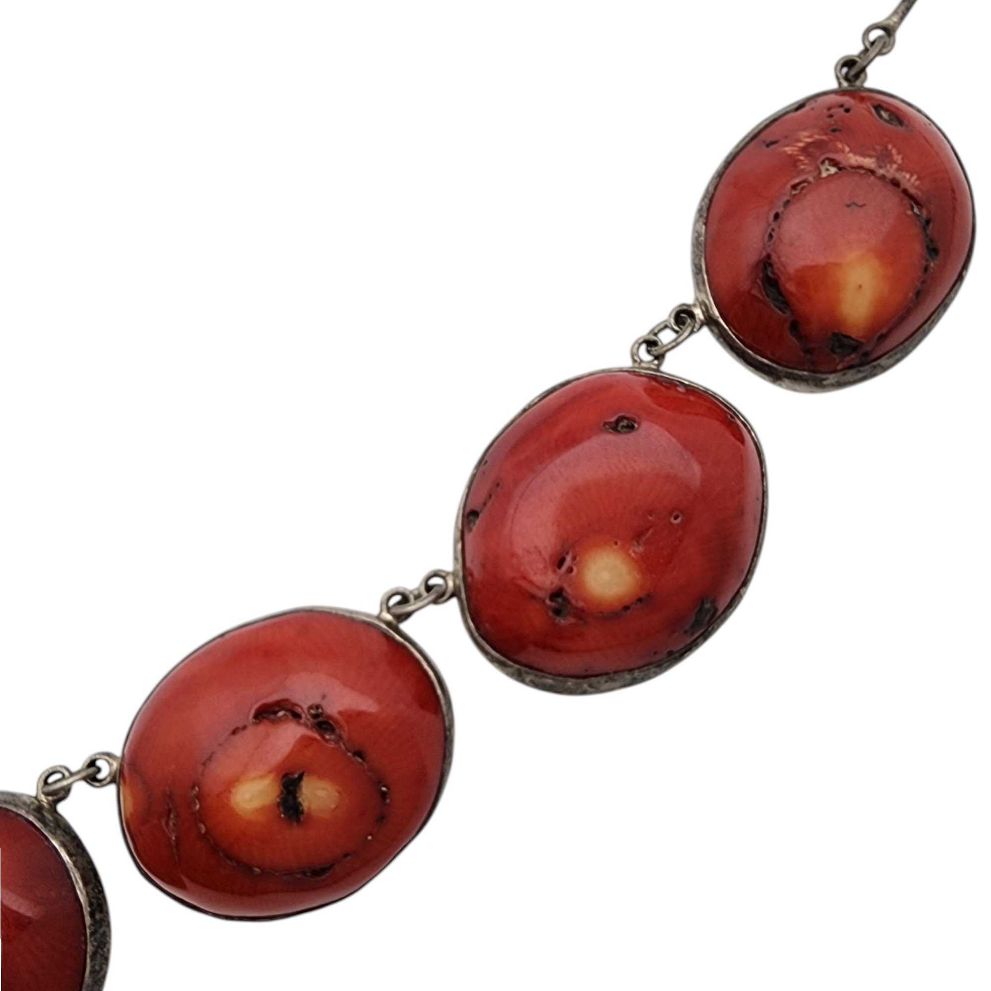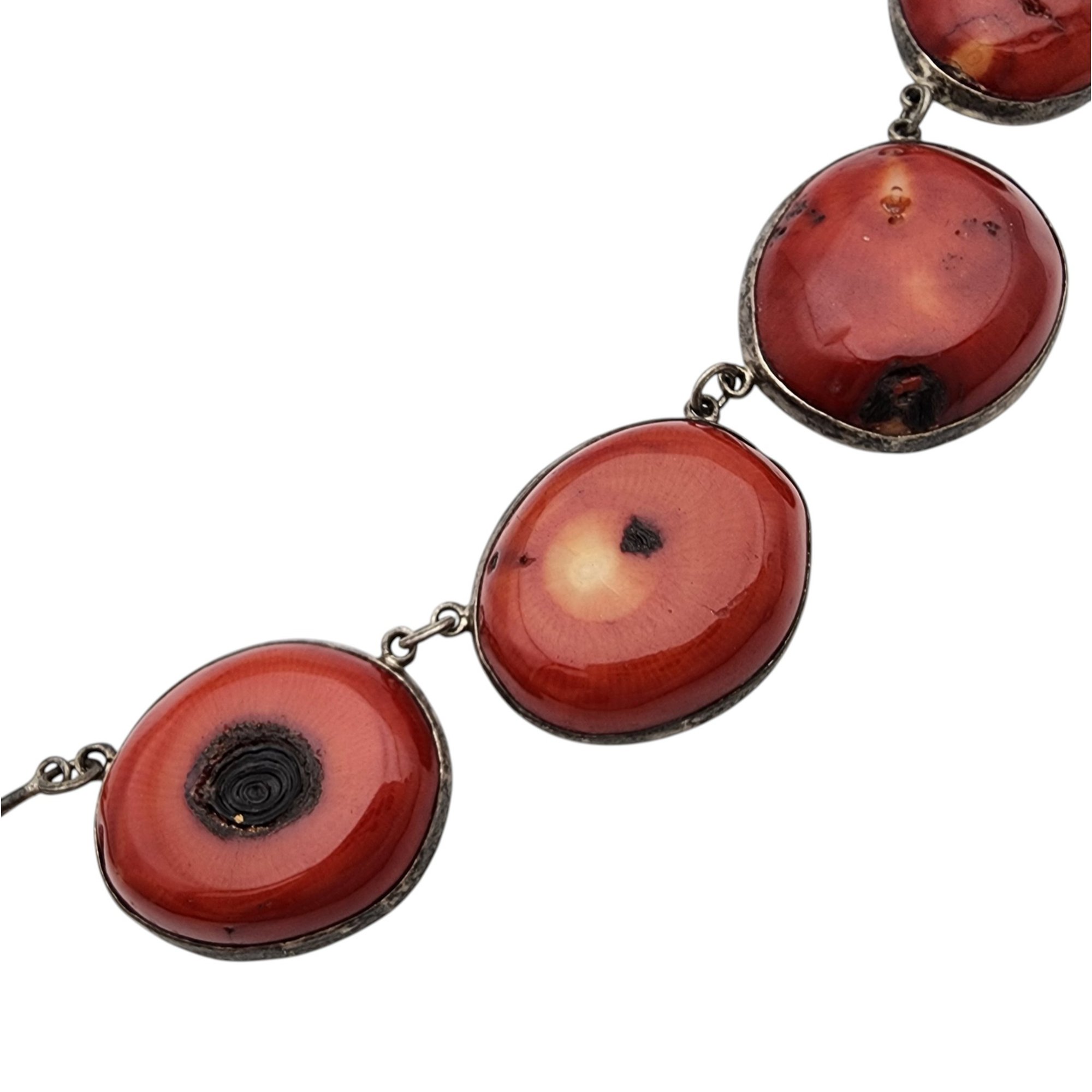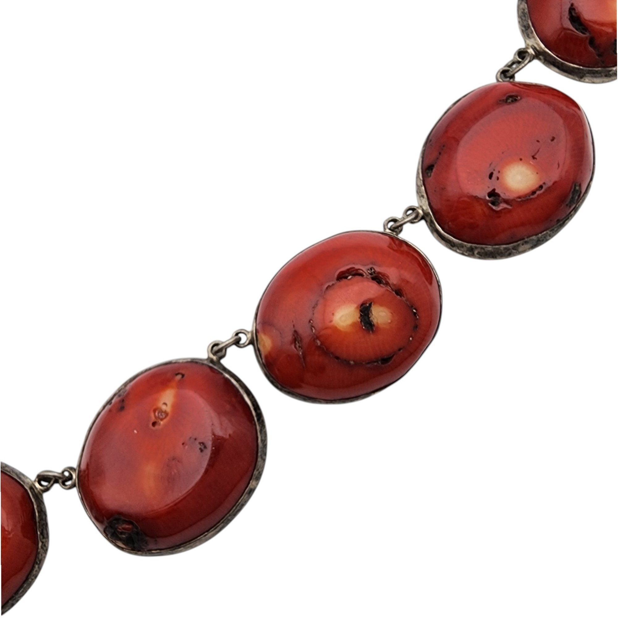 Vintage Sterling Ethnic/Tribal Red Bamboo Coral Necklace 51.9g
