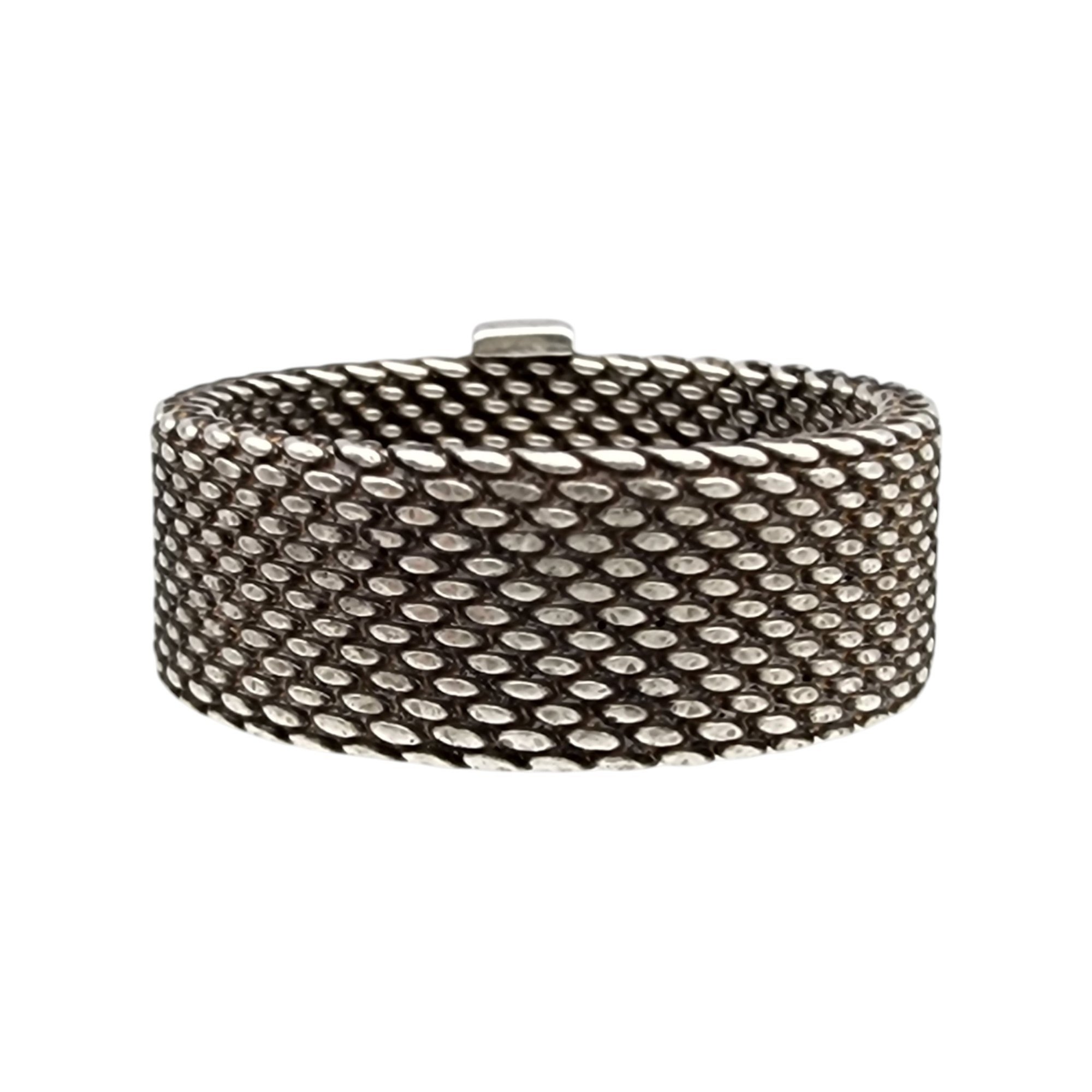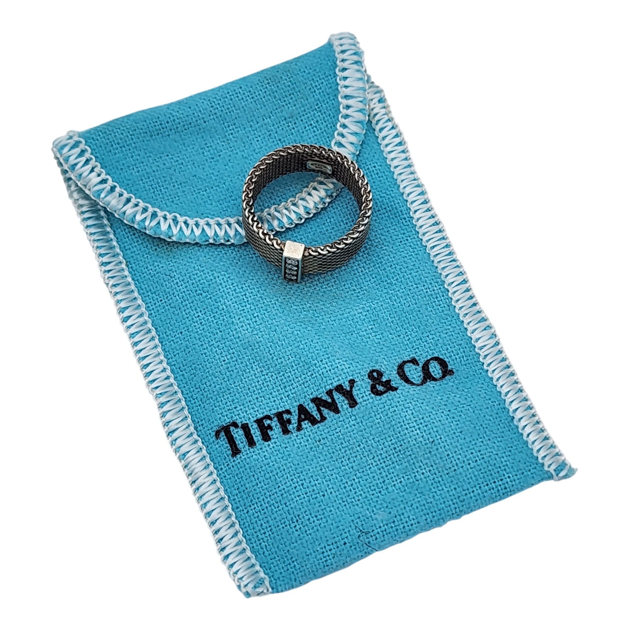 Tiffany & Co Sterling Diamond Somerset Mesh Ring Sz 4 – 3.8g, comes with Tiffany pouch as shown