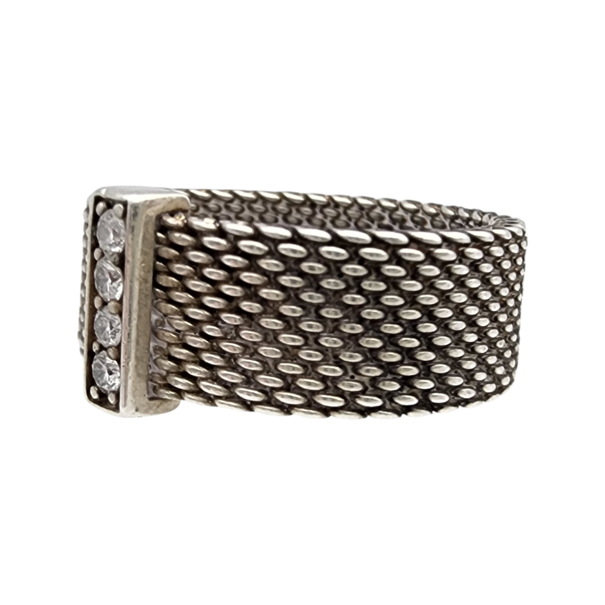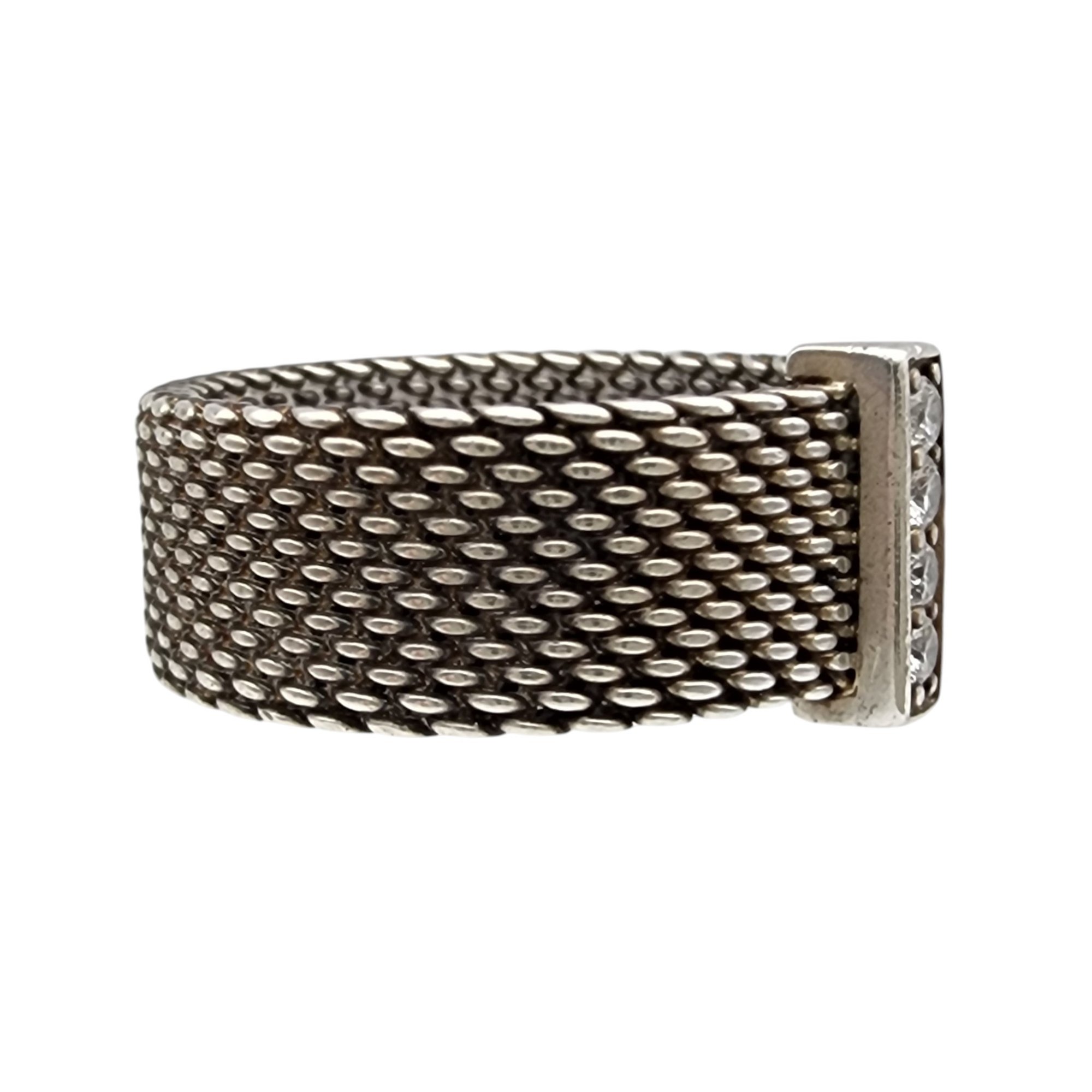 Tiffany & Co. Sterling Diamond Somerset Mesh Ring Sz 4