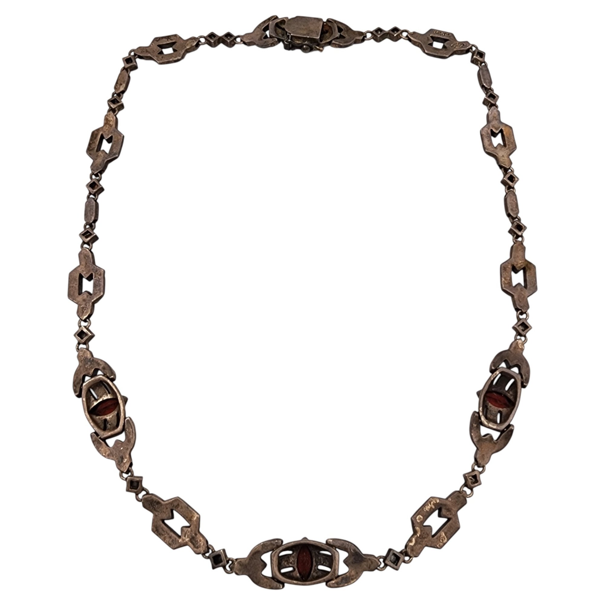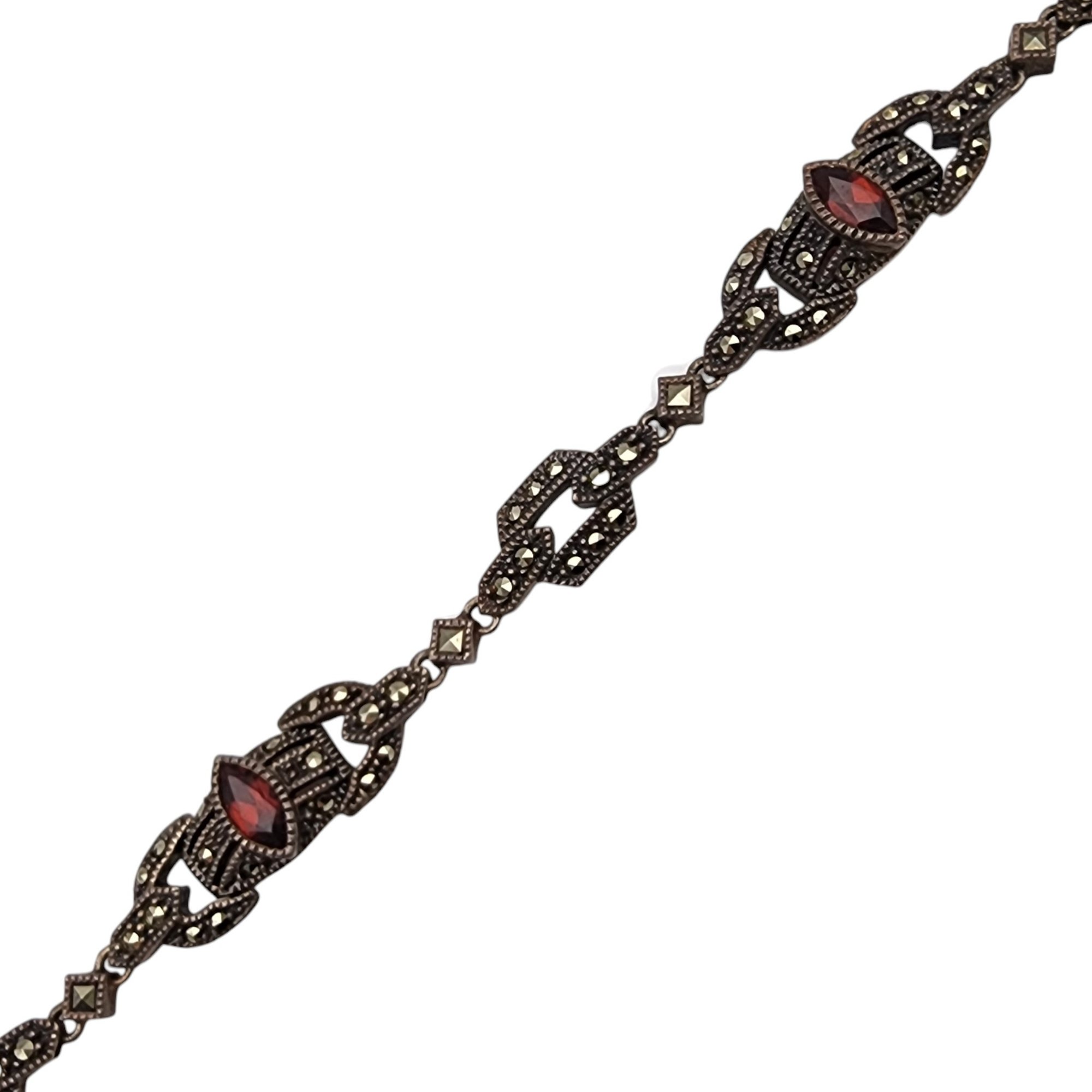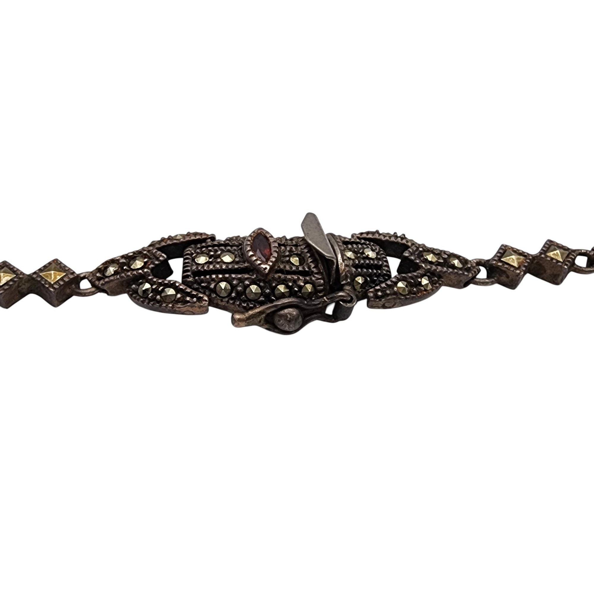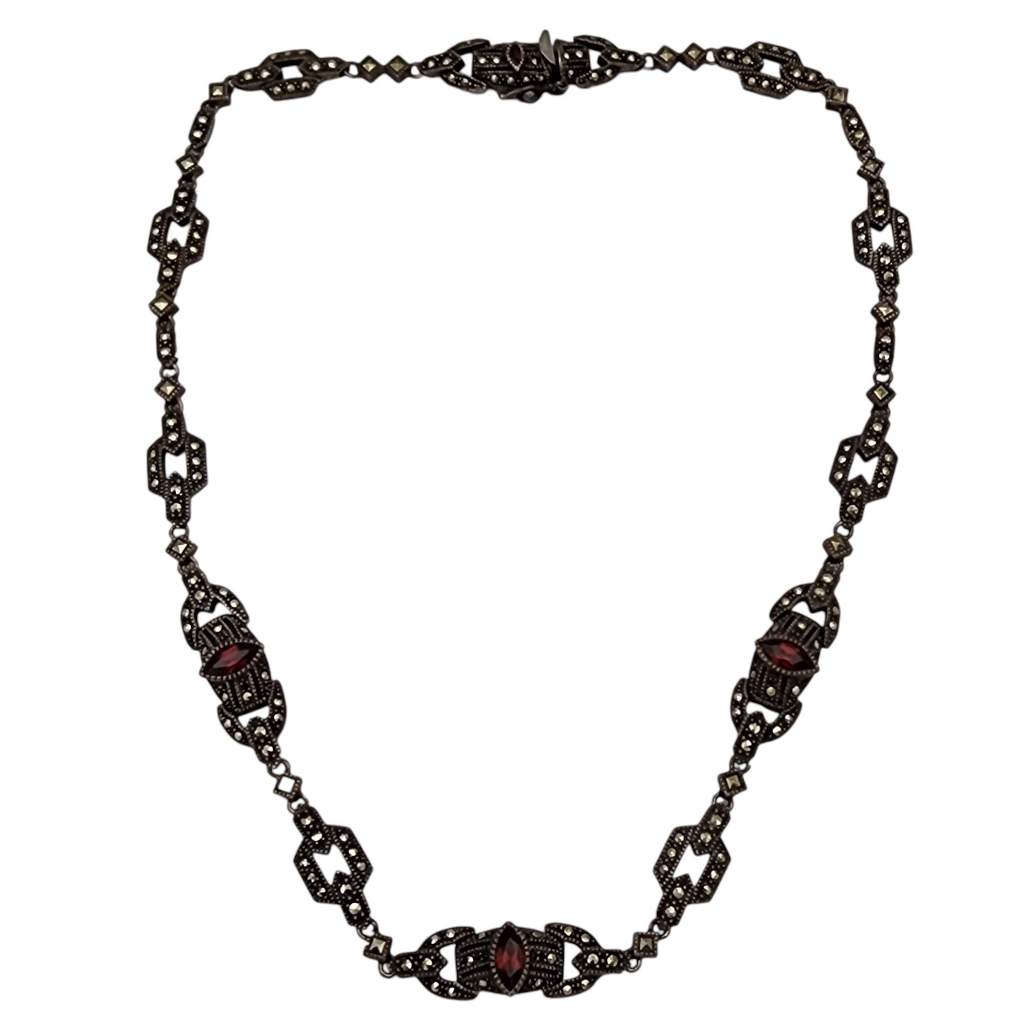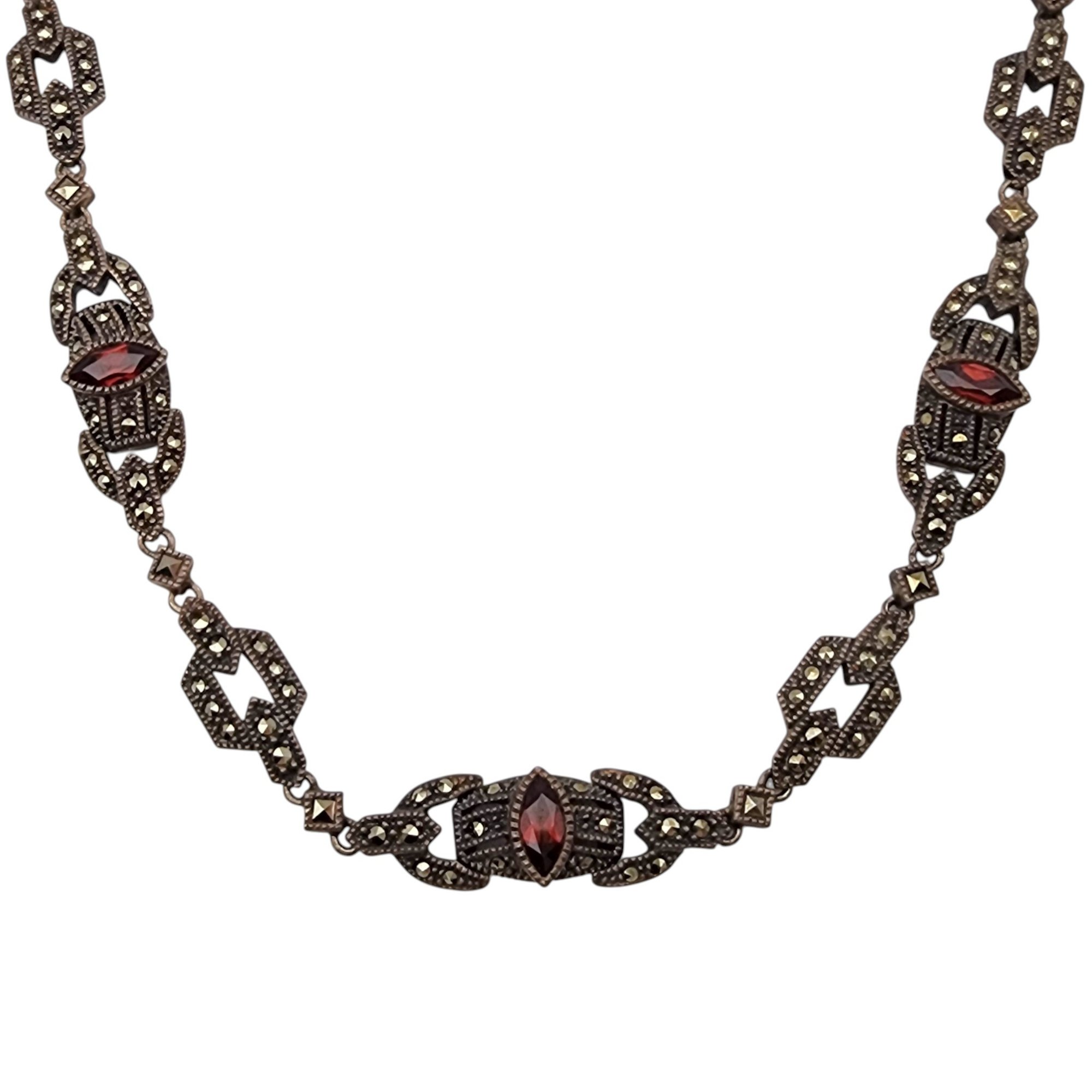 Gorgeous Vintage Judith Jack Sterling Garnet Marcasite Art Deco Necklace – 35.5g