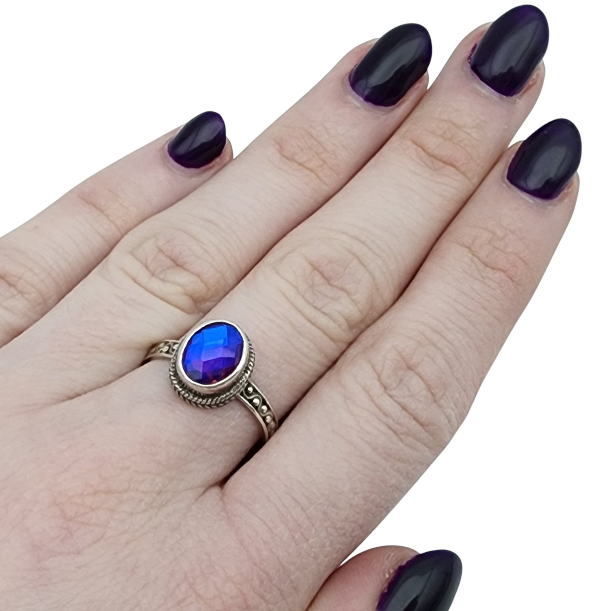 Sarda Sterling Mystic Quartz/Tourmaline Ring Sz 8 – 3.5g