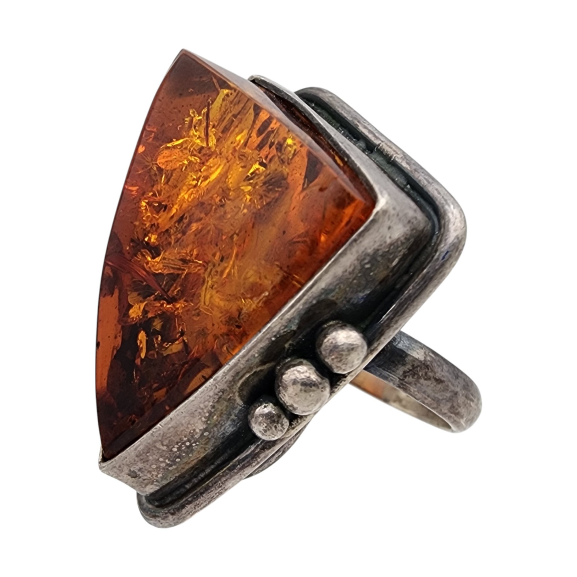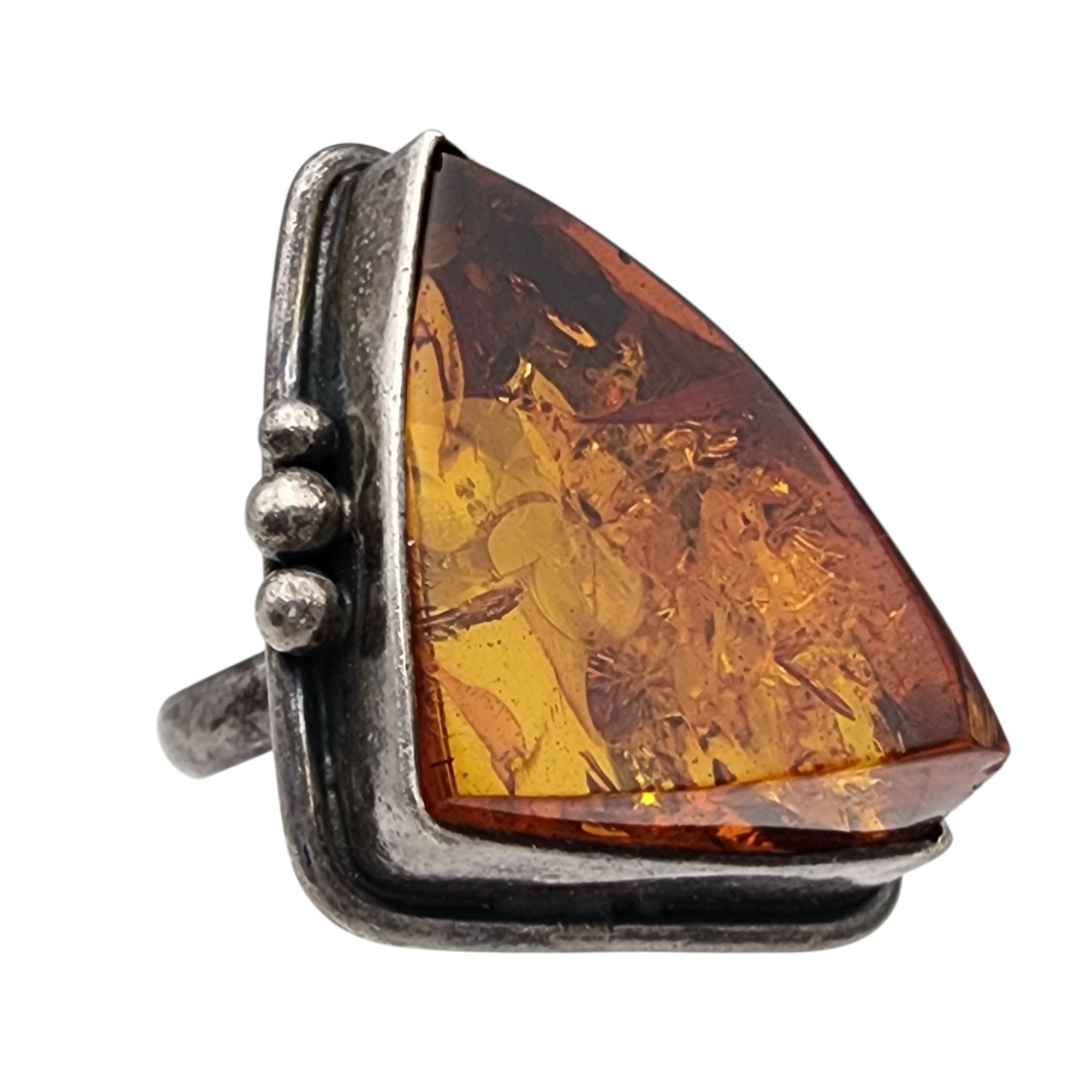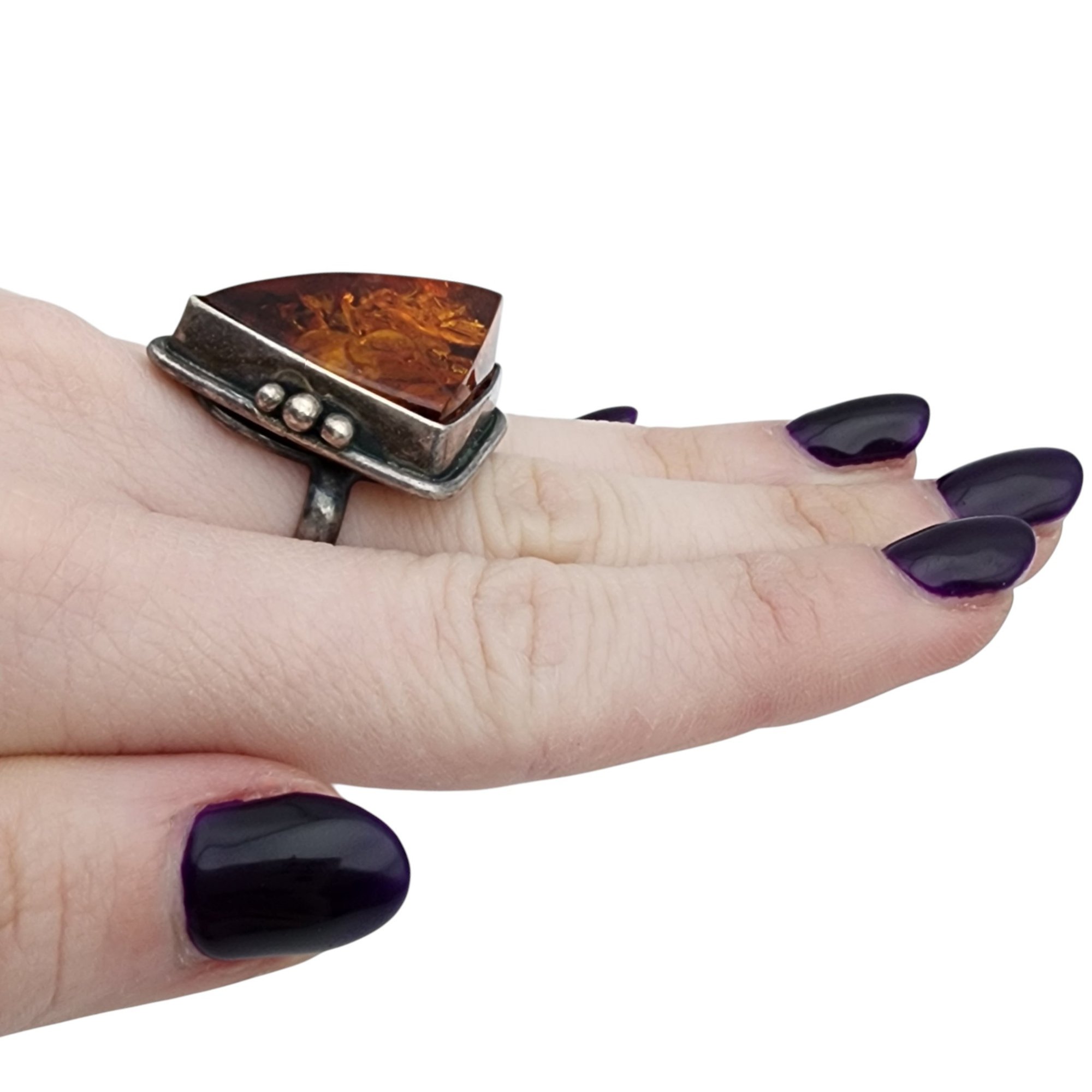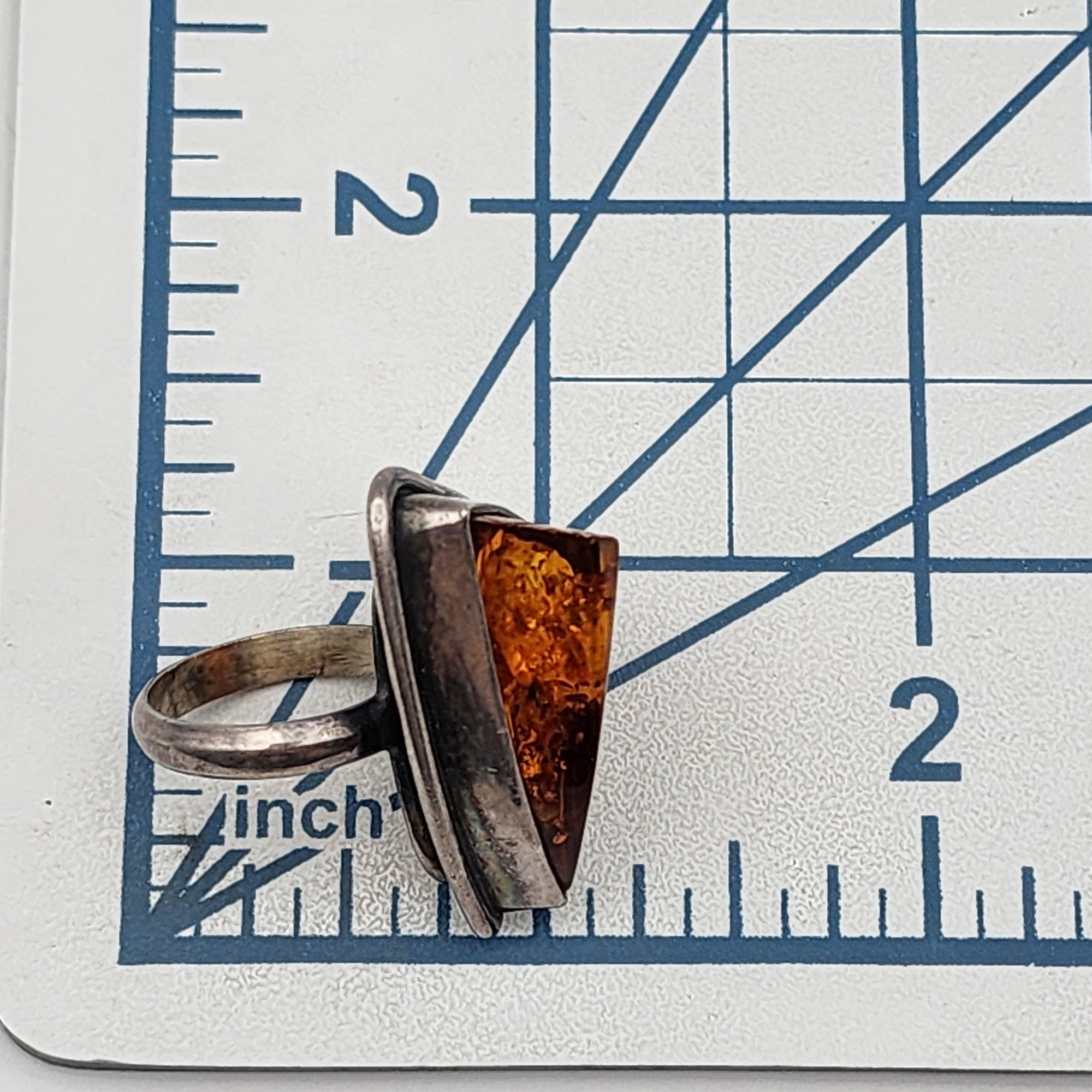 Vintage Sterling Amber Chunk Ring Sz 6.5 – 12.5g