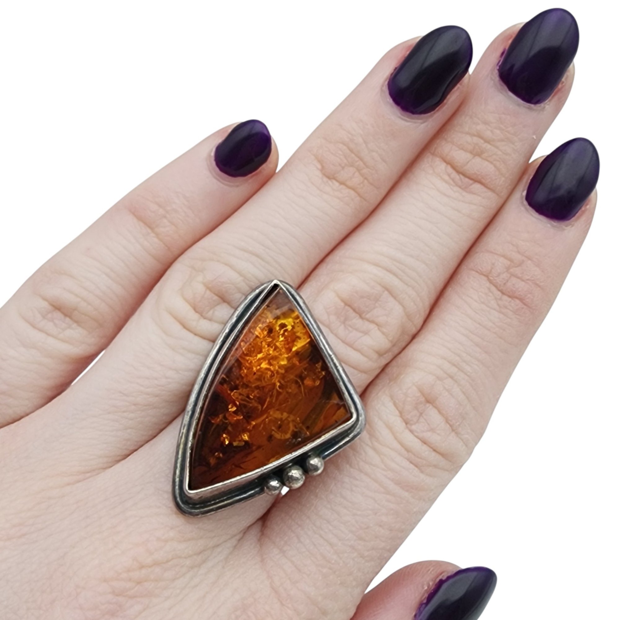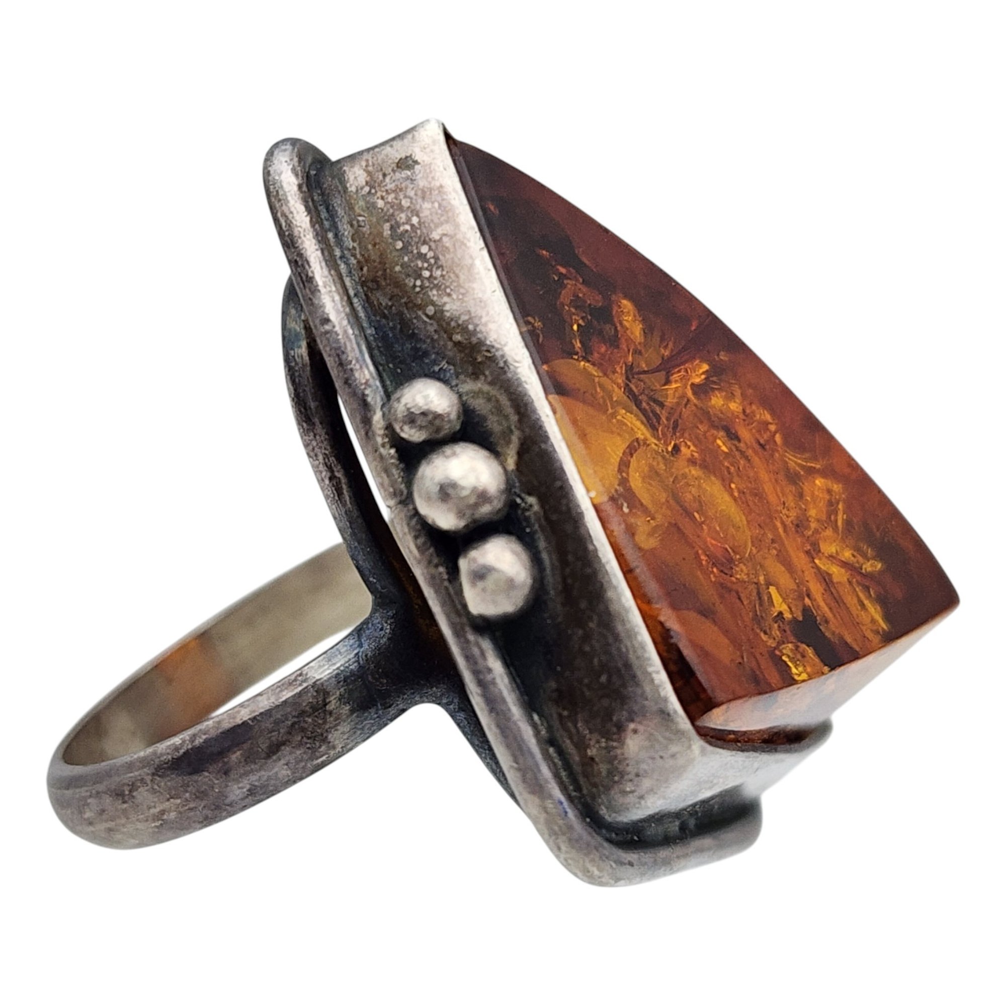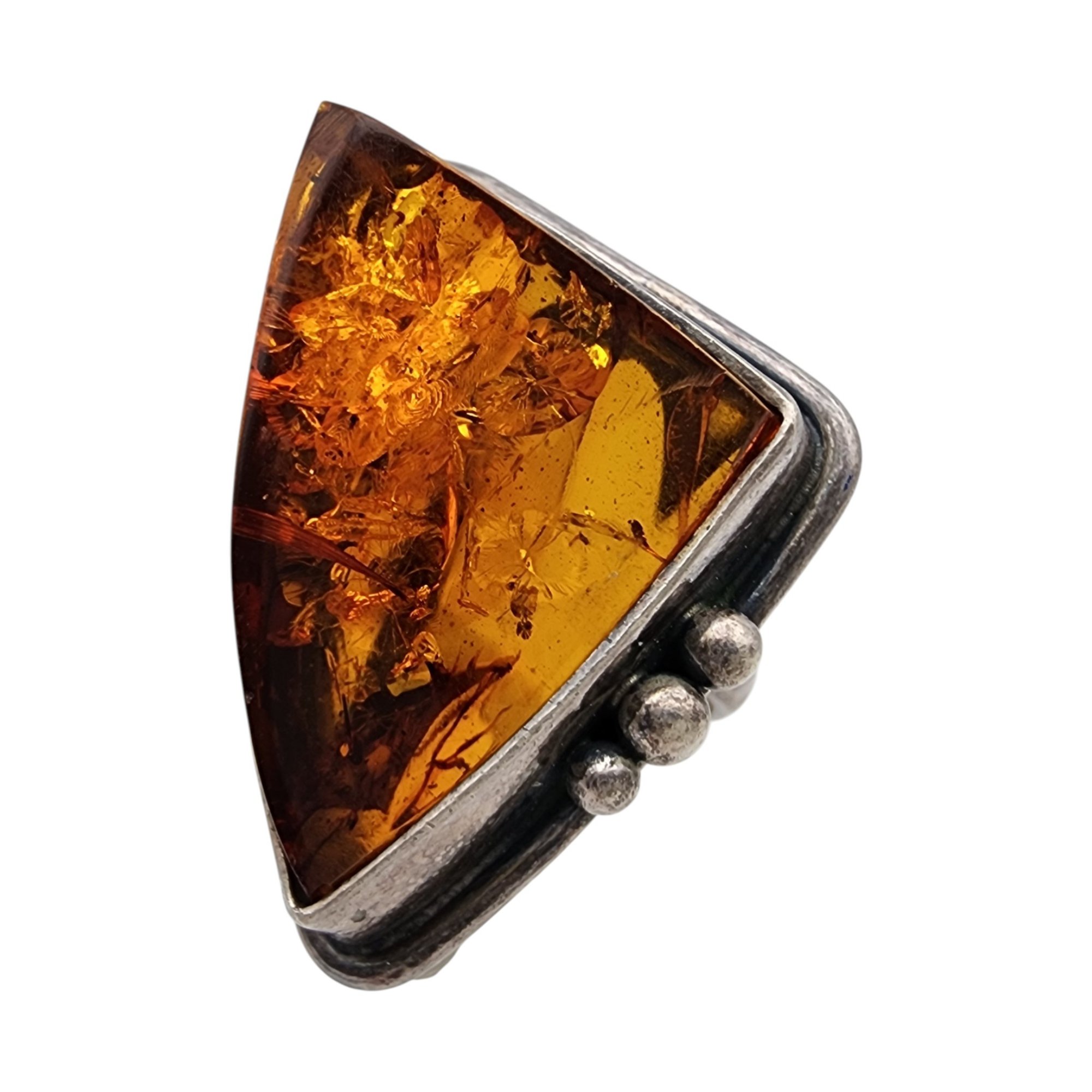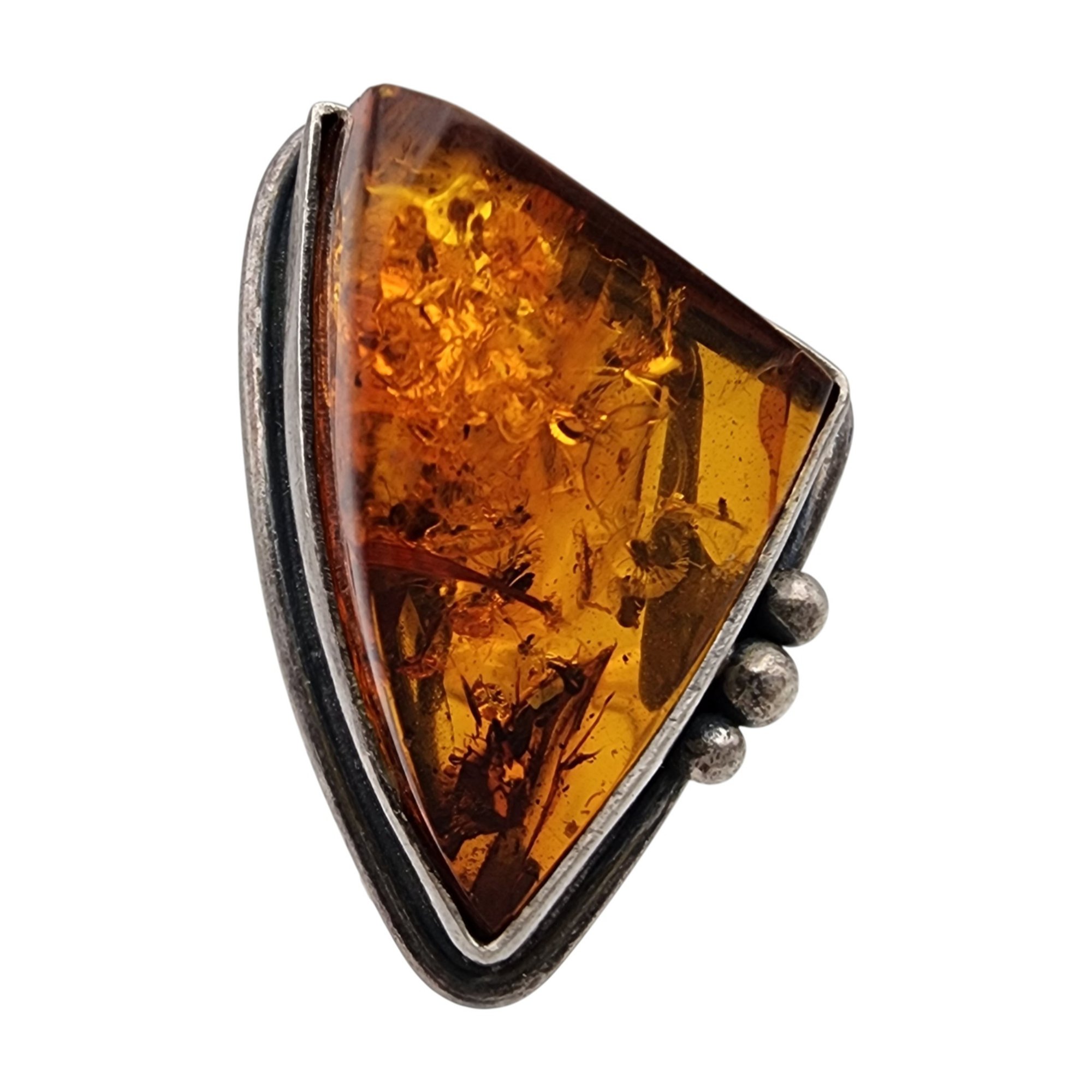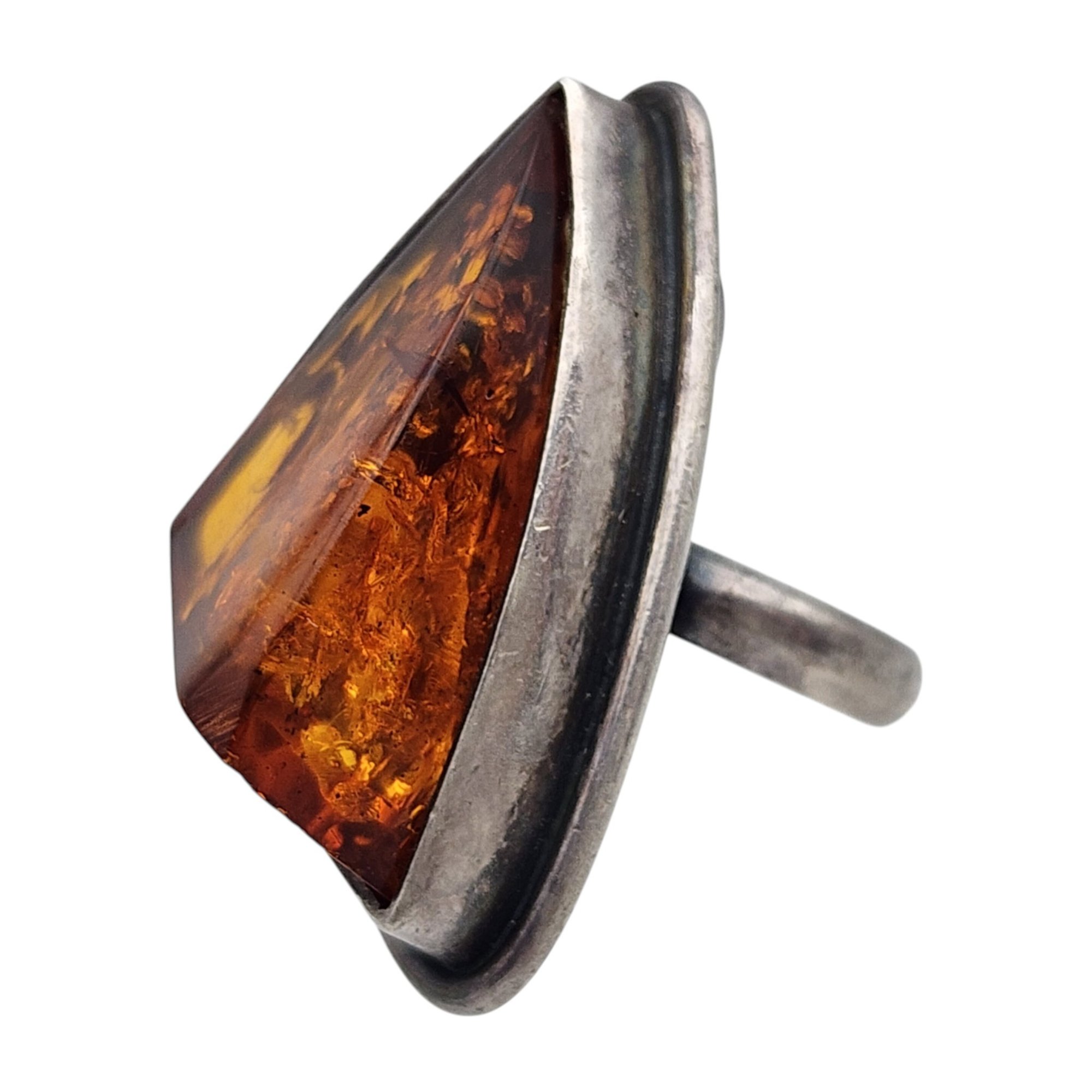 Vintage Sterling Amber Chunk Ring Sz 6.5 – 12.5g