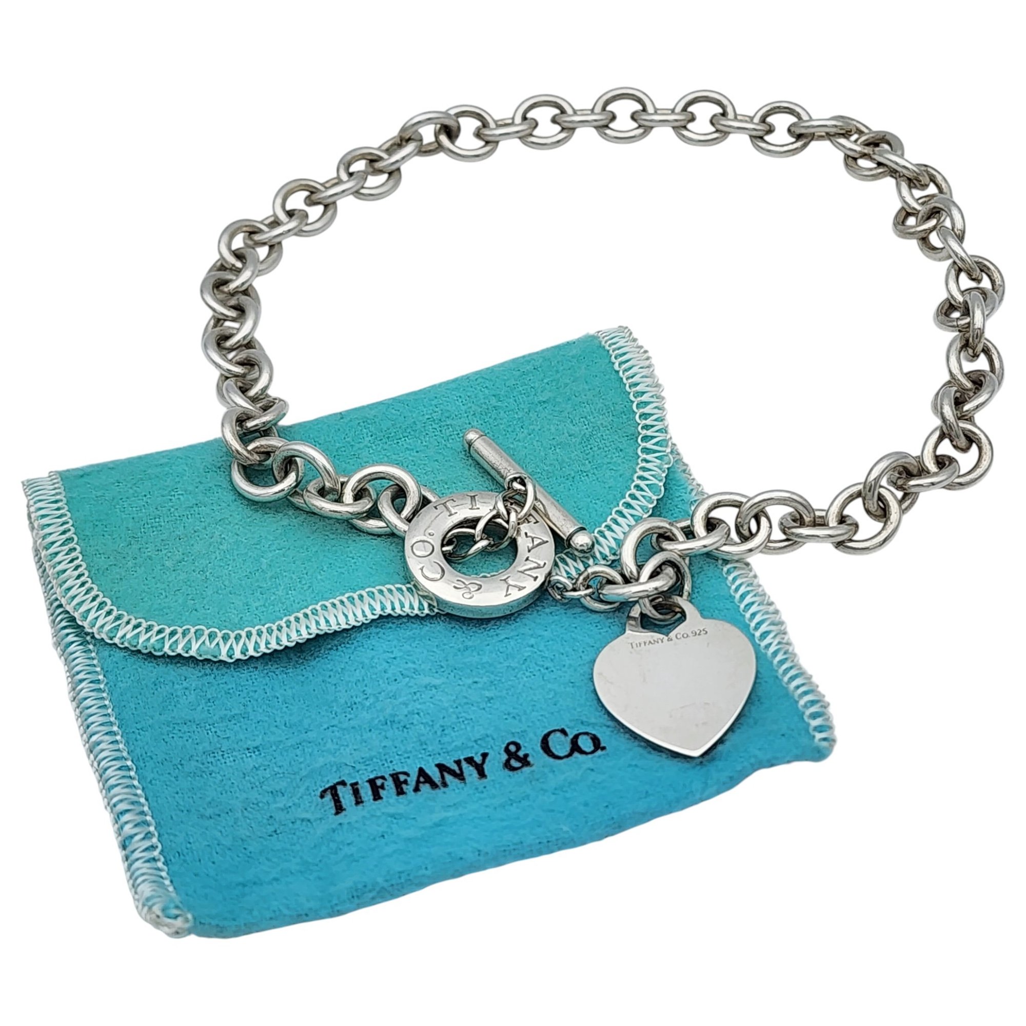Heavy Tiffany & Co. Sterling Heart Tag Toggle Necklace, 16″ – 72.4g, comes with Tiffany pouch as shown