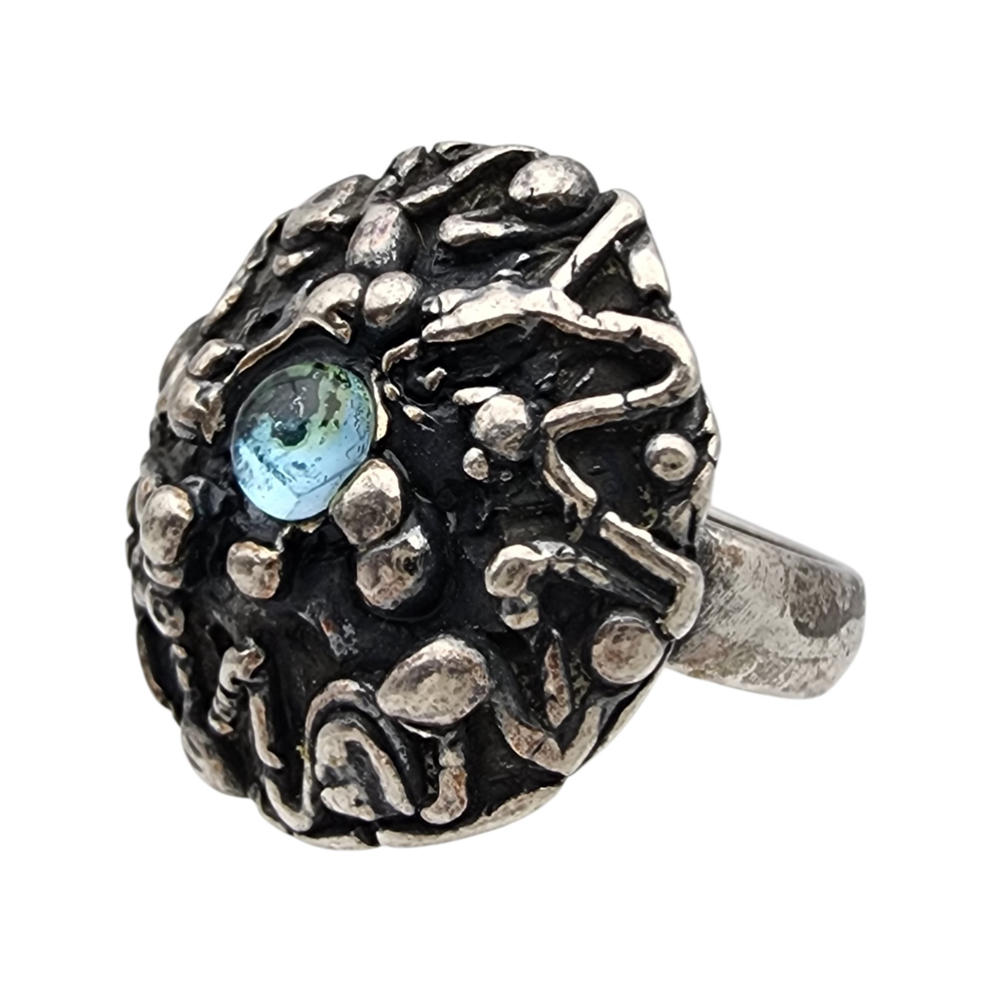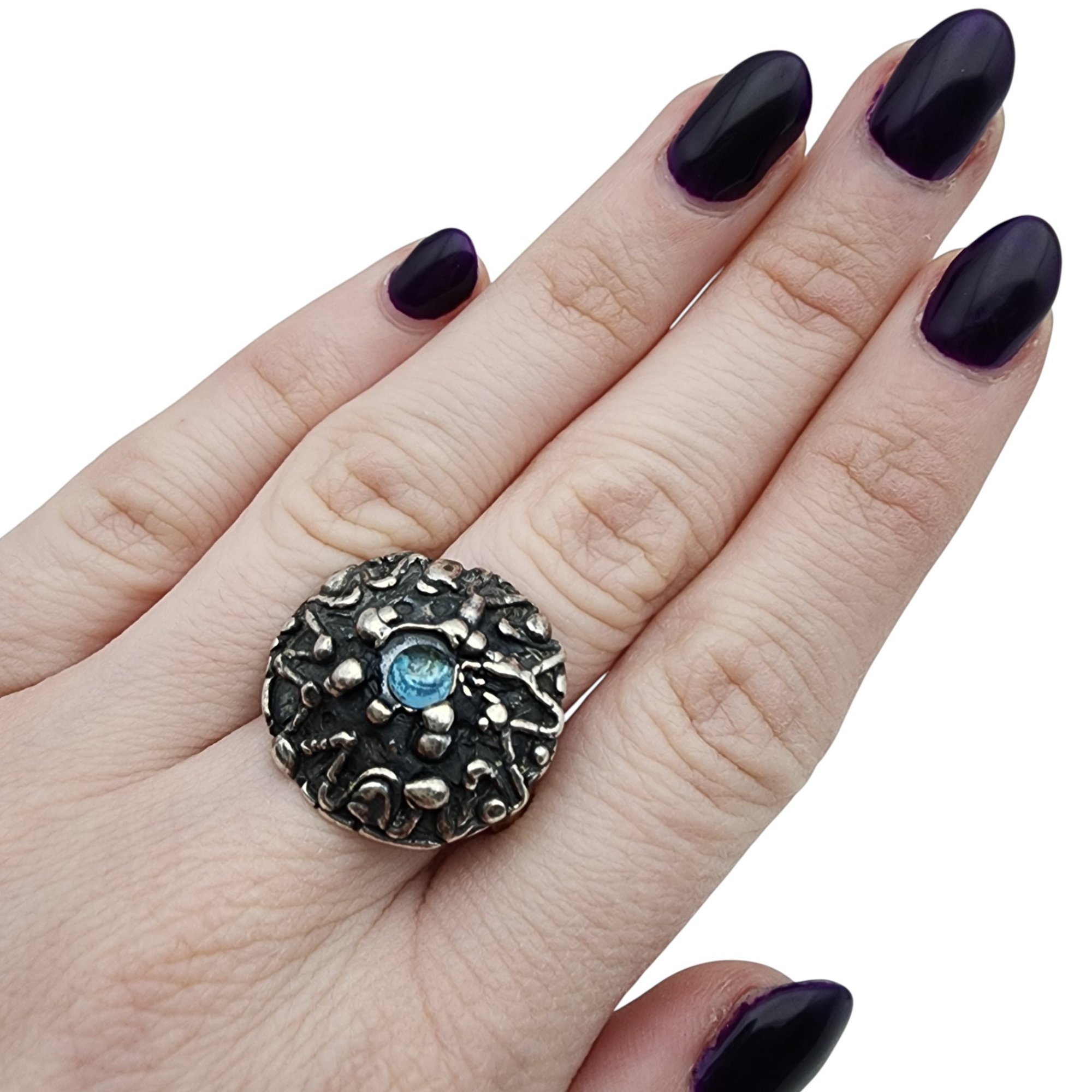 Sterling Topaz Brutalist Dome Ring Sz 8, 10.7g
