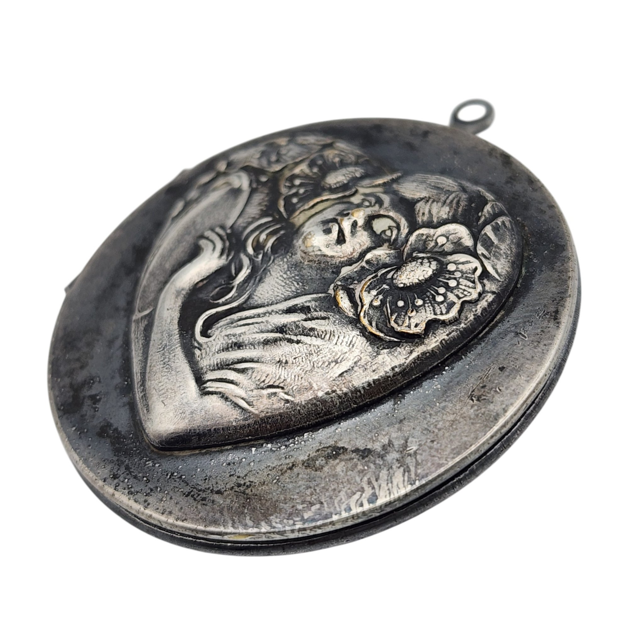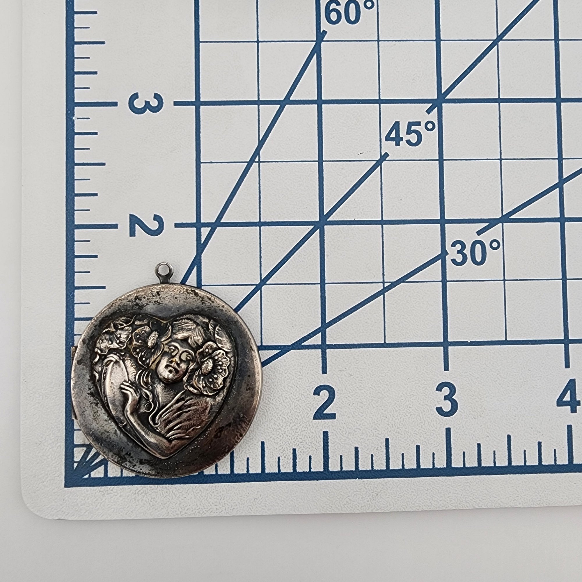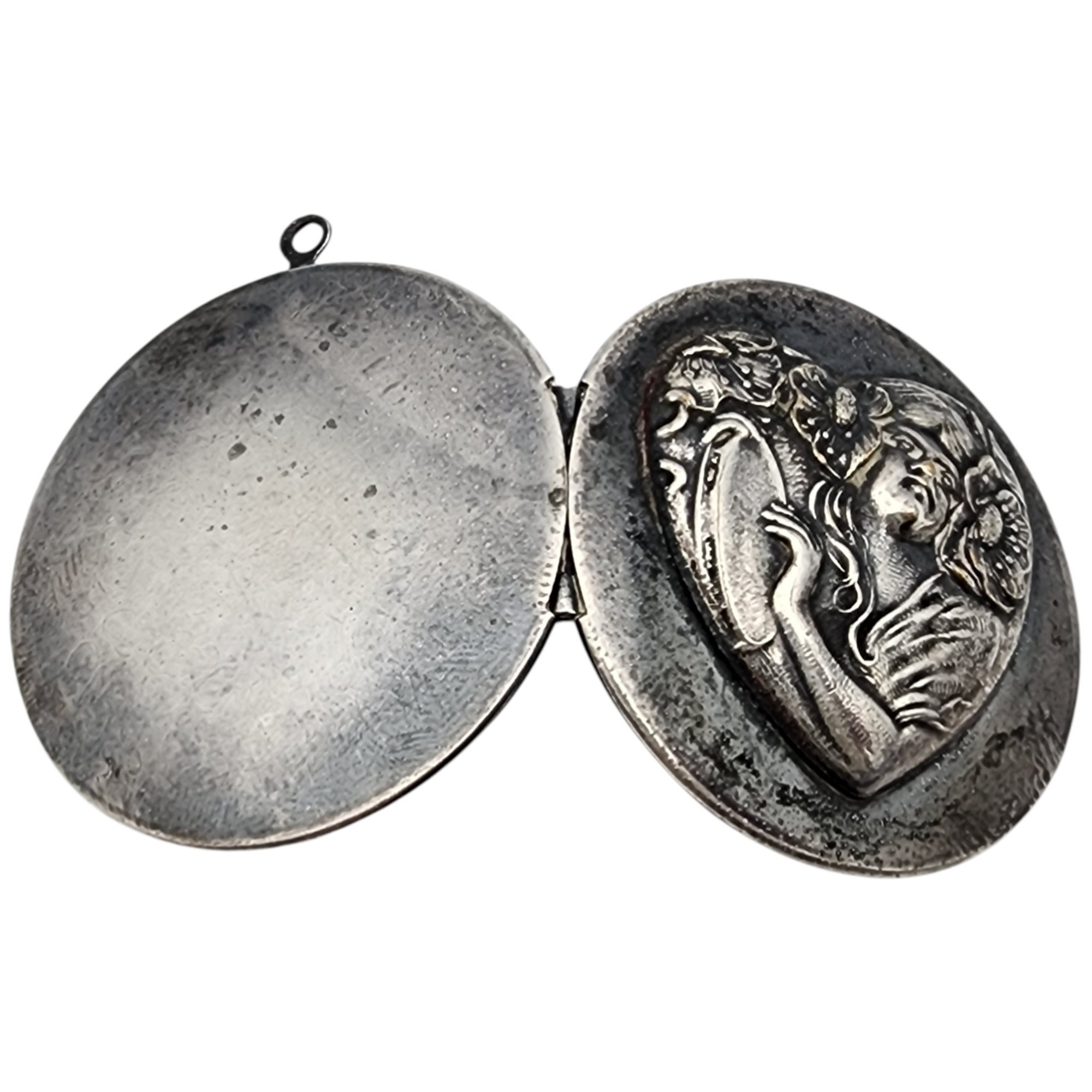 Vintage Art Nouveau Sterling Lady Locket Pendant 15.2g